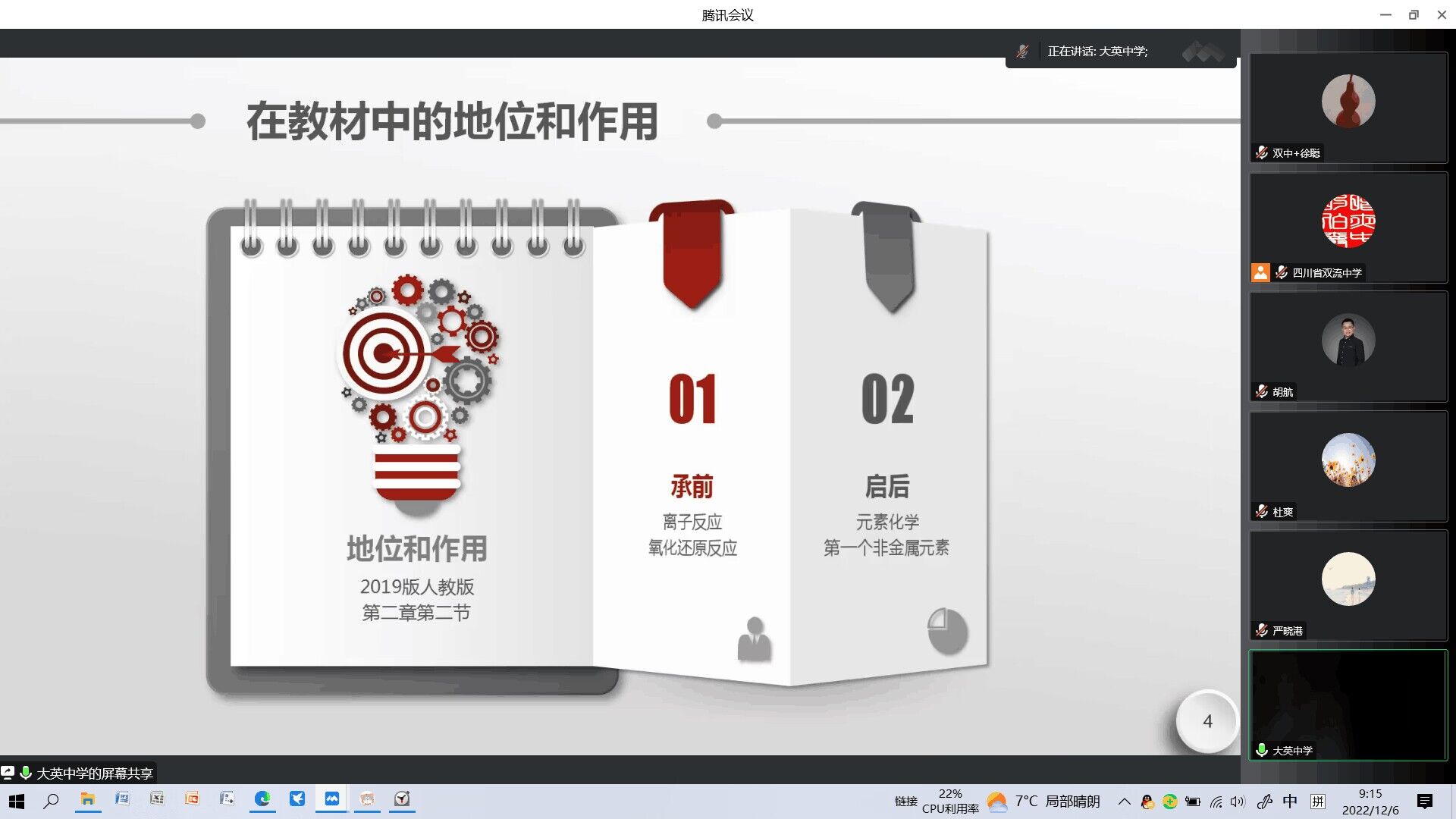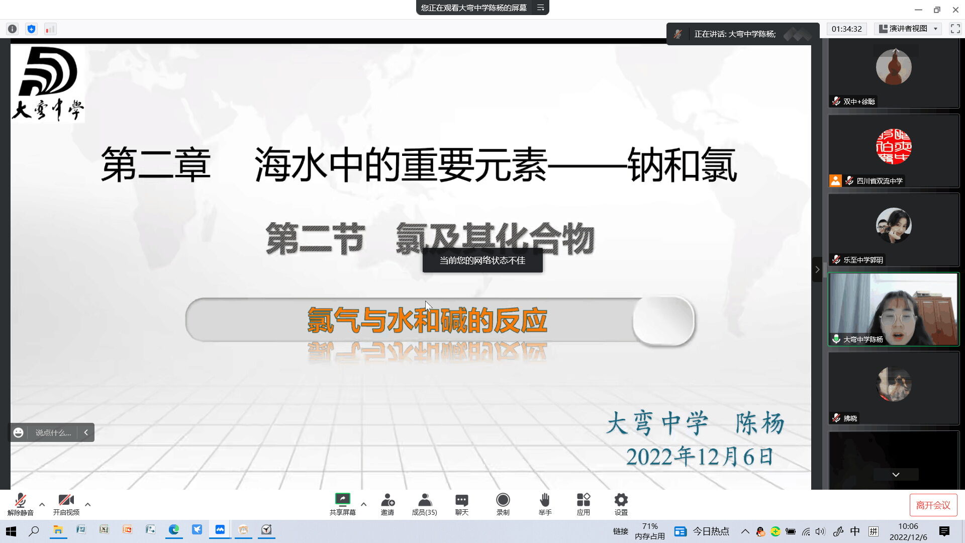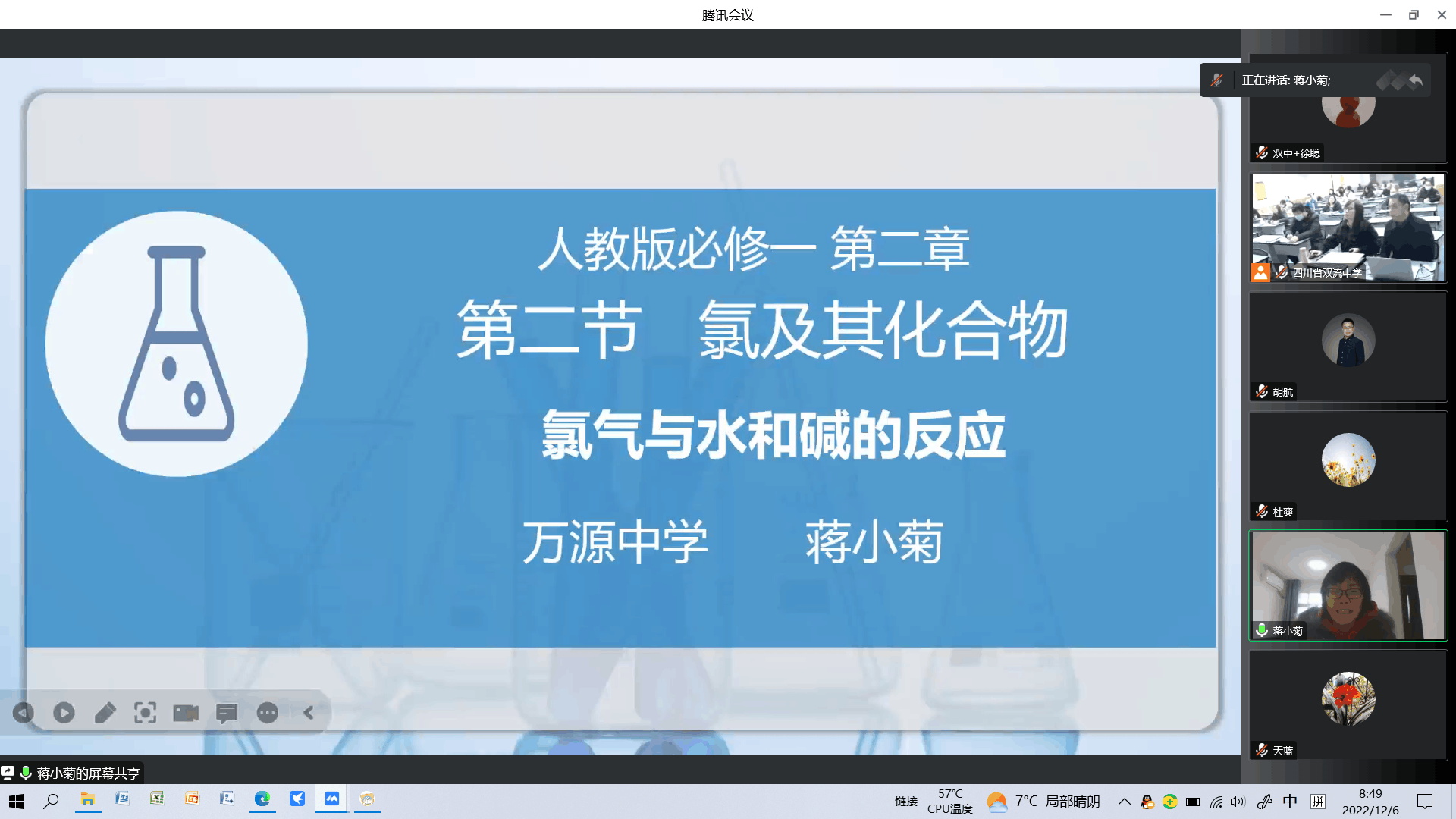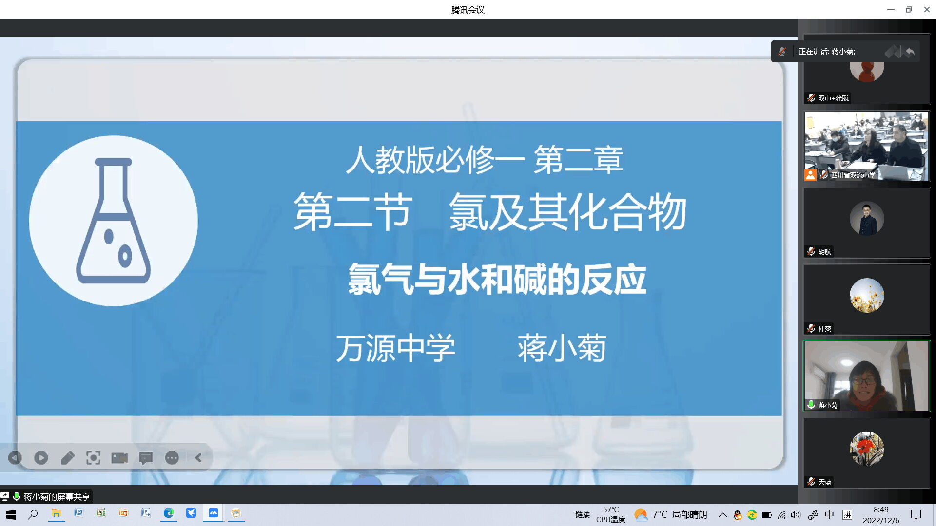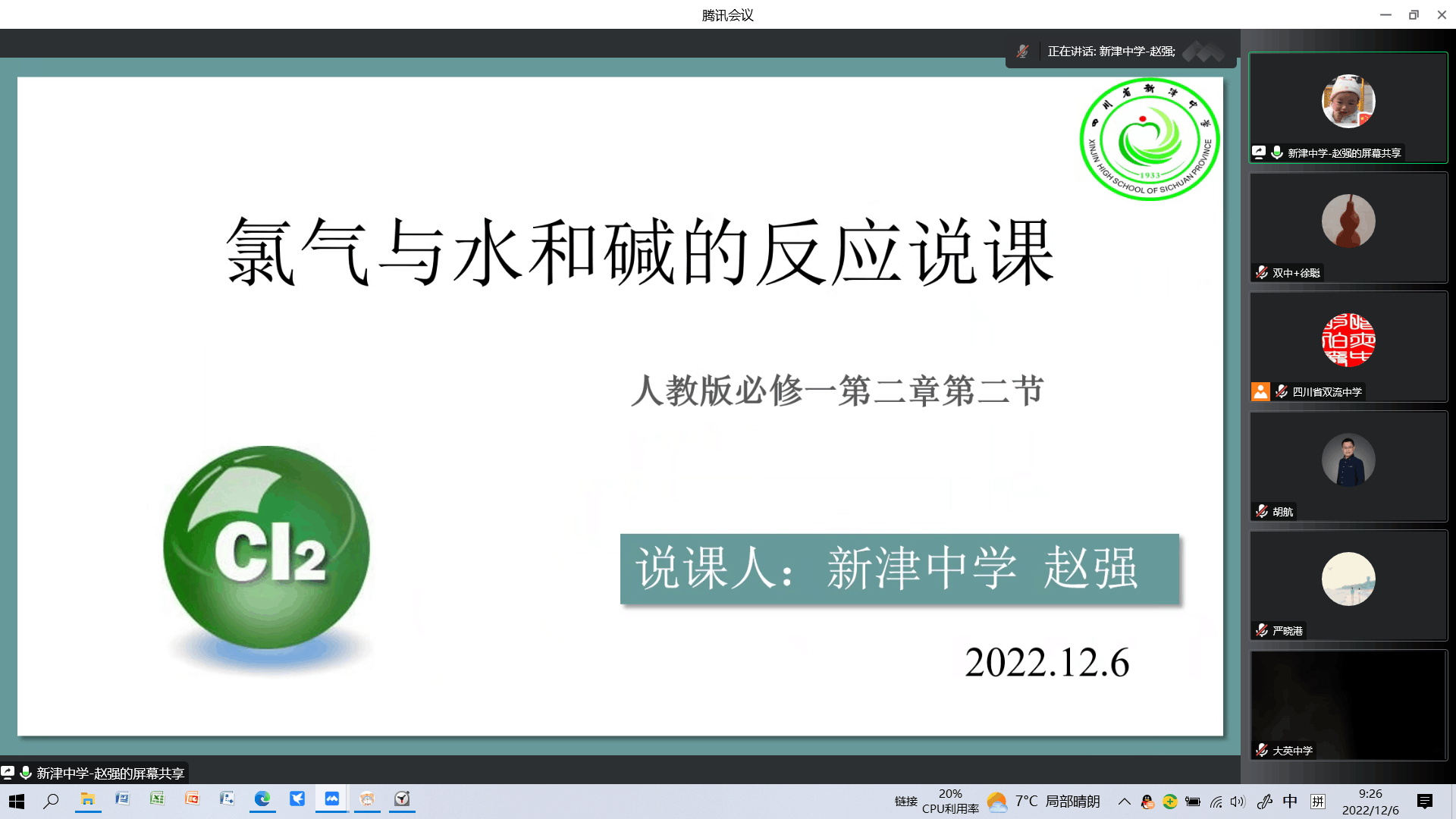 2022年12月6日,149跨區(qū)域教育聯(lián)盟與暨華中學(xué)教育集團(tuán)聯(lián)合舉辦、雙流中學(xué)承辦的“化學(xué)學(xué)科節(jié)”在騰訊會(huì)議平臺(tái)順利舉行,活動(dòng)主題是“基于深度學(xué)習(xí)的化學(xué)教學(xué)說課比賽”,來自雙流中學(xué)、暨華中學(xué)、大彎中學(xué)、新津中學(xué)、永安中學(xué)、樂至中學(xué)、三星中學(xué)、萬源中學(xué)和大英中學(xué)共九所學(xué)校的化學(xué)組教師代表以新人教版必修第一冊(cè)第二章第二節(jié)《氯氣與水和堿的反應(yīng)》為題進(jìn)行了精彩紛呈的說課展示。