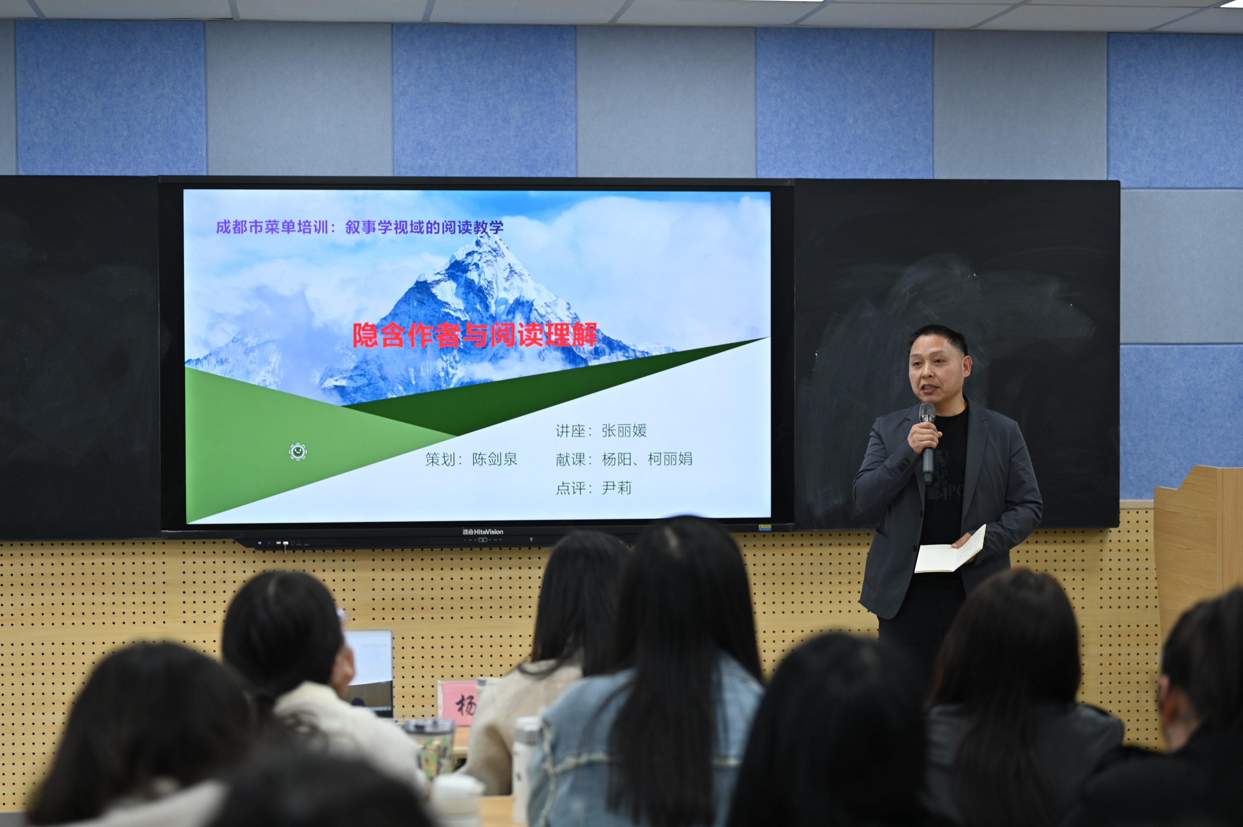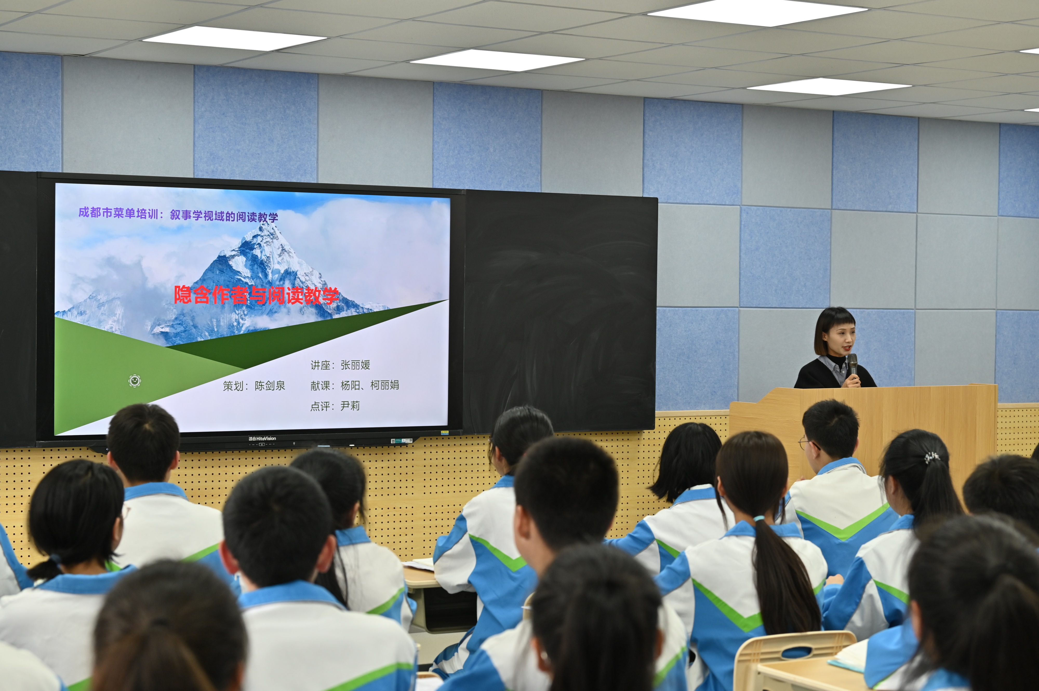2023年3月17日下午,成都市菜單培訓(xùn)活動,“149”跨區(qū)域教育聯(lián)盟的“隱含作者與閱讀教學(xué)”教研活動在四川省遂寧市大英中學(xué)展開。本次活動由四川省雙流中學(xué)正高級教師、四川省內(nèi)江師范學(xué)院客座教授、149跨區(qū)域教育聯(lián)盟主持人陳劍泉老師牽頭策劃。大英中學(xué)語文教師柯麗娟、雙流中學(xué)語文教師楊陽、成都市石室中學(xué)(北湖校區(qū))備課組長張麗媛、成都市語文高級教師尹莉承擔本次教研活動的授課、講座、點評。成都市內(nèi)語文教師400余人通過師培通觀摩、全國各地100余上通過騰訊會議觀摩,149跨區(qū)域聯(lián)盟語文教師通過線上線下相結(jié)合的方式參與本次教研活動。本次活動由四川省大英中學(xué)的王琴老師主持。