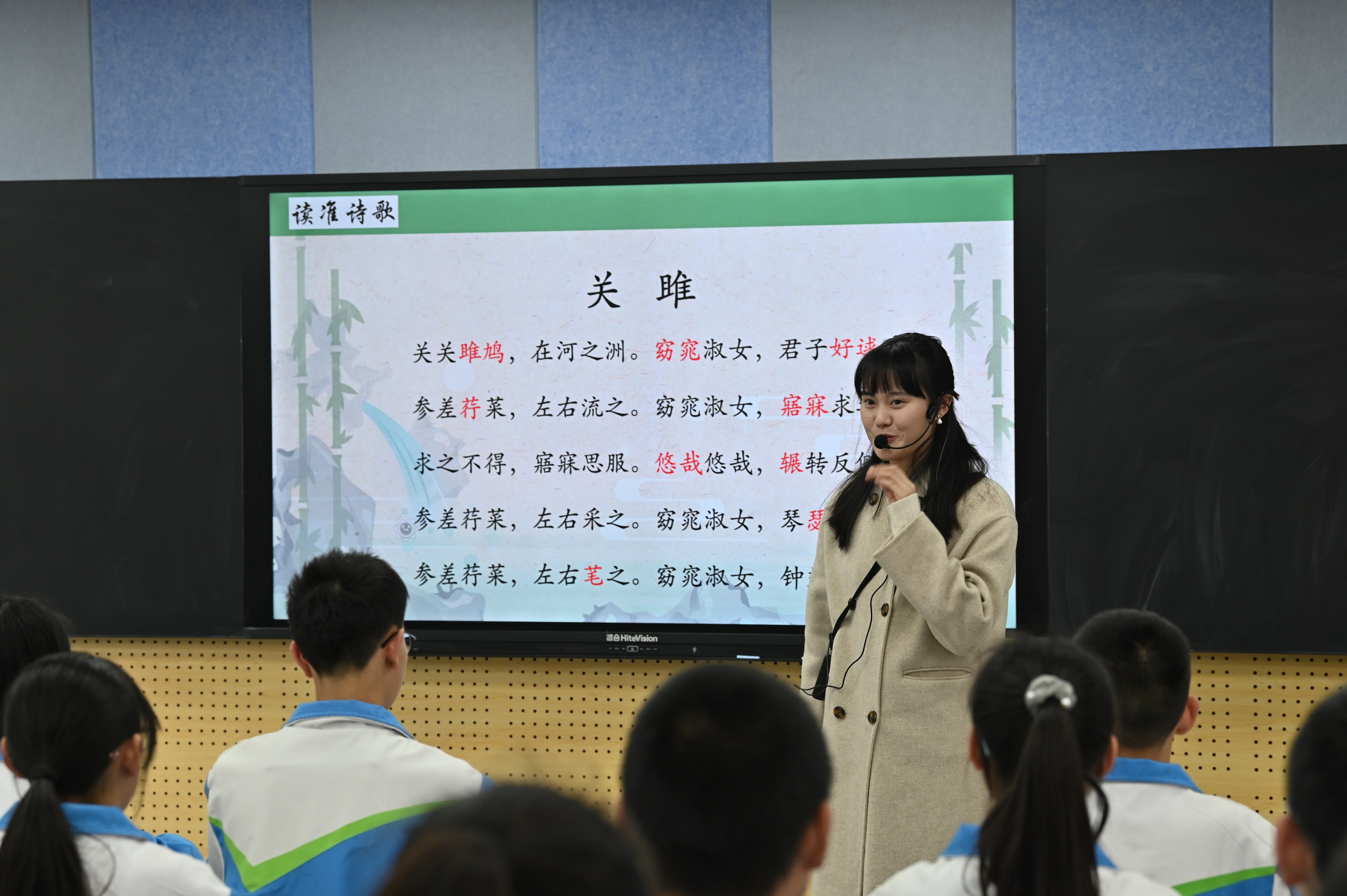 培訓(xùn)首先由雙流中學(xué)語文教師楊陽帶來《關(guān)雎》,楊陽老師以“親友團”為核心情境任務(wù),通過“讀準詩歌—讀懂詩歌—讀透詩歌”三個環(huán)節(jié),幫助學(xué)生理解詩歌內(nèi)容、樹立正確的價值觀念,同時讓學(xué)生從隱含作者層面出發(fā),嘗試在不知人論世的情況下,理解詩歌主旨。
