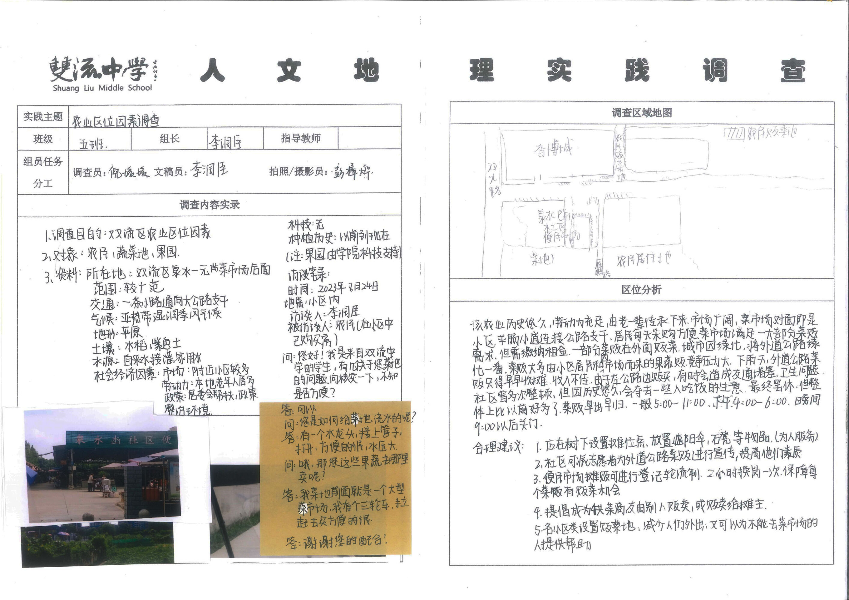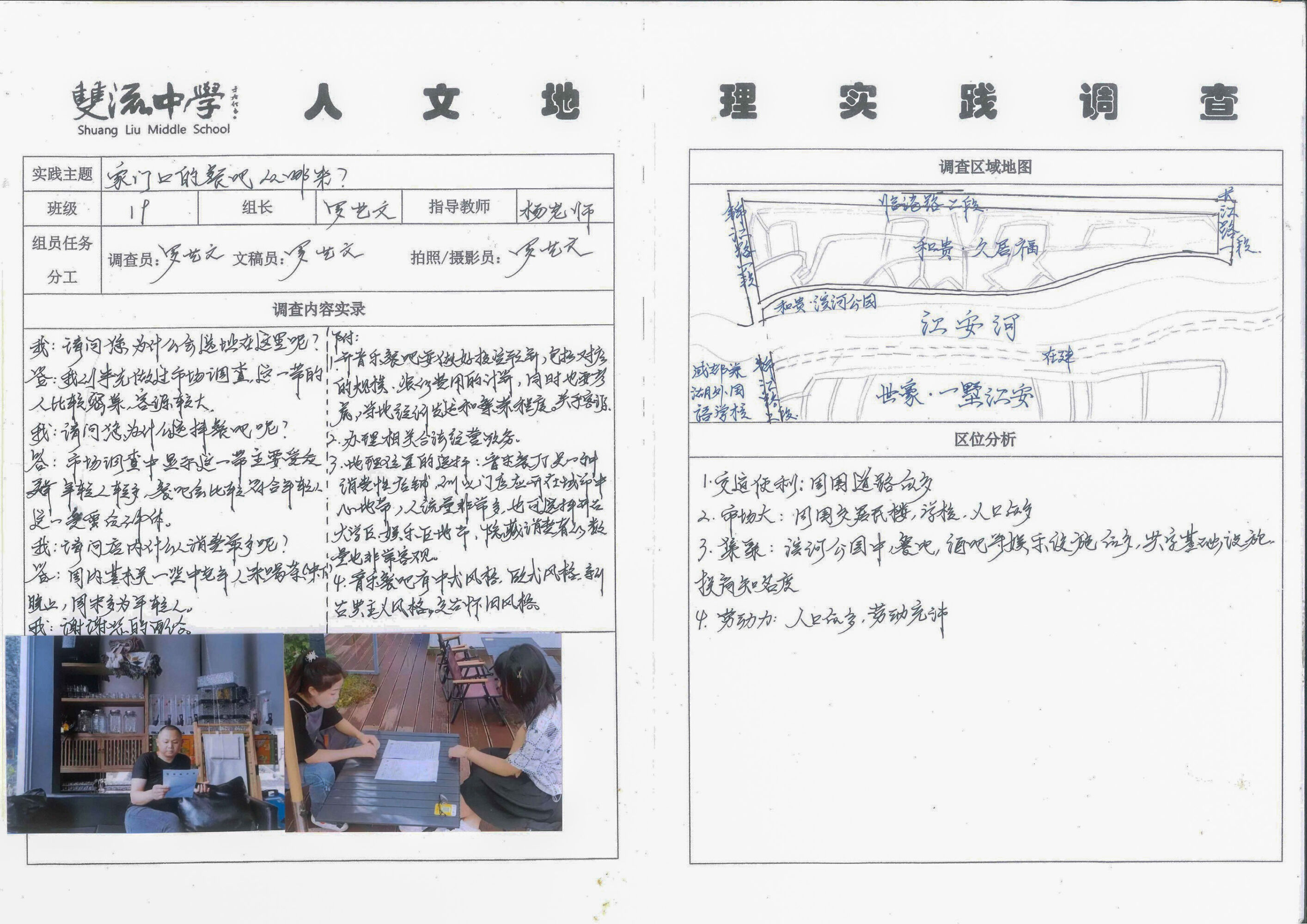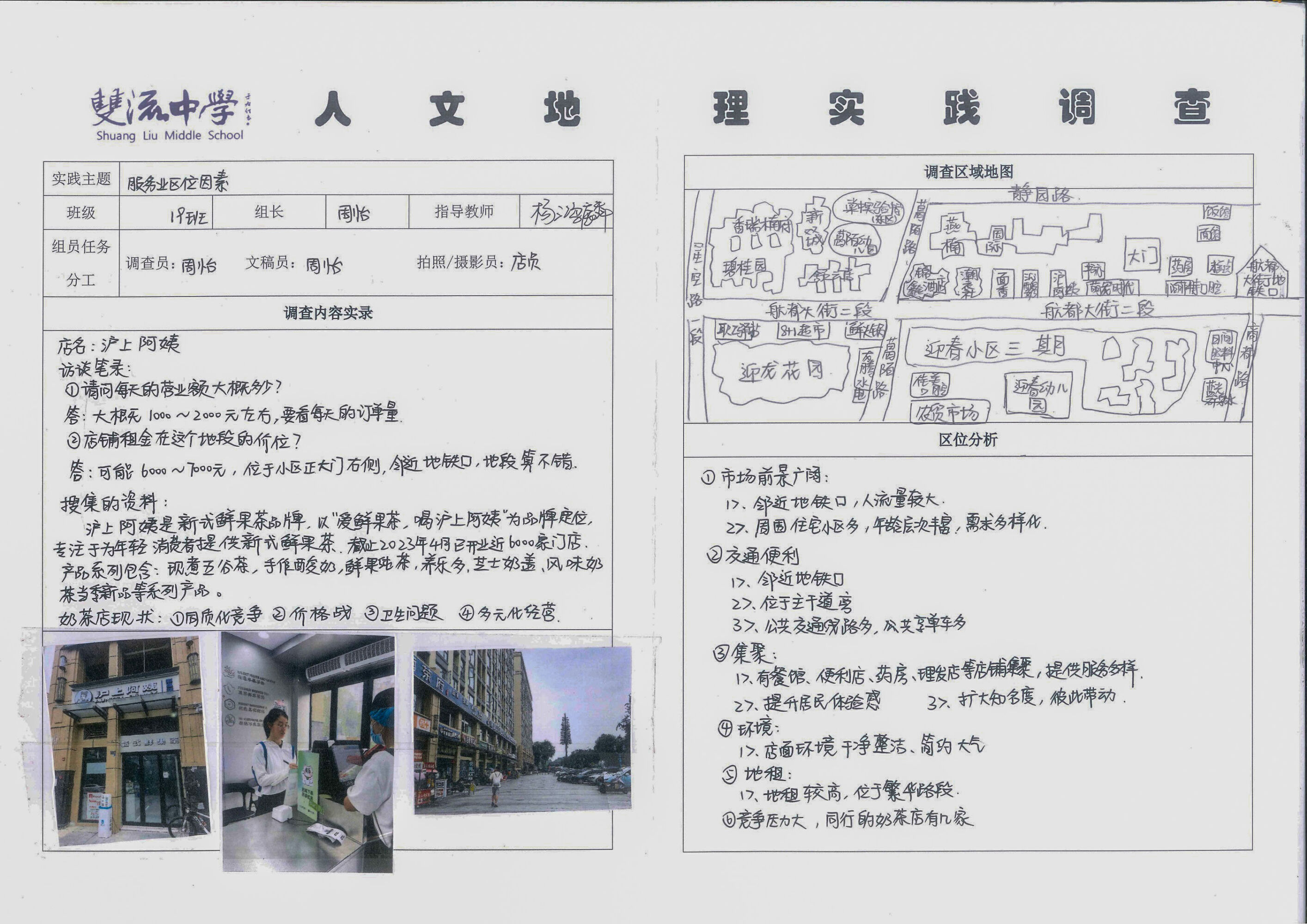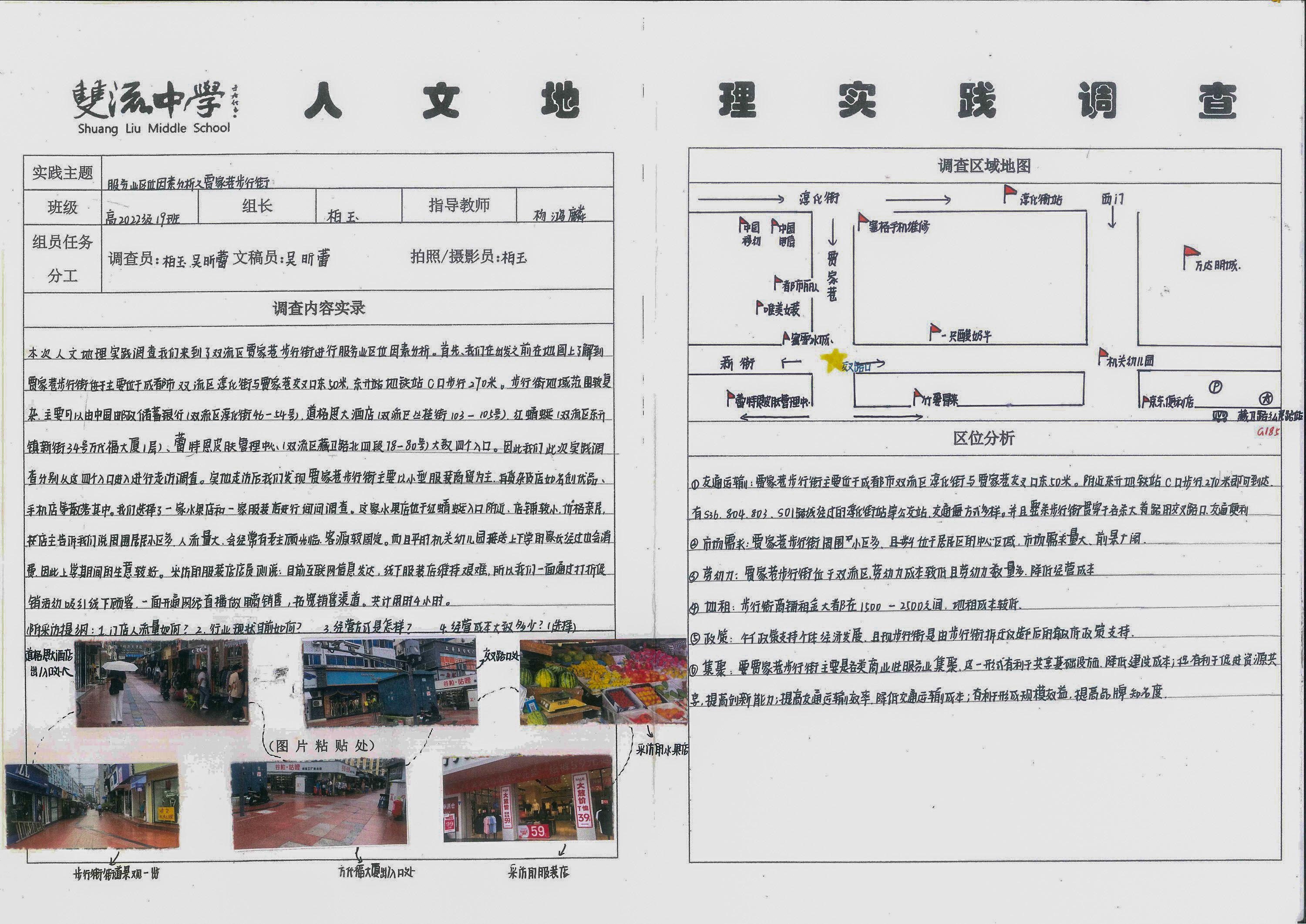 新的高中課程標(biāo)準(zhǔn)明確提出了培養(yǎng)學(xué)生學(xué)科核心素養(yǎng)的理念,其中“地理實踐力”是指人們在考察、實驗和調(diào)查等地理實踐活動中所具備的意志品質(zhì)和行動能力。培養(yǎng)地理實踐力素養(yǎng),有助于學(xué)生在真實情景中更好地觀察、感悟、理解地理環(huán)境以及它與人類活動的關(guān)系,增強其社會實踐能力和責(zé)任感?;诖?,依托高中地理必修二教材內(nèi)容,雙流中學(xué)高2022級學(xué)生利用假期間開展了“人文地理實踐調(diào)查”活動。