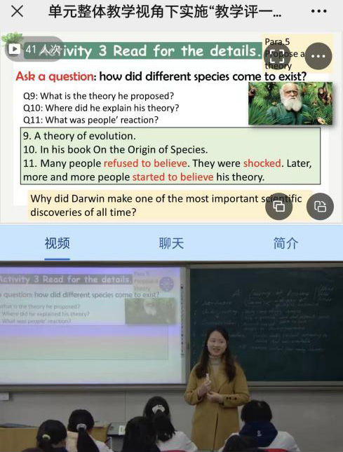 接下來,余虹玉老師就外研版新教材選擇性必修一Unit 5 Journey of Discovery閱讀進行了說課分享及課例展示?;凇白哌M自然,勇于探索”的主題意義,余老師通過設計導入性問題、展示型問題、評估型問題和遷移型問題,引導學生積極思考討論,賞析課文,體會達爾文具有重大歷史意義的發(fā)現(xiàn)之旅,感受其探索科學,追求真理之路的艱辛,學習其不畏困難,勇于探索的科學精神與創(chuàng)新精神。