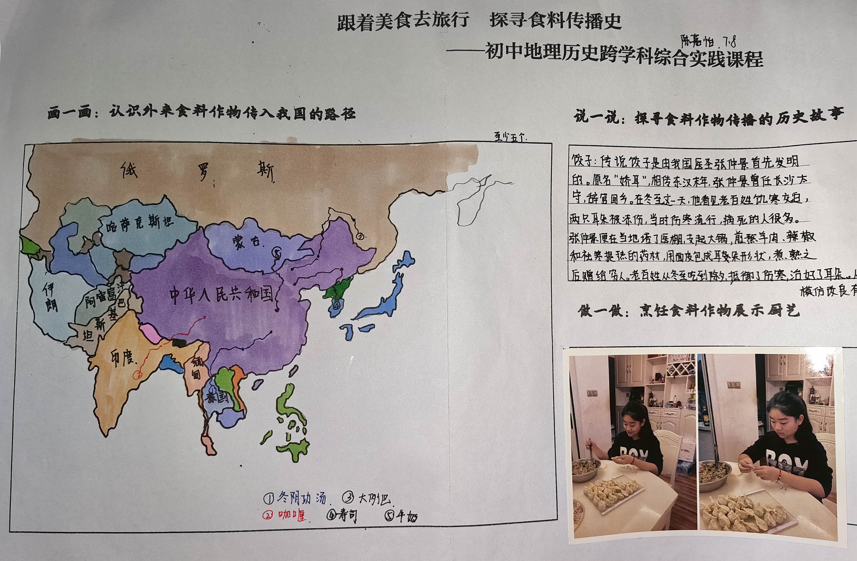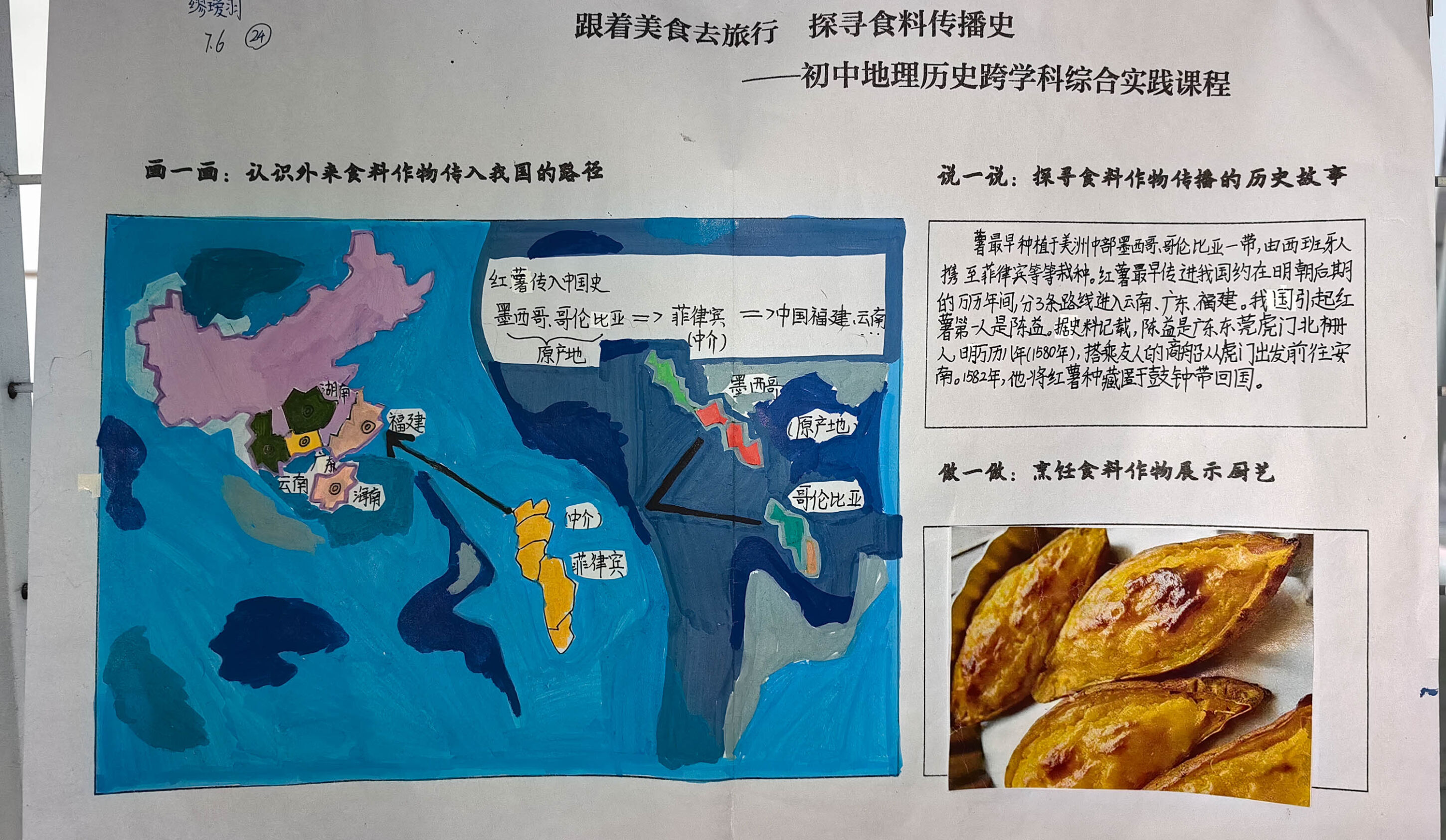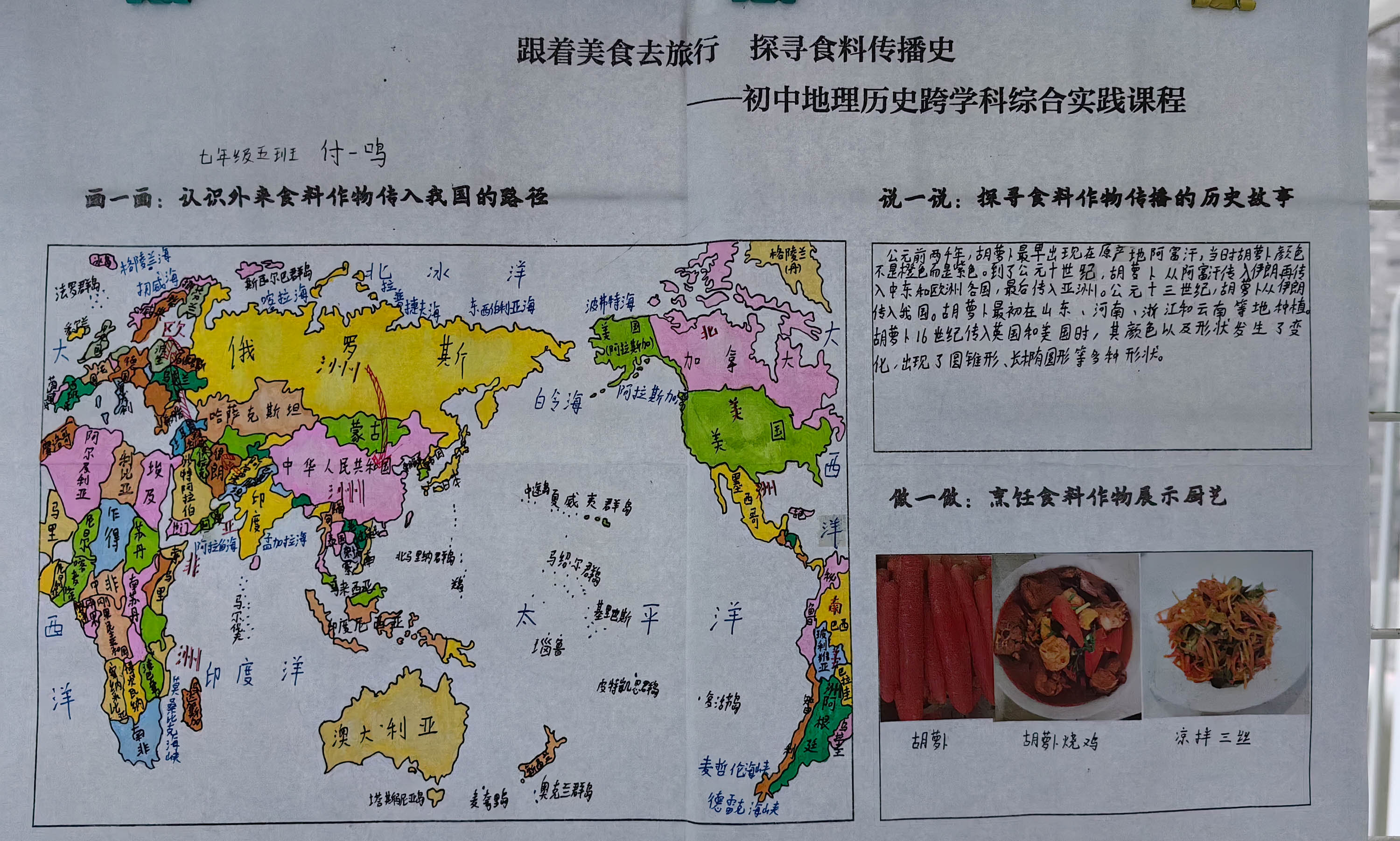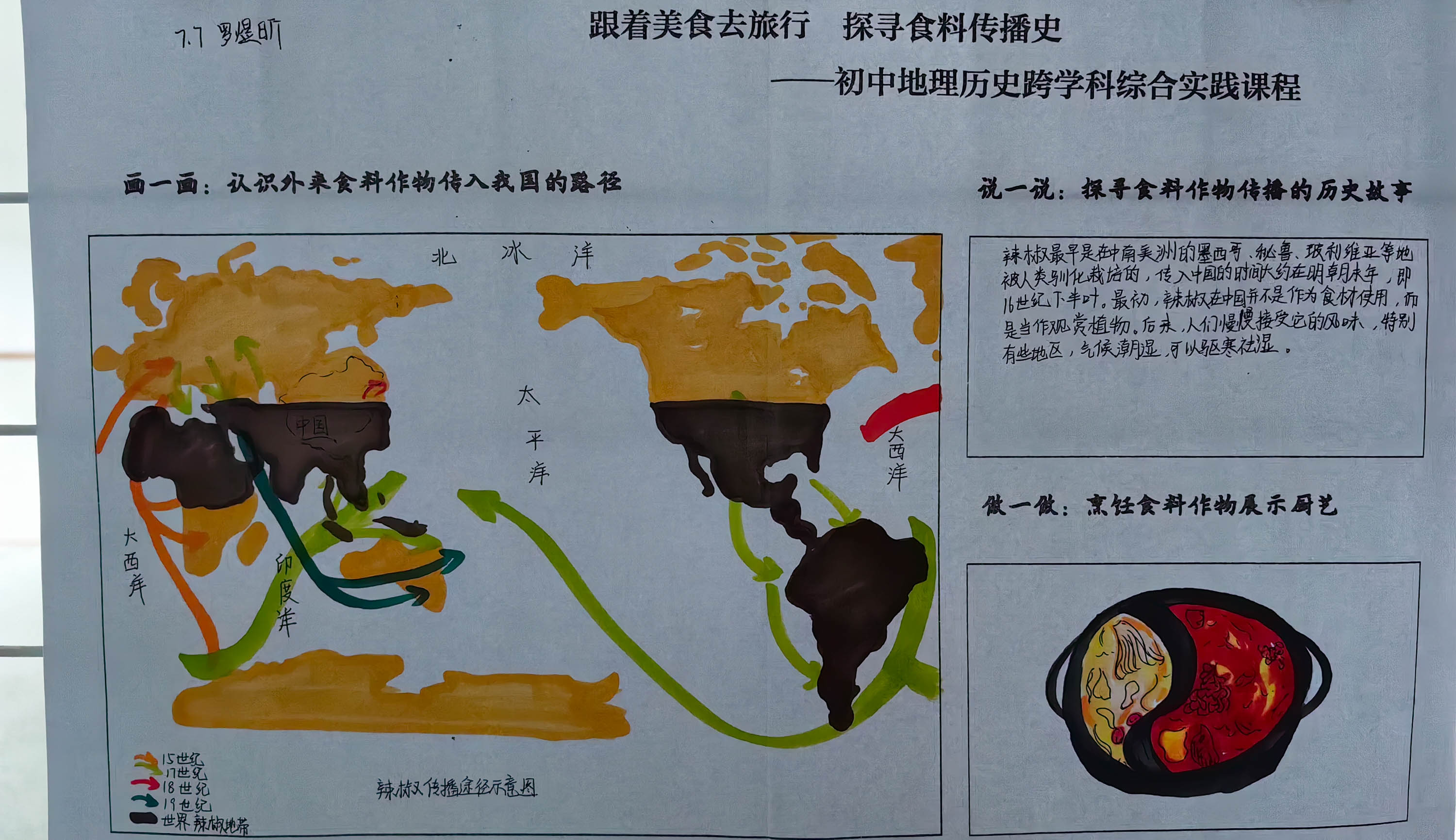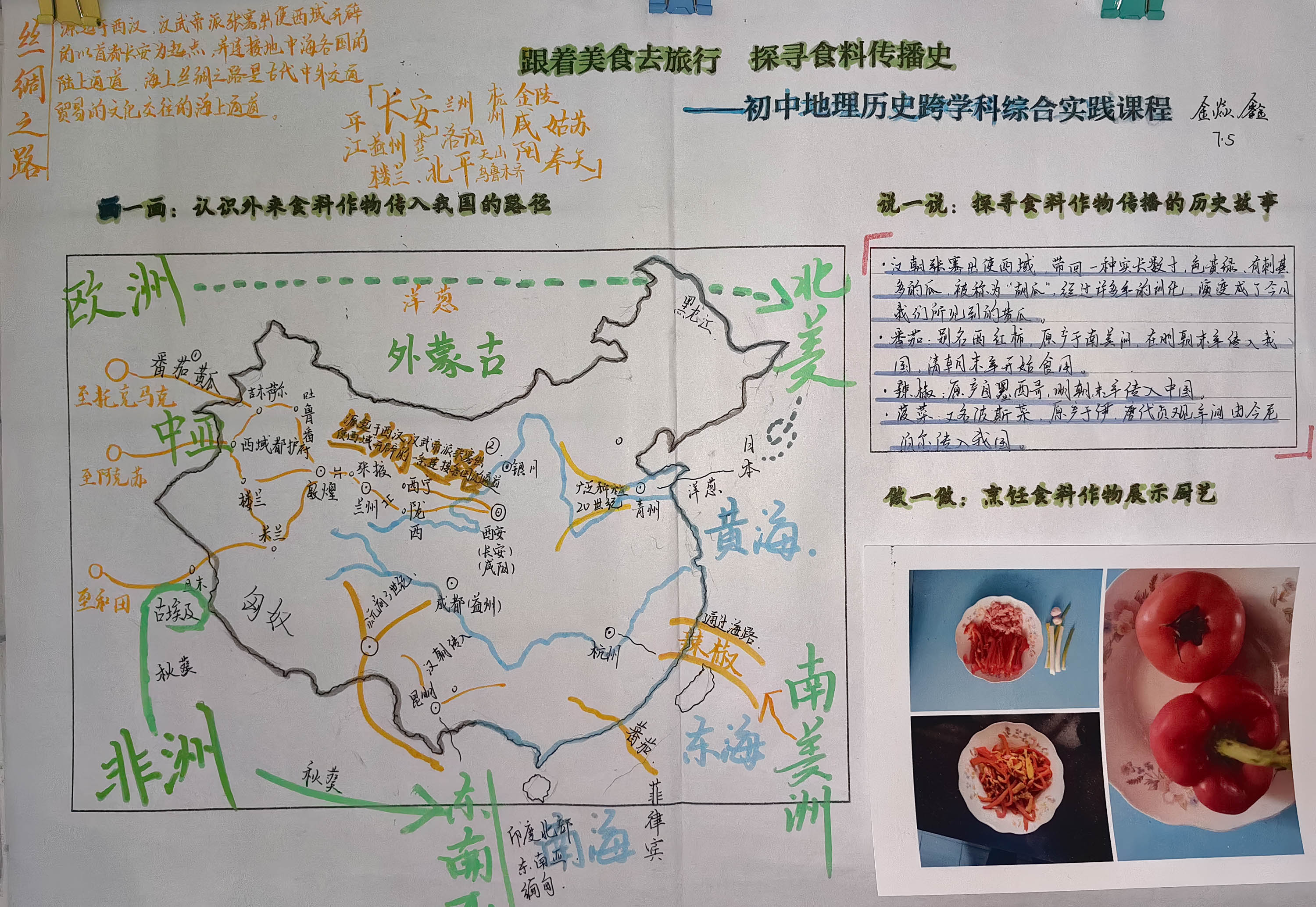 初中七年級以《跟著美食去旅行 探尋食料傳播史》——初中地理歷史跨學科綜合實踐課程為主題。