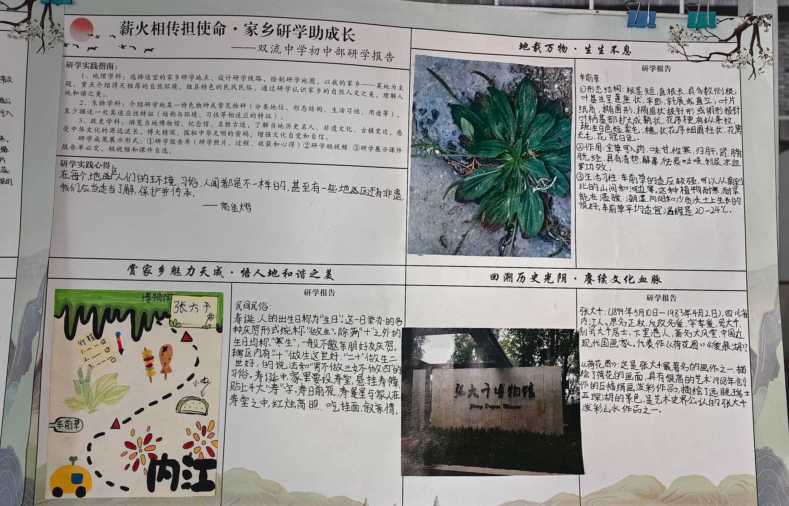 七、八年級以《薪火相傳擔使命,家鄉(xiāng)研學助成長》為主題的跨學科主題式的作品展示。