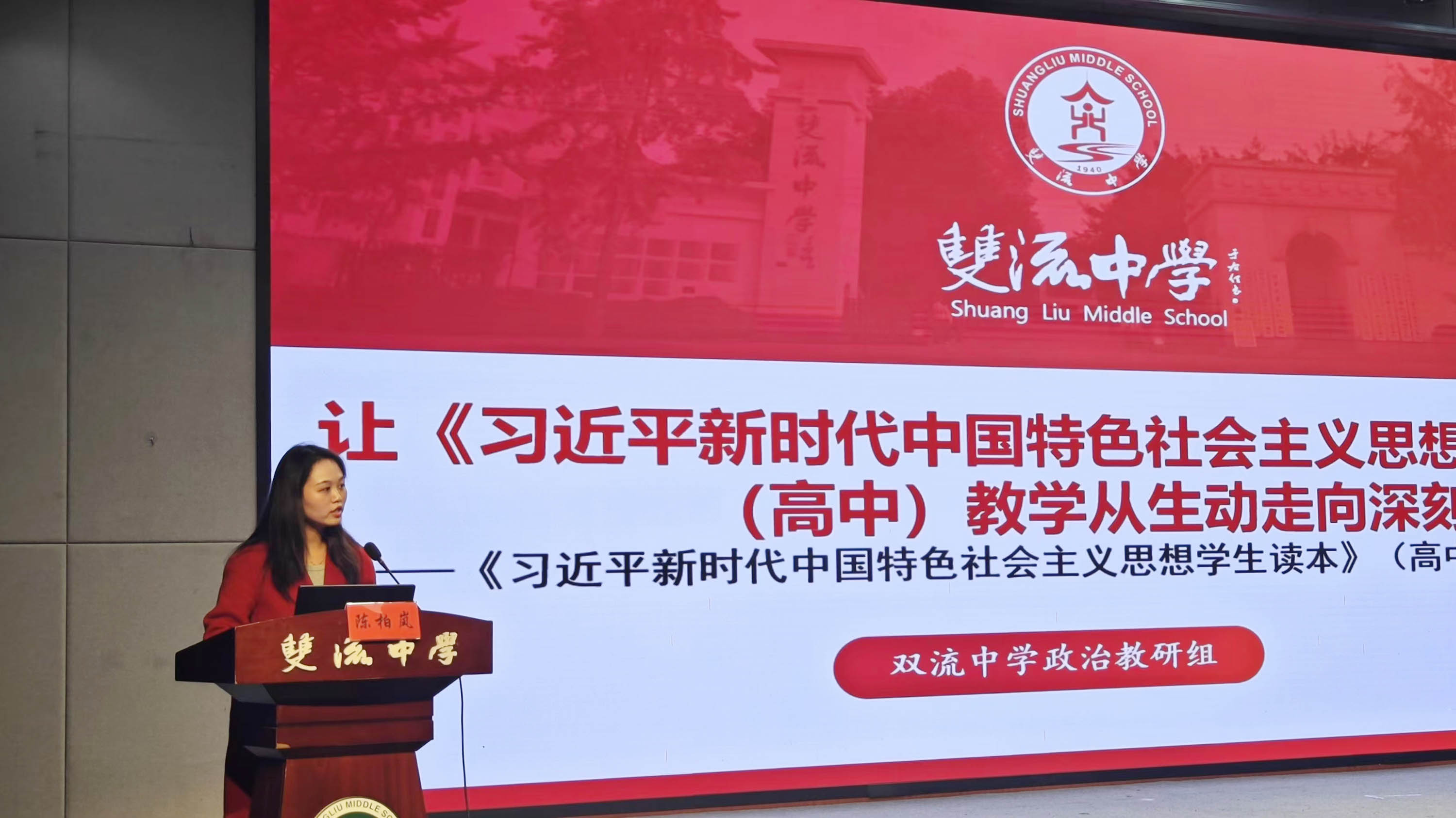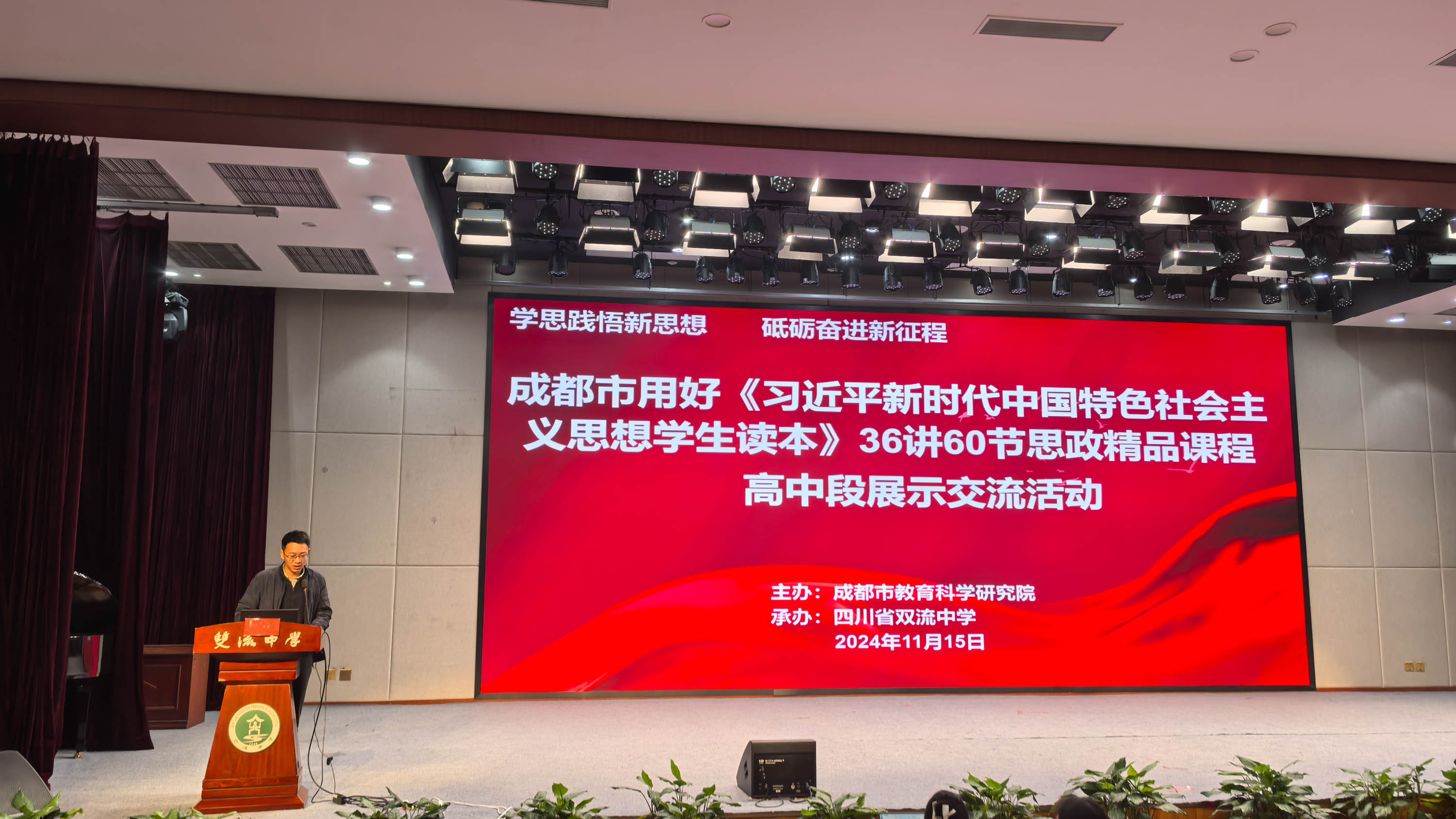 為深入學(xué)習(xí)貫徹習(xí)近平新時(shí)代中國特色社會主義思想,進(jìn)一步推動《習(xí)近平新時(shí)代中國特色社會主義思想學(xué)生讀本》進(jìn)教材、進(jìn)課堂、進(jìn)學(xué)生頭腦,11月15日上午,成都市用好《習(xí)近平新時(shí)代中國特色社會主義思想學(xué)生讀本》(以下簡稱《讀本》)36講思政精品課程高中段的展示交流活動在四川省雙流中學(xué)隆重舉行。本次活動由成都市教育科學(xué)研究院主辦,成都市雙流區(qū)教育科學(xué)研究院及四川省雙流中學(xué)承辦。成都市教科院高中政治教研員何博老師,青羊區(qū)政治教研員佘小林老師,四川省樹德中學(xué)光華校區(qū)教研組組長、正高級教師馮維東蒞臨指導(dǎo),與全市高中政治教師共話《讀本》教學(xué)。