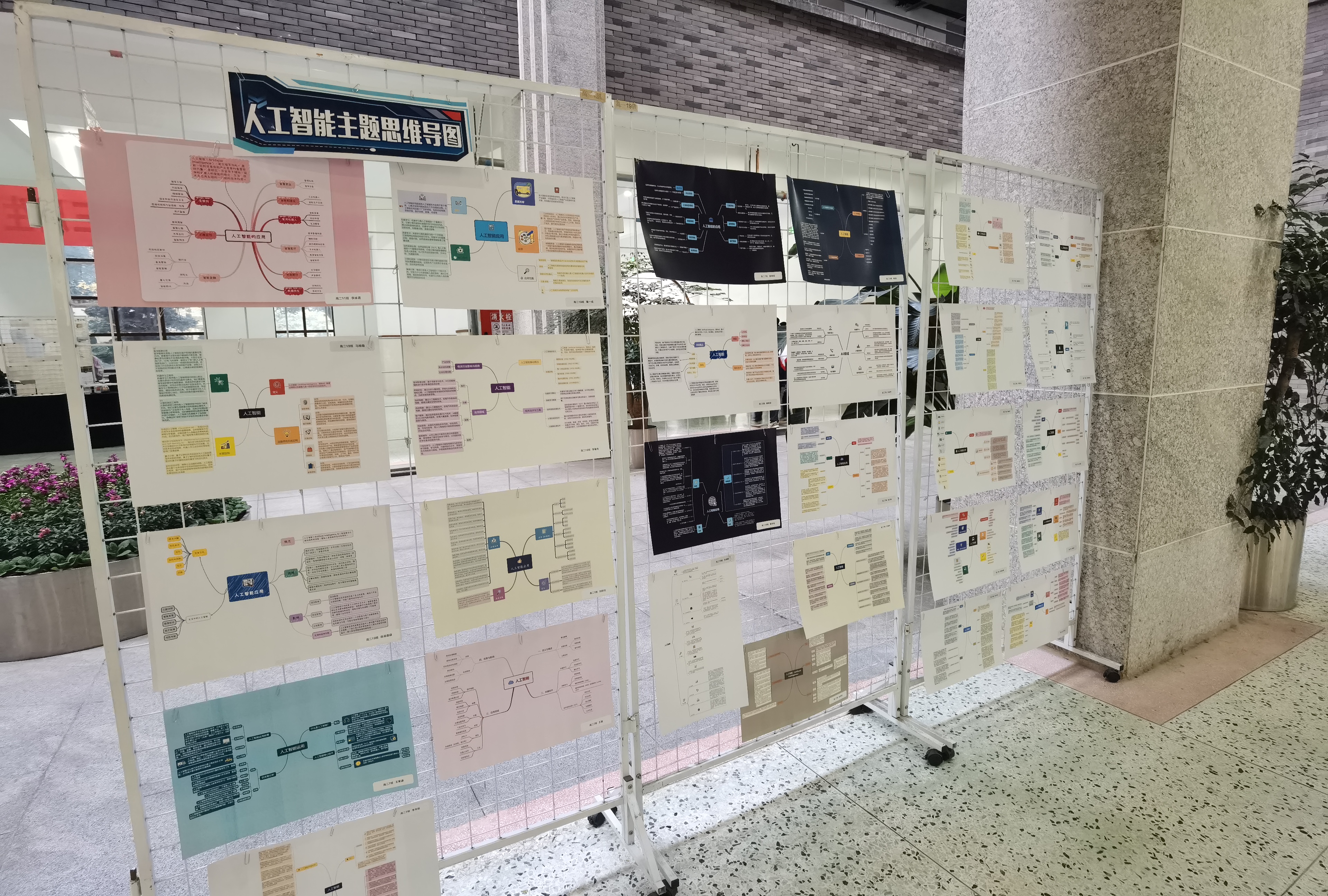人工智能思維導(dǎo)圖展區(qū)展示了同學(xué)們對當(dāng)今炙手可熱的人工智能領(lǐng)域的見解與反思。經(jīng)過查閱文獻(xiàn)和資料,學(xué)生們運用專業(yè)的思維導(dǎo)圖軟件整理并呈現(xiàn)了他們的研究成果。這不僅加深了他們對學(xué)科知識的理解,也提升了對AI應(yīng)用的認(rèn)知水平。