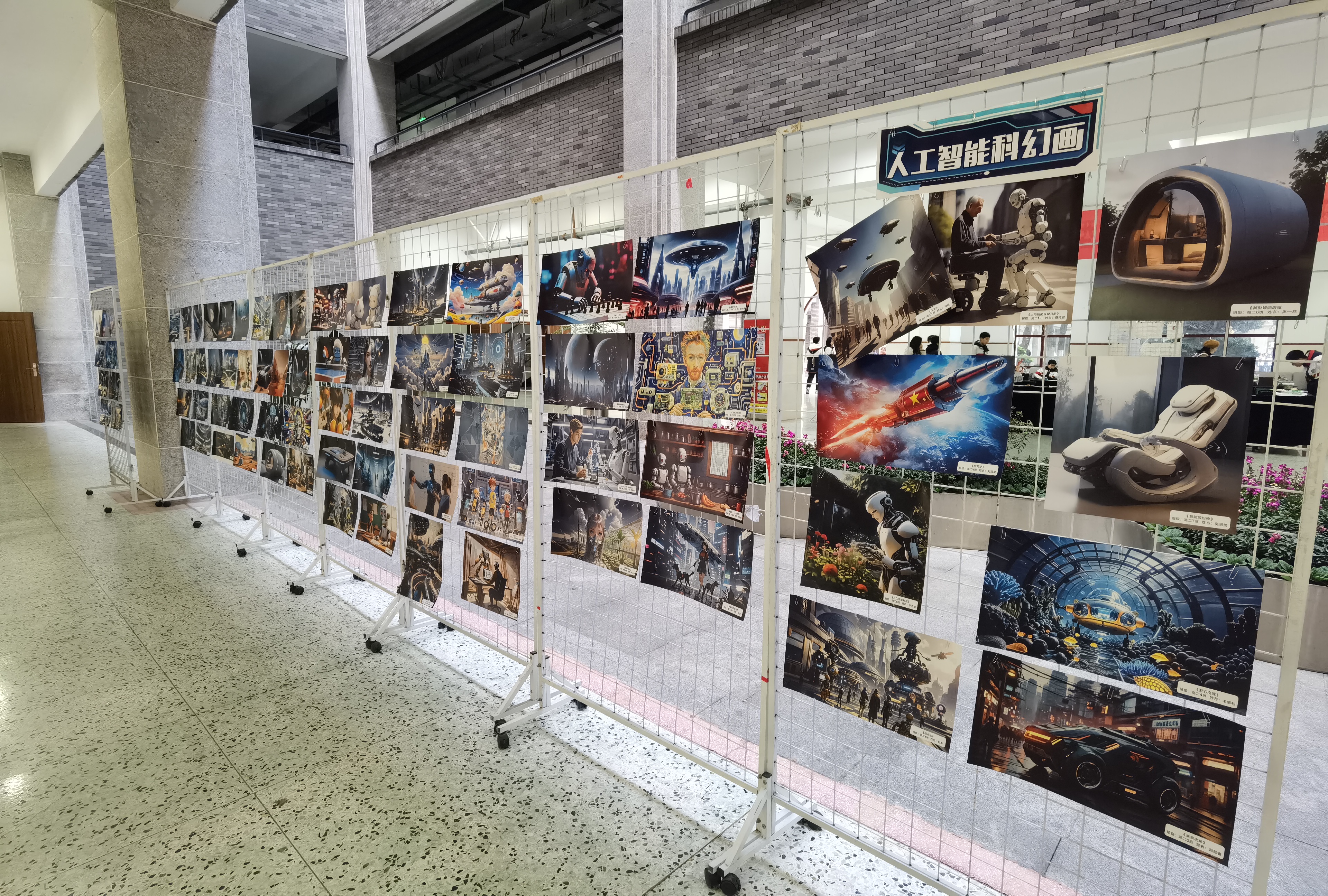 在AI科幻畫展區(qū),未來世界的大膽想象躍然紙上。借助生成式人工智能工具,即使不具備專業(yè)繪畫技能的學(xué)生也能迅速將腦海中的構(gòu)思轉(zhuǎn)化為栩栩如生的藝術(shù)作品,充分展現(xiàn)了科技賦能創(chuàng)意的魅力。