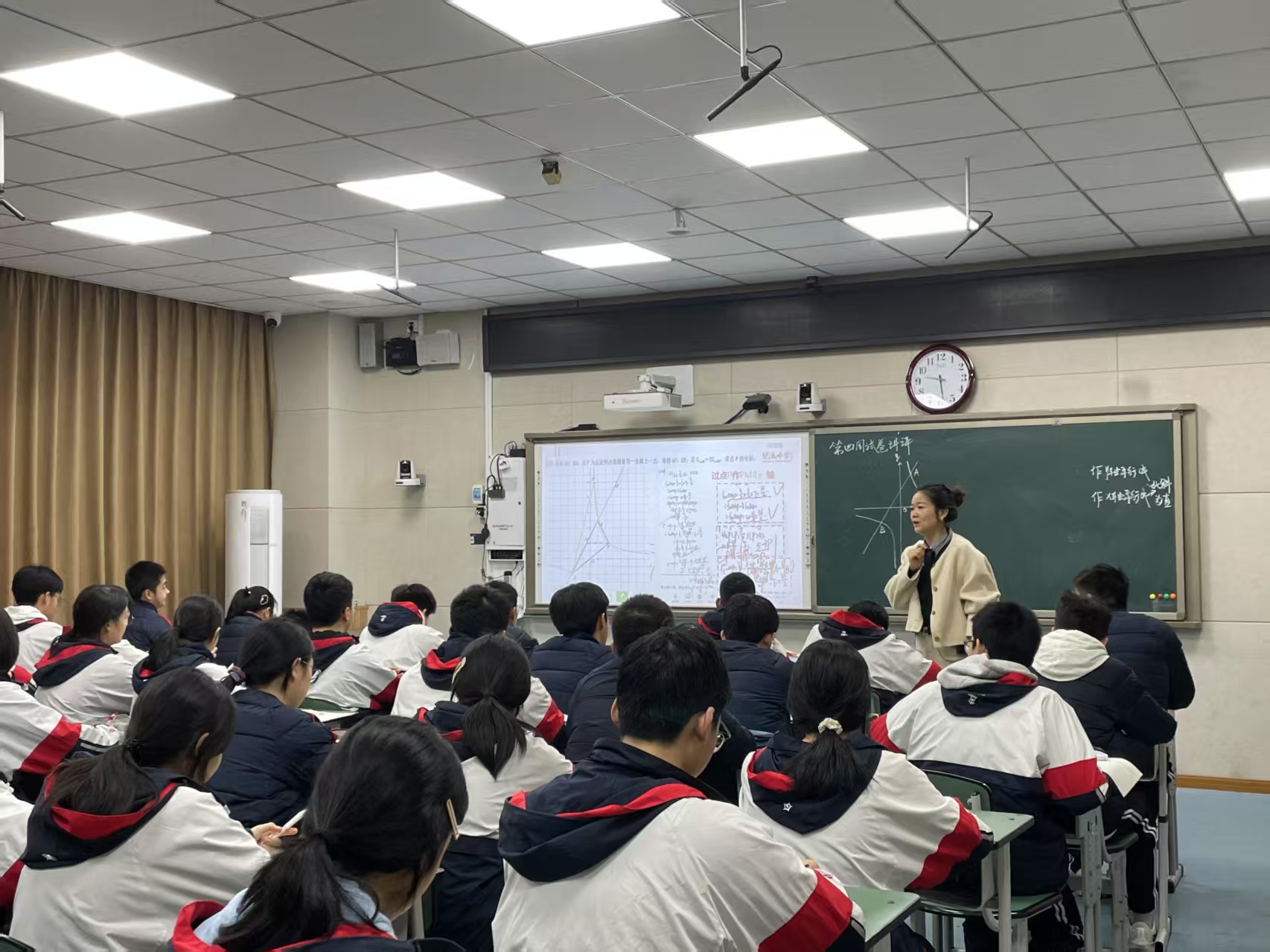 陳曉娟老師帶來了一堂精準高效的試卷講評課。她以“數(shù)據(jù)分析—問題診斷—策略提升”為主線,首先對試卷的考點分布與命題趨勢進行深度剖析,結合學生答題數(shù)據(jù)定位“審題失誤”“步驟缺失”等共性問題。課堂中,陳老師創(chuàng)新采用“分層講評法”:對于簡單題型,通過小組合作探究、學生互評互講,充分調動學生的主動性;對于復雜題型,則以“一題多解”“多題一解”的方式,引導學生從不同角度剖析問題,拓展解題思路。此外,她特別設置“優(yōu)秀作答展示”與“錯題歸因分析”環(huán)節(jié),幫助學生總結答題策略,做到“知其然更知其所以然”。