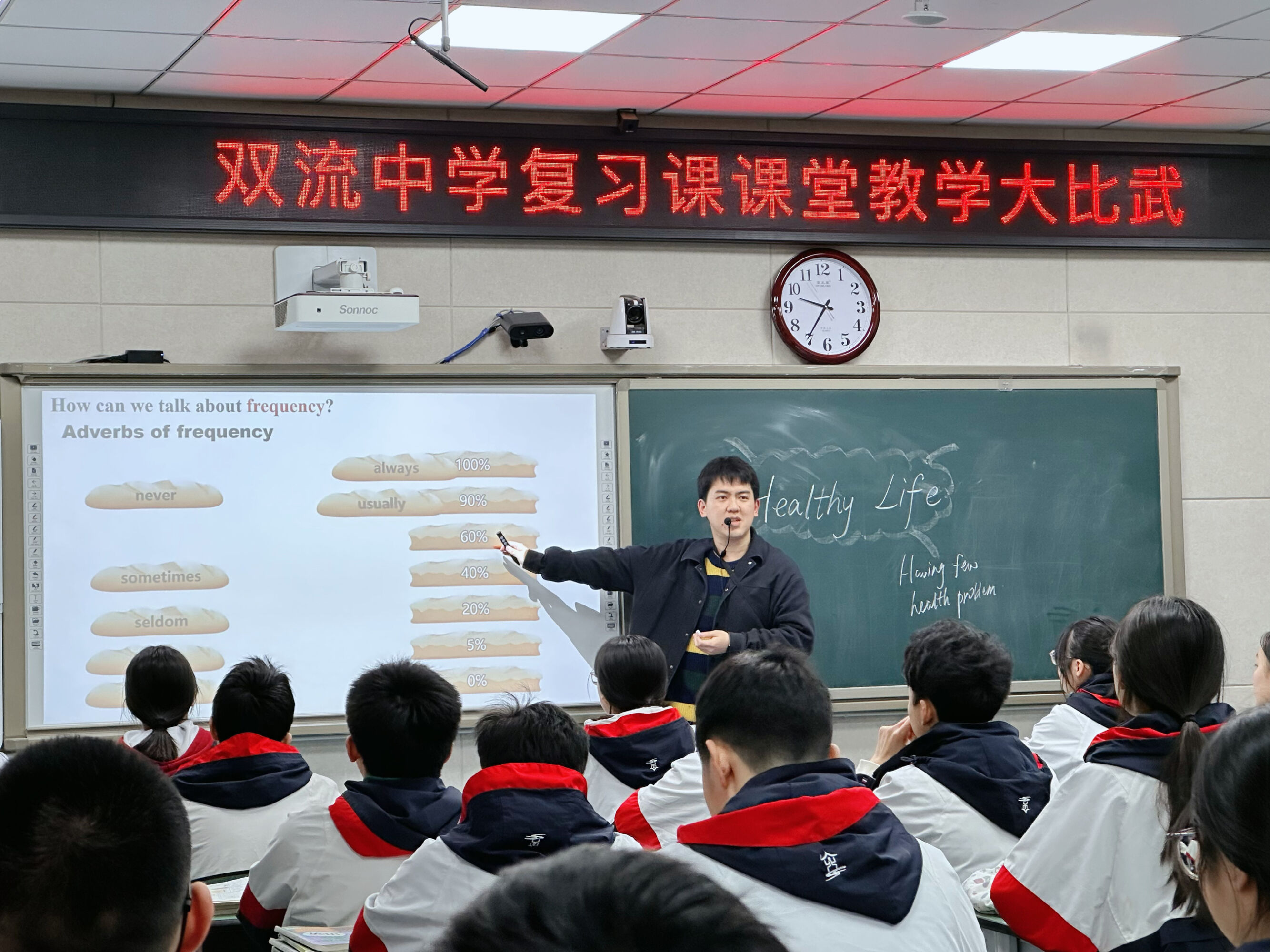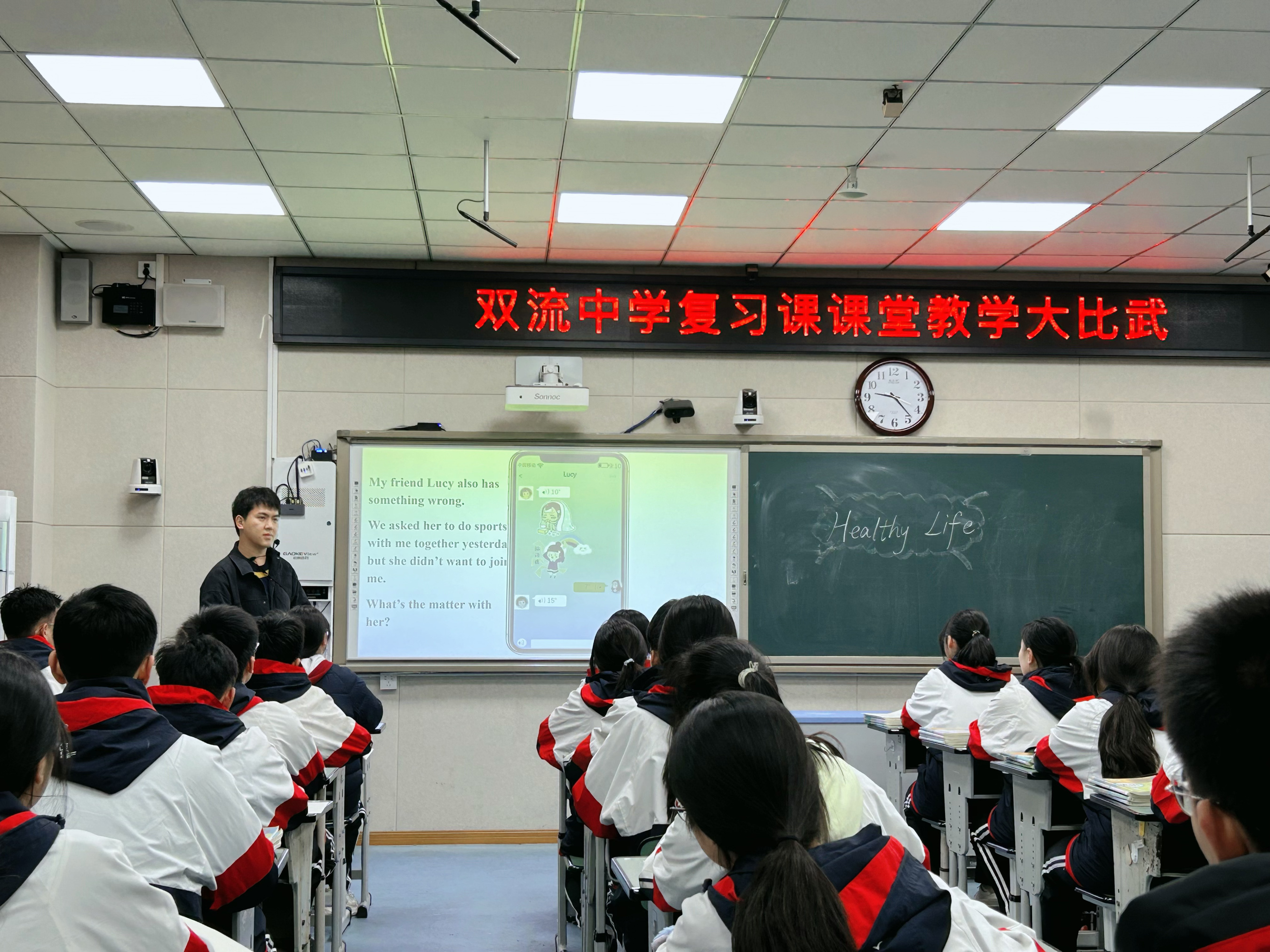 范珂誠(chéng)老師以“健康”話題為軸,通過(guò)“如何保持健康生活?”驅(qū)動(dòng)學(xué)生串聯(lián)知識(shí),結(jié)合中考真題分層訓(xùn)練。課堂中學(xué)生積極探究,甚至自發(fā)拓展討論身體和心理健康議題,體現(xiàn)核心素養(yǎng)培養(yǎng)。