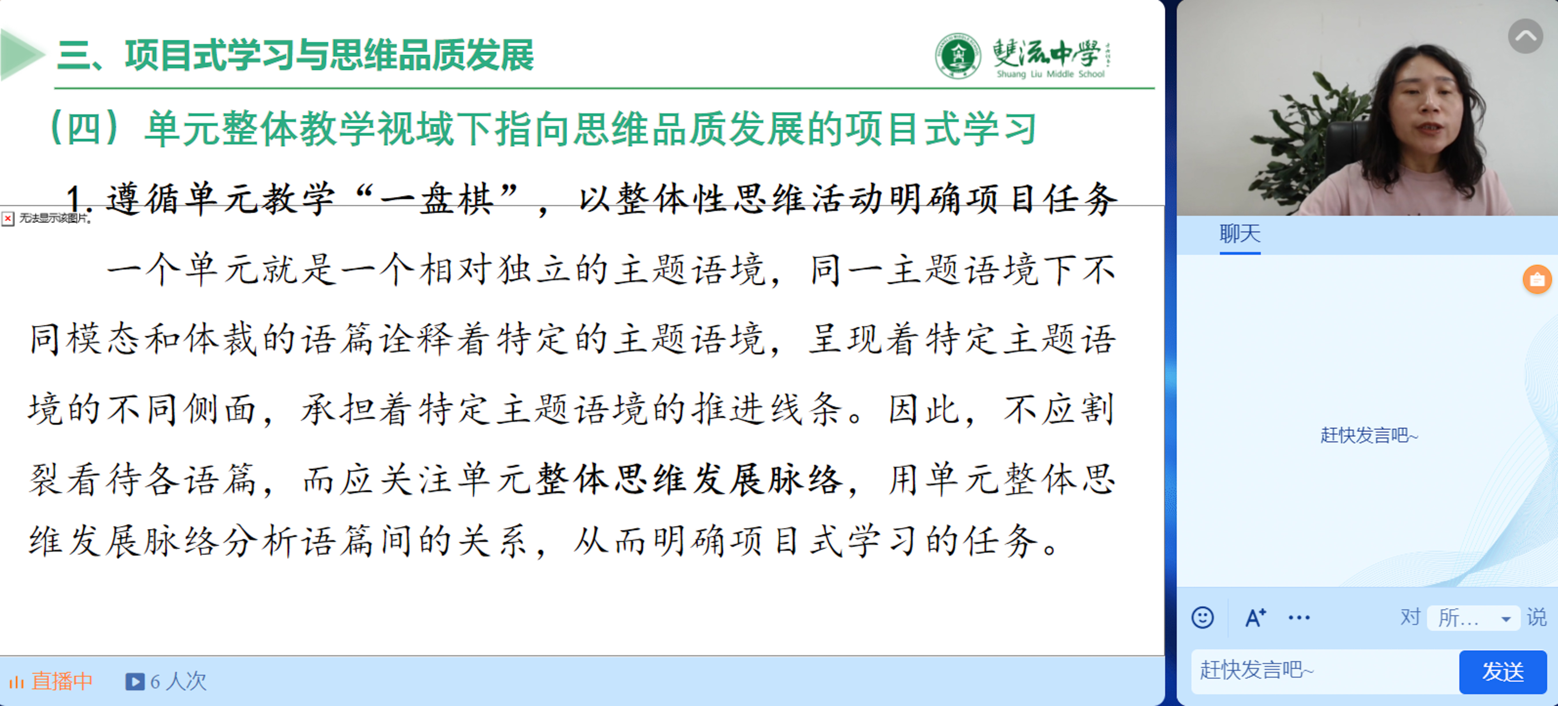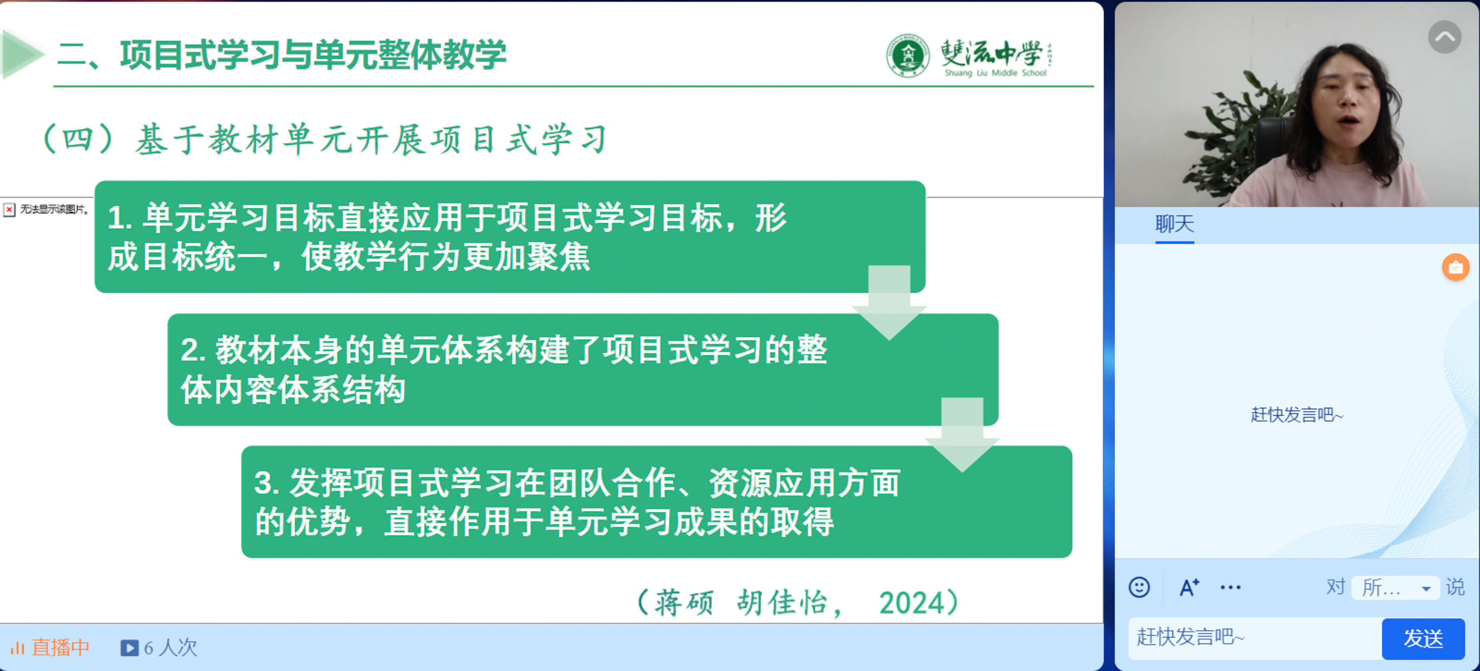 本次培訓(xùn)活動(dòng)的開(kāi)篇,由劉利勤老師為全體參會(huì)教師以選B3U2單元為例詳細(xì)介紹了項(xiàng)目式學(xué)習(xí)(Project based Learning)的框架與實(shí)踐應(yīng)用。劉老師闡述了如何通過(guò)項(xiàng)目式學(xué)習(xí)激發(fā)學(xué)生的批判性思維,提升他們的語(yǔ)言能力與文化素養(yǎng)。她特別強(qiáng)調(diào),項(xiàng)目式學(xué)習(xí)強(qiáng)調(diào)“任務(wù)導(dǎo)向,合作學(xué)習(xí),知識(shí)應(yīng)用”,通過(guò)設(shè)計(jì)真實(shí)、具有挑戰(zhàn)性的問(wèn)題,引導(dǎo)學(xué)生進(jìn)行深入的探究與創(chuàng)新。