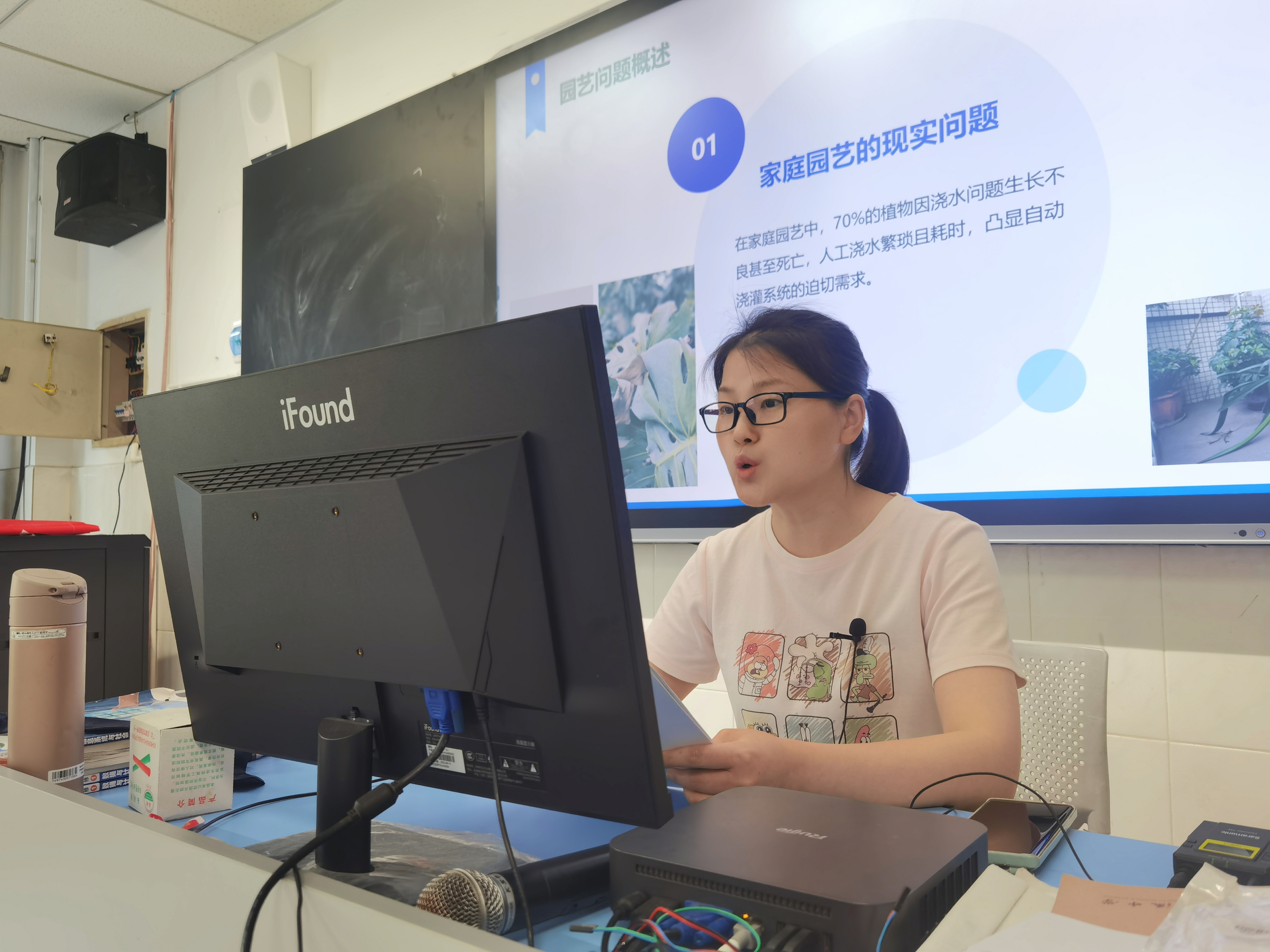 隨后,伍福琴老師帶來了《從創(chuàng)意到落地:家庭自動(dòng)澆灌系統(tǒng)中的工程與設(shè)計(jì)思維修煉》的實(shí)踐分享。通過詳實(shí)的項(xiàng)目案例,伍老師展示了如何將AI工具、虛擬仿真等技術(shù)融入教學(xué)全過程。"我們鼓勵(lì)學(xué)生先做'用戶體驗(yàn)師',再做'工程師'。"伍老師介紹道。因?yàn)檫@種模式需要學(xué)生先通過訪談、觀察等方式深入理解用戶需求,再運(yùn)用工程技術(shù)實(shí)現(xiàn)方案,最后通過多輪測試迭代優(yōu)化,不僅能夠培養(yǎng)學(xué)生的技術(shù)能力,更能夠塑造其以人為本的創(chuàng)新意識(shí)。
