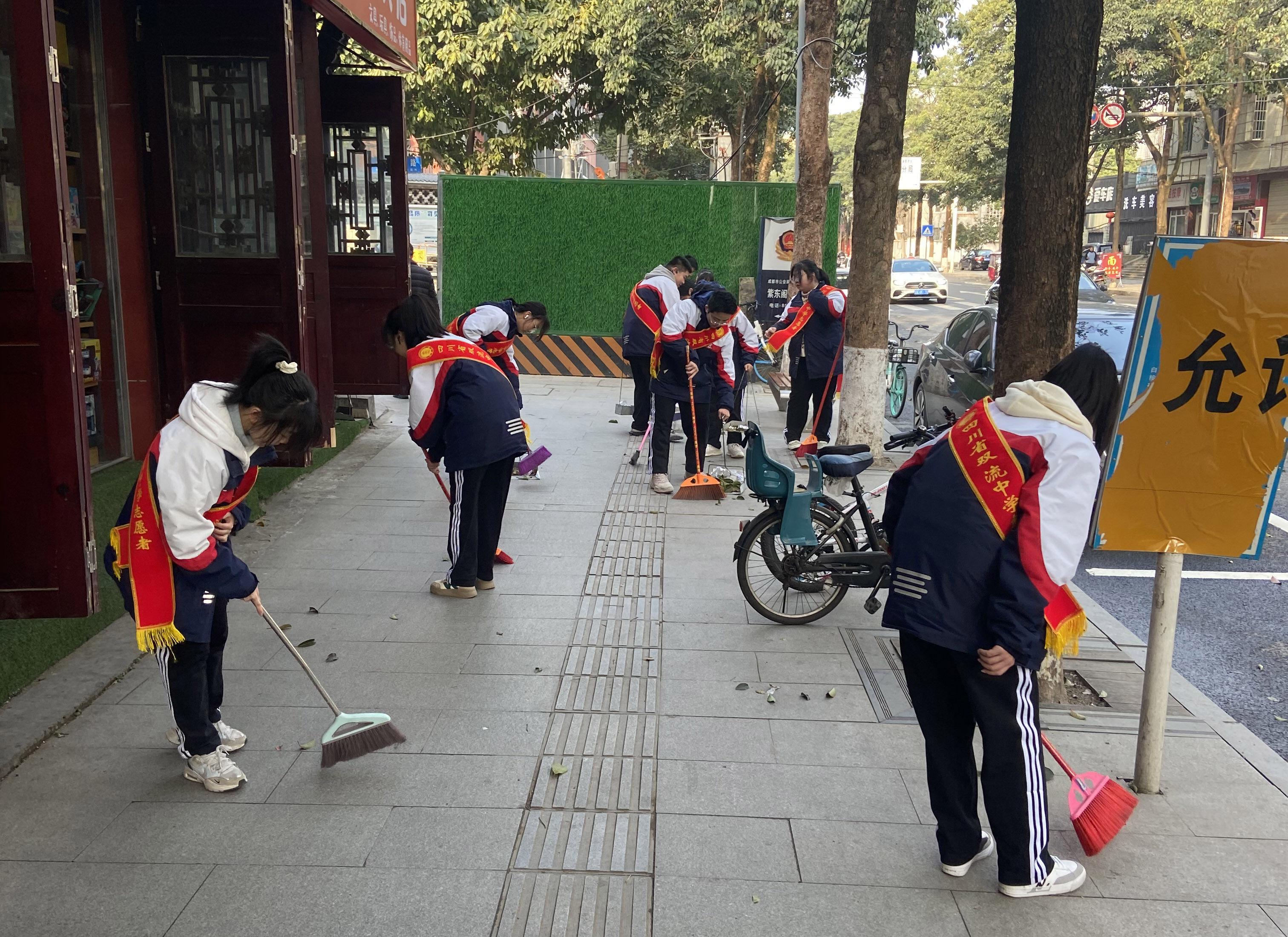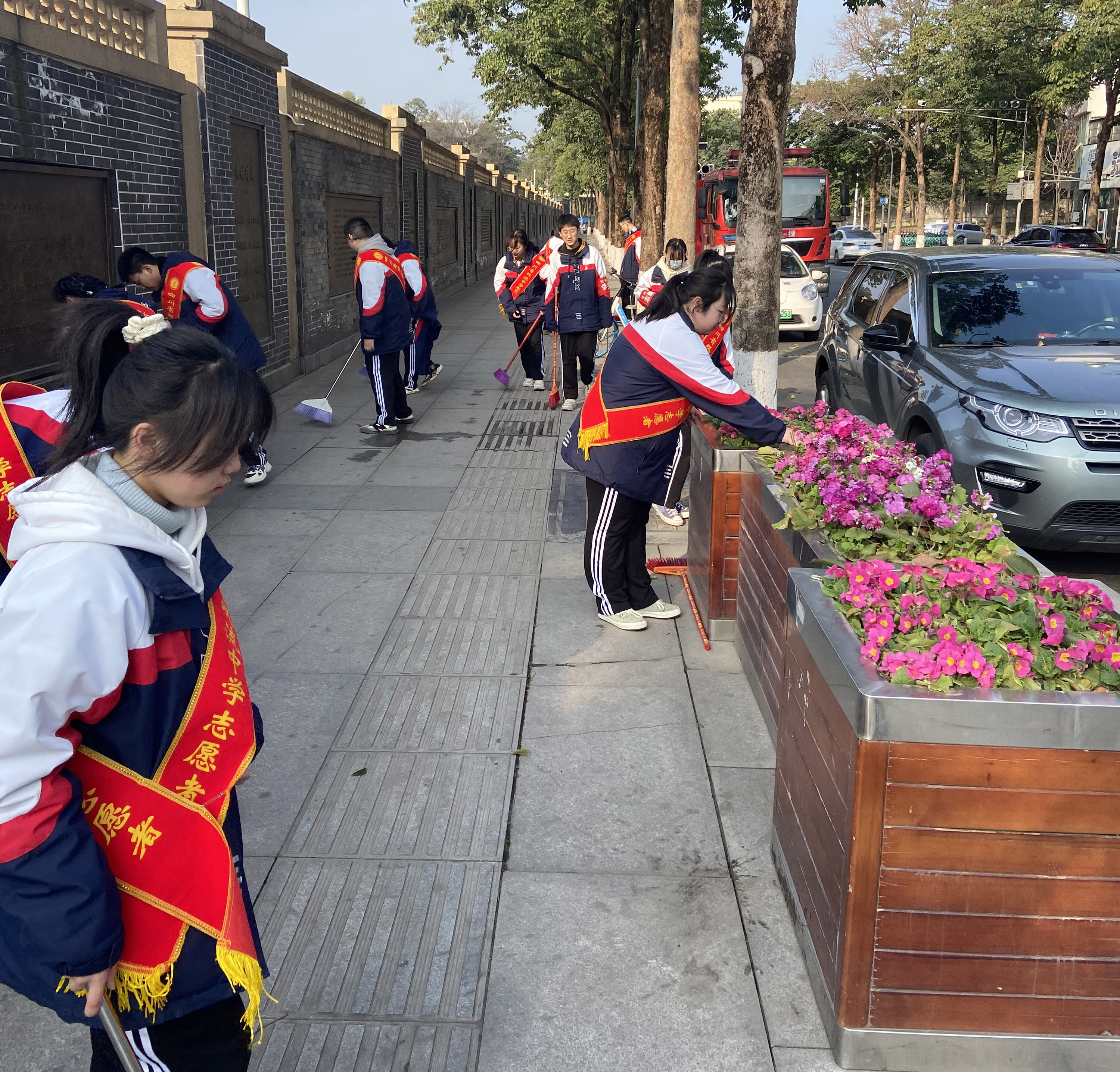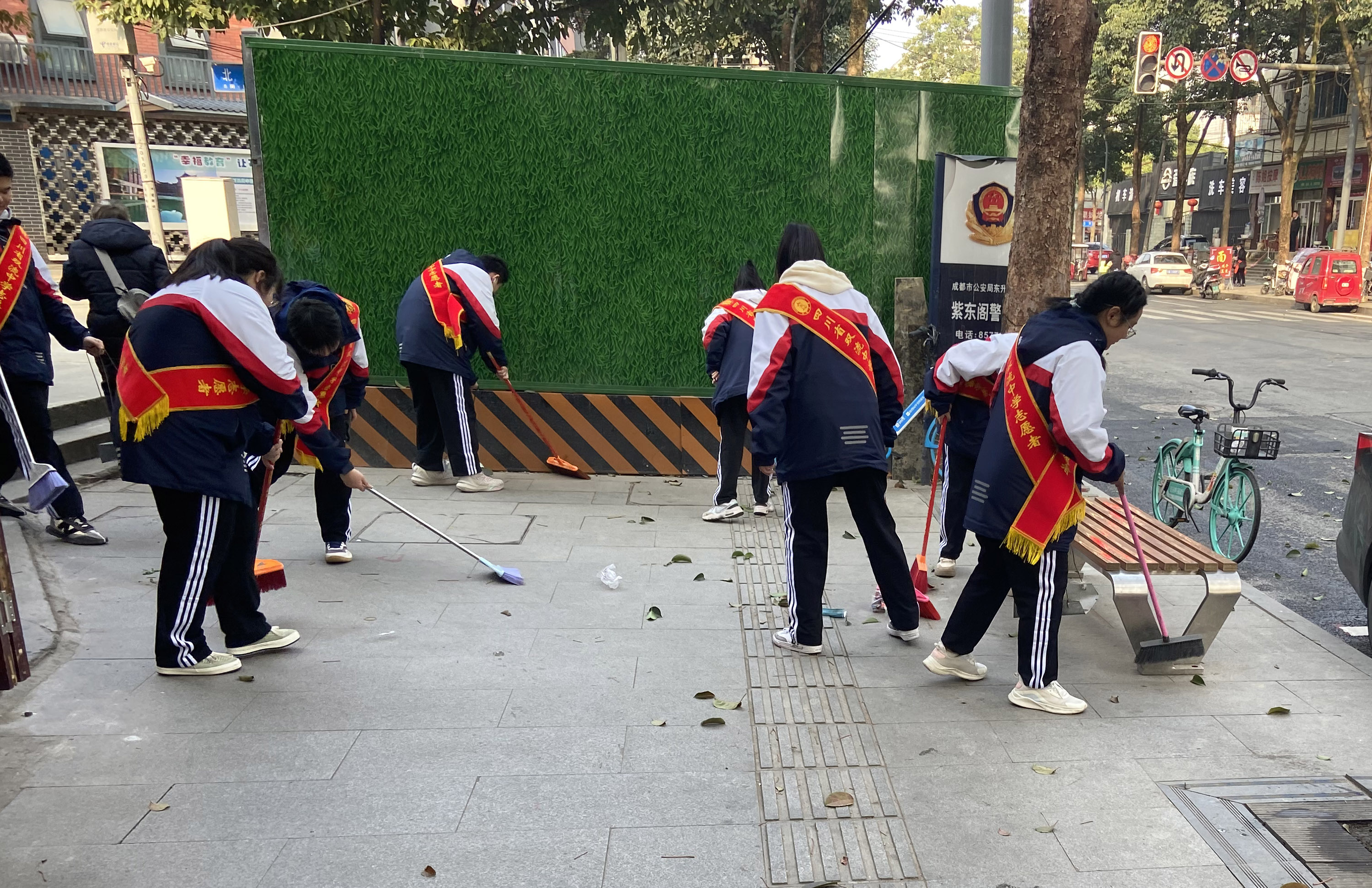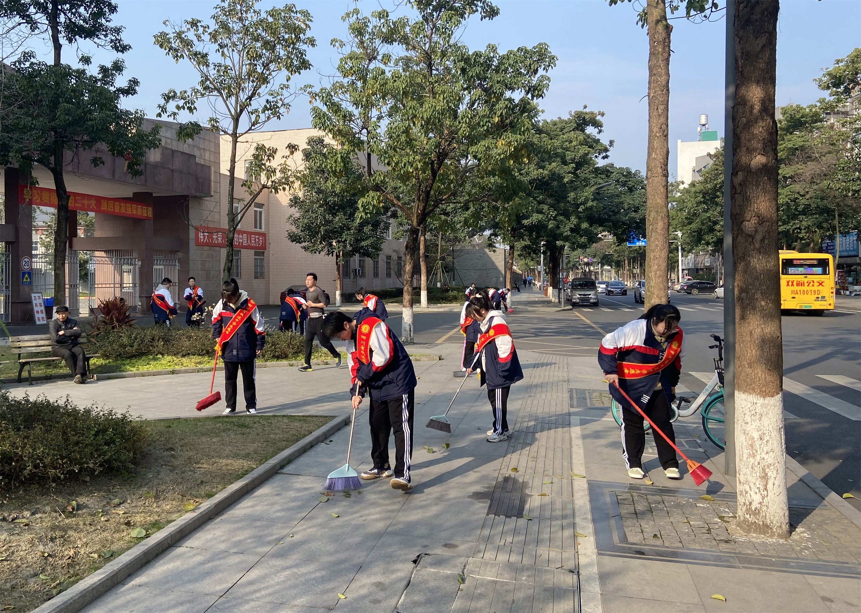 陽(yáng)春時(shí)節(jié),暖意濃濃。為踐行社會(huì)主義核心價(jià)值觀,貫徹學(xué)習(xí)習(xí)近平總書記有關(guān)學(xué)習(xí)雷鋒的講話,加強(qiáng)學(xué)生的思想道德建設(shè)工作,雙流中學(xué)德育安全處、校團(tuán)委組織學(xué)生志愿者在校園周邊街道開(kāi)展了清潔大掃除活動(dòng)。
