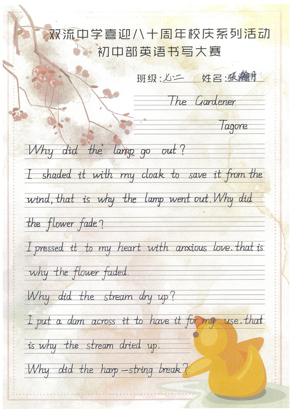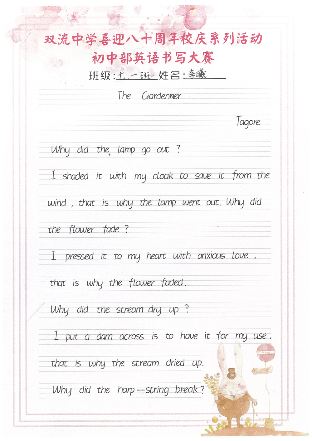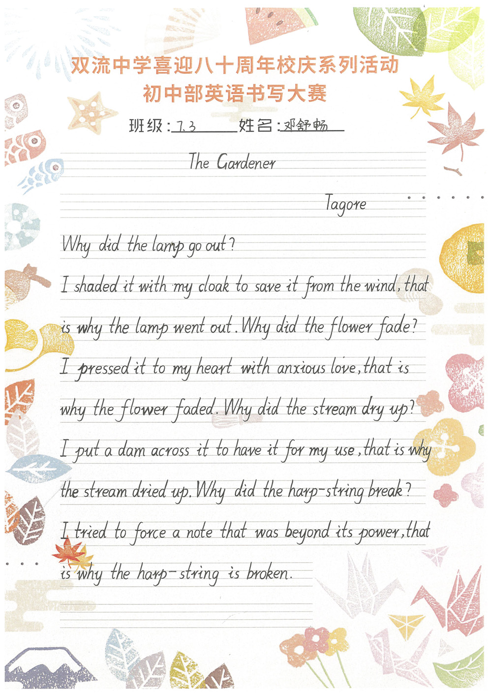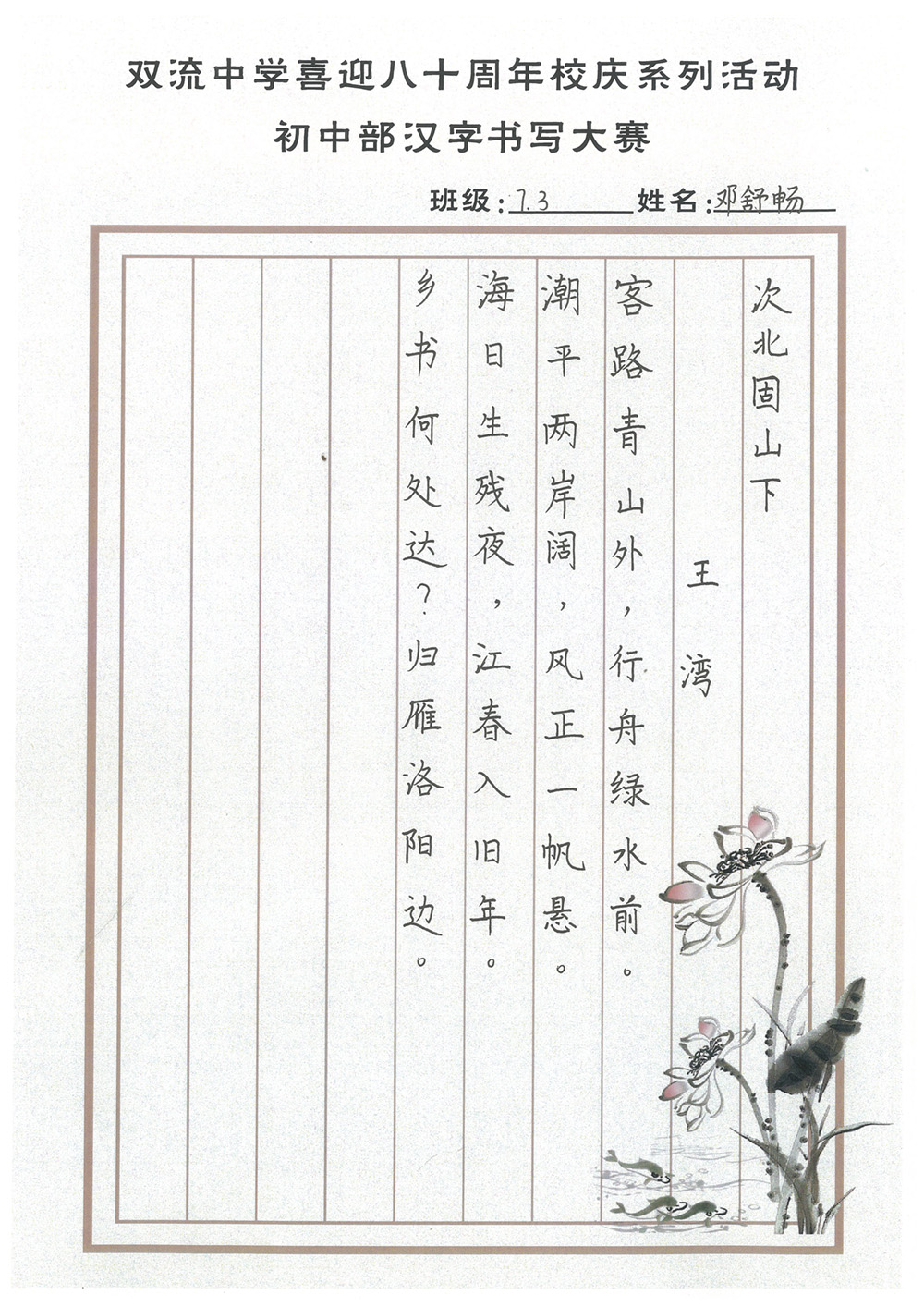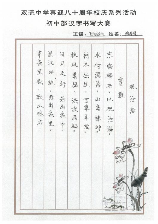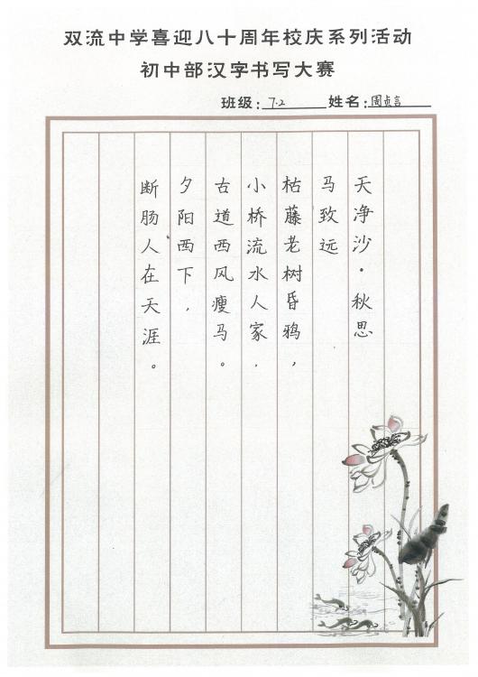 ——雙流中學(xué)初中部書寫大賽