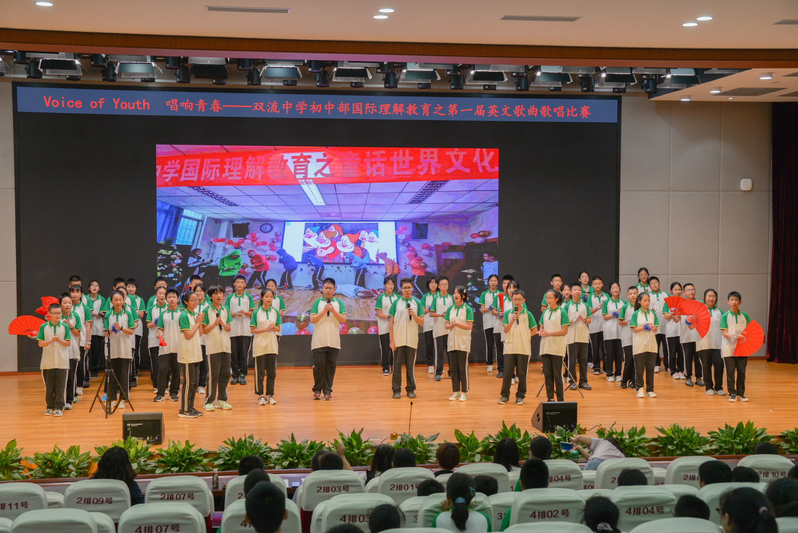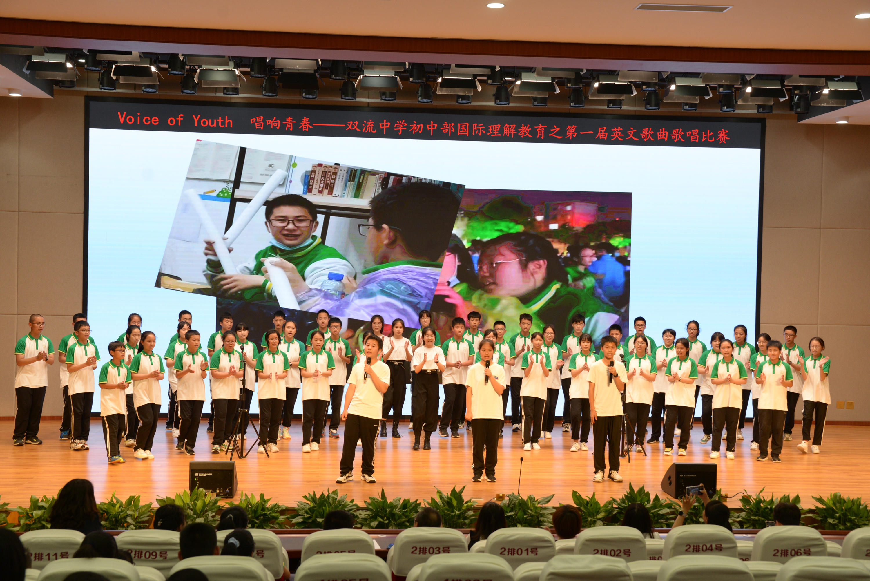 2021年6月9日下午,雙流中學(xué)初中一年級(jí)師生在玉蘭廳開展了以“Voice of Youth唱響青春”為主題的英語歌唱比賽。雙流中學(xué)初中一年級(jí)師生開展了以“Voice of Youth唱響青春”為主題的英語歌唱比賽