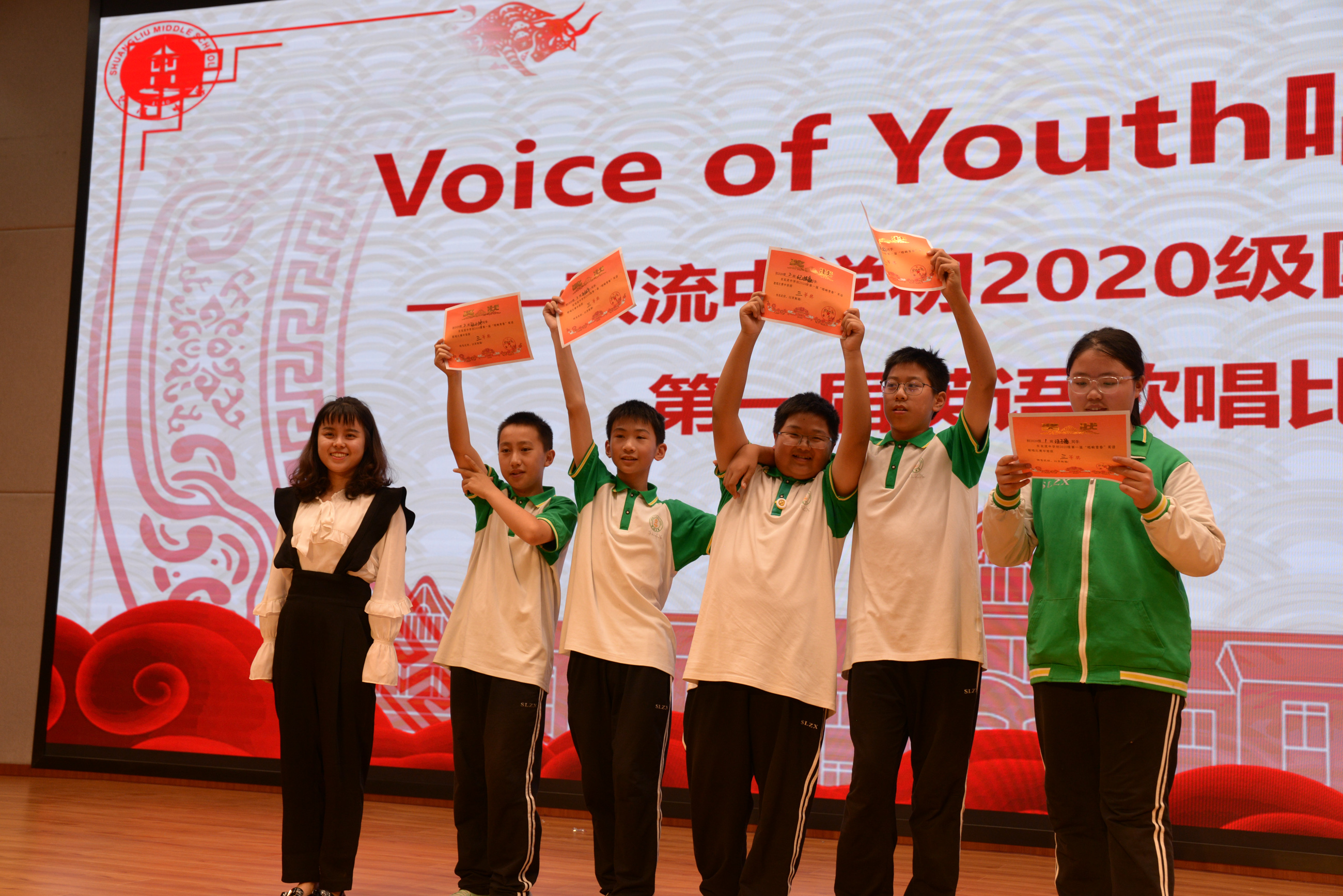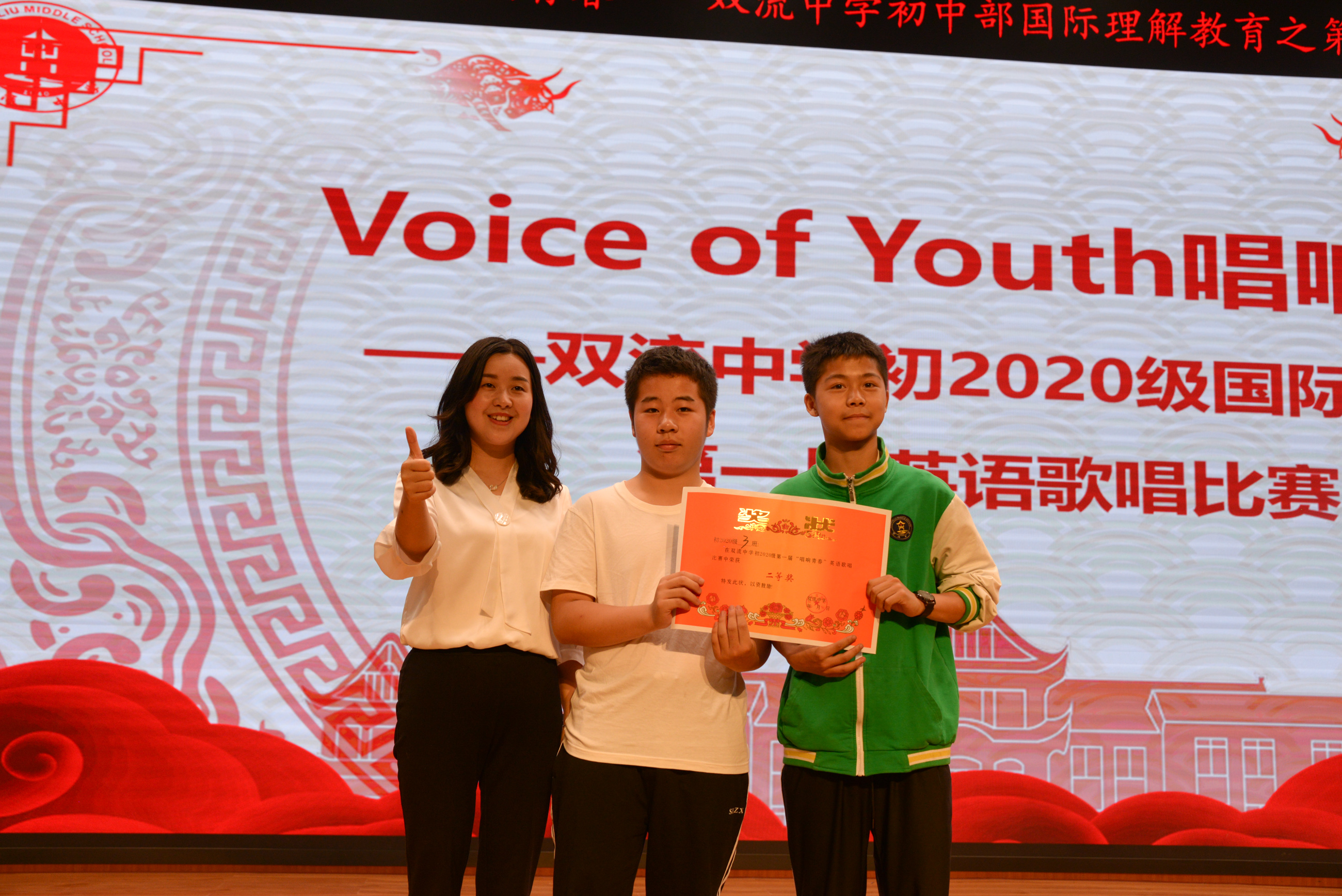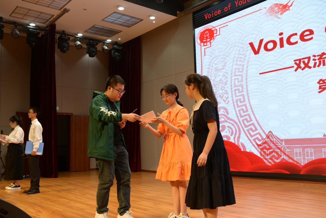為激發(fā)孩子們學(xué)習(xí)英語的熱情,提高孩子們的英語口語水平和音樂素養(yǎng),6月9日下午雙流中學(xué)初中部在玉蘭廳開展了以“Voice of Youth唱響青春”為主題的英語歌唱比賽,本次活動(dòng)面向雙流中學(xué)初一年級(jí)全體師生,出席本次大賽的有:雙流中學(xué)總務(wù)處主任張巧菊,德育安全處副主任郝碧婭,黨政辦副主任汪思杰,英語教研組組長余曉冬,高中優(yōu)秀青年教師羅芳梅、胡軒以及初中部全體老師。
