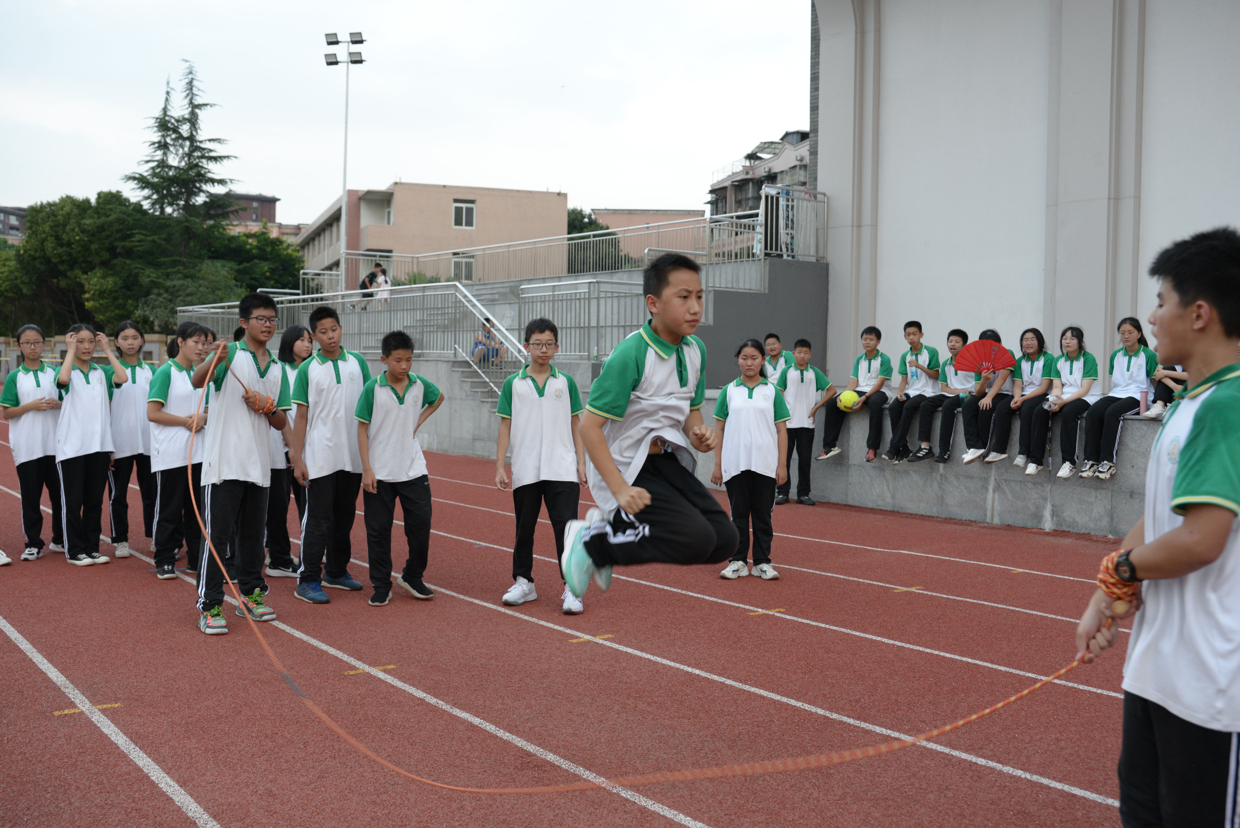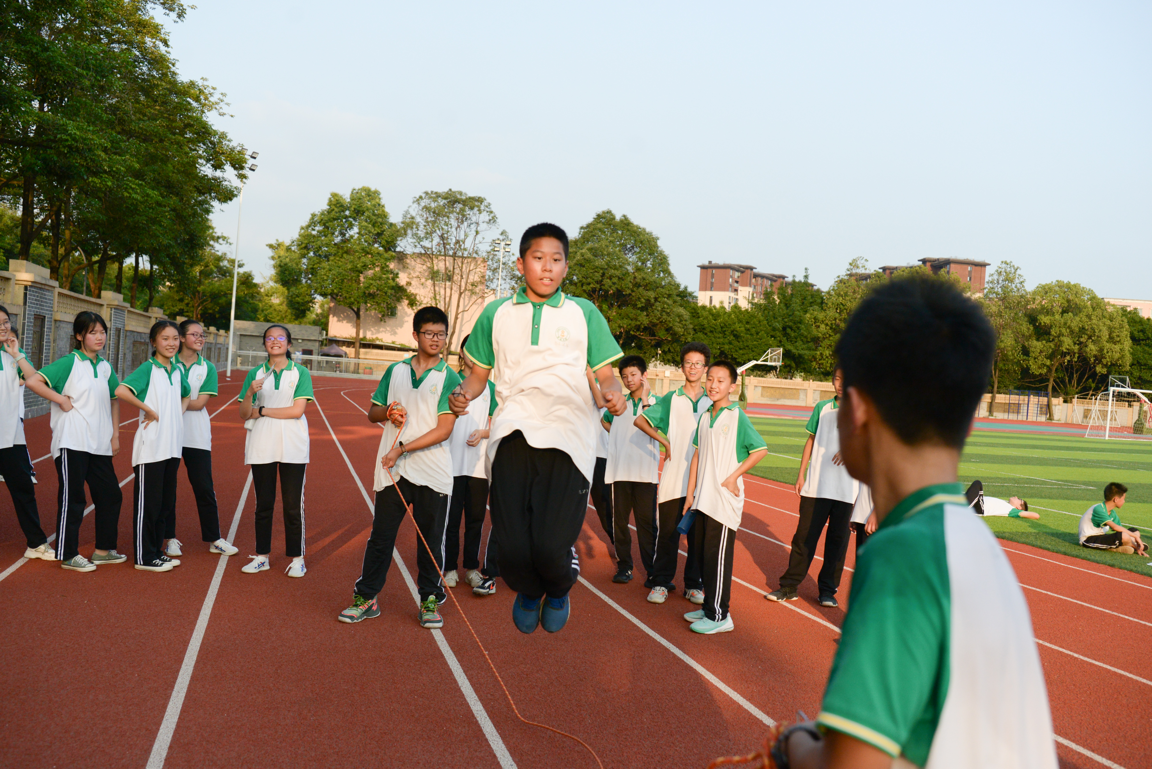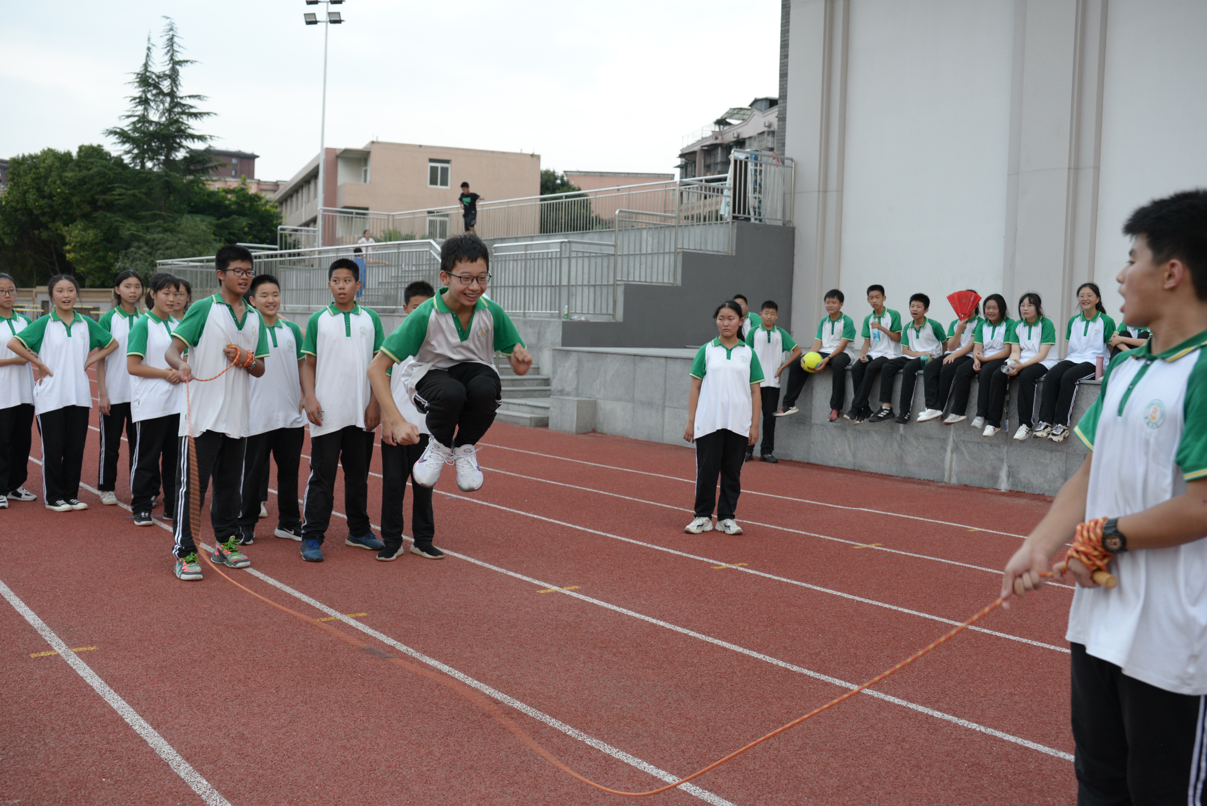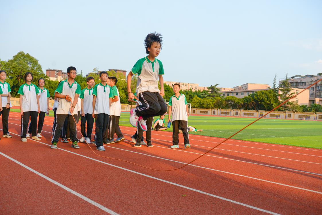 雙流中學(xué)初中組織開展了“跳動(dòng)青春,躍向未來”跳繩活動(dòng)