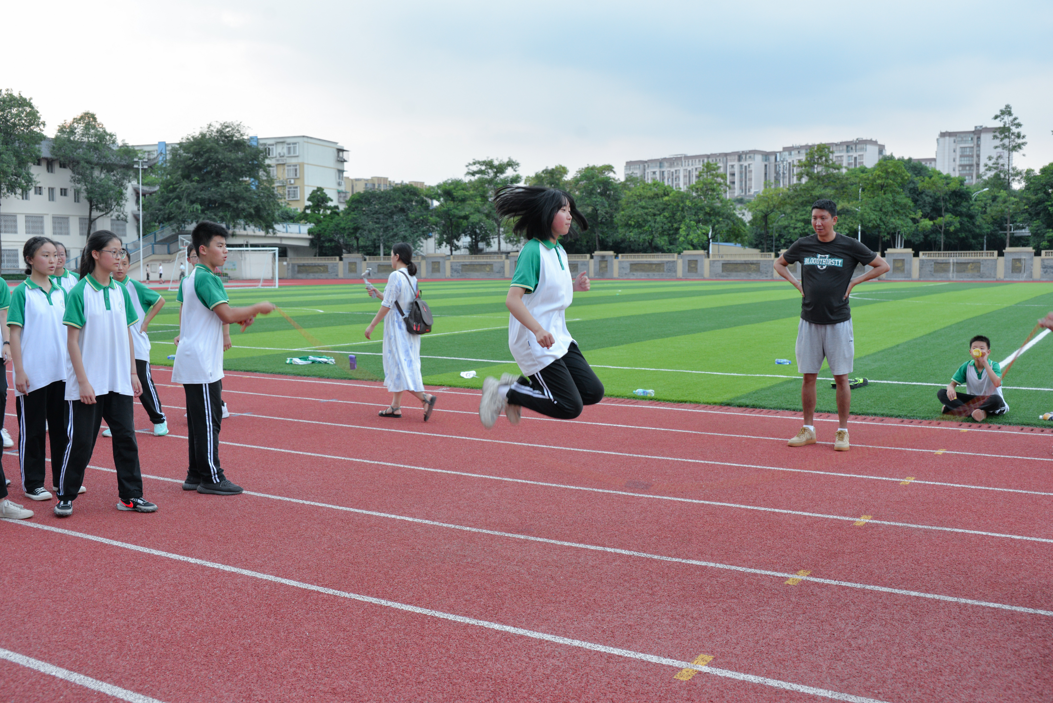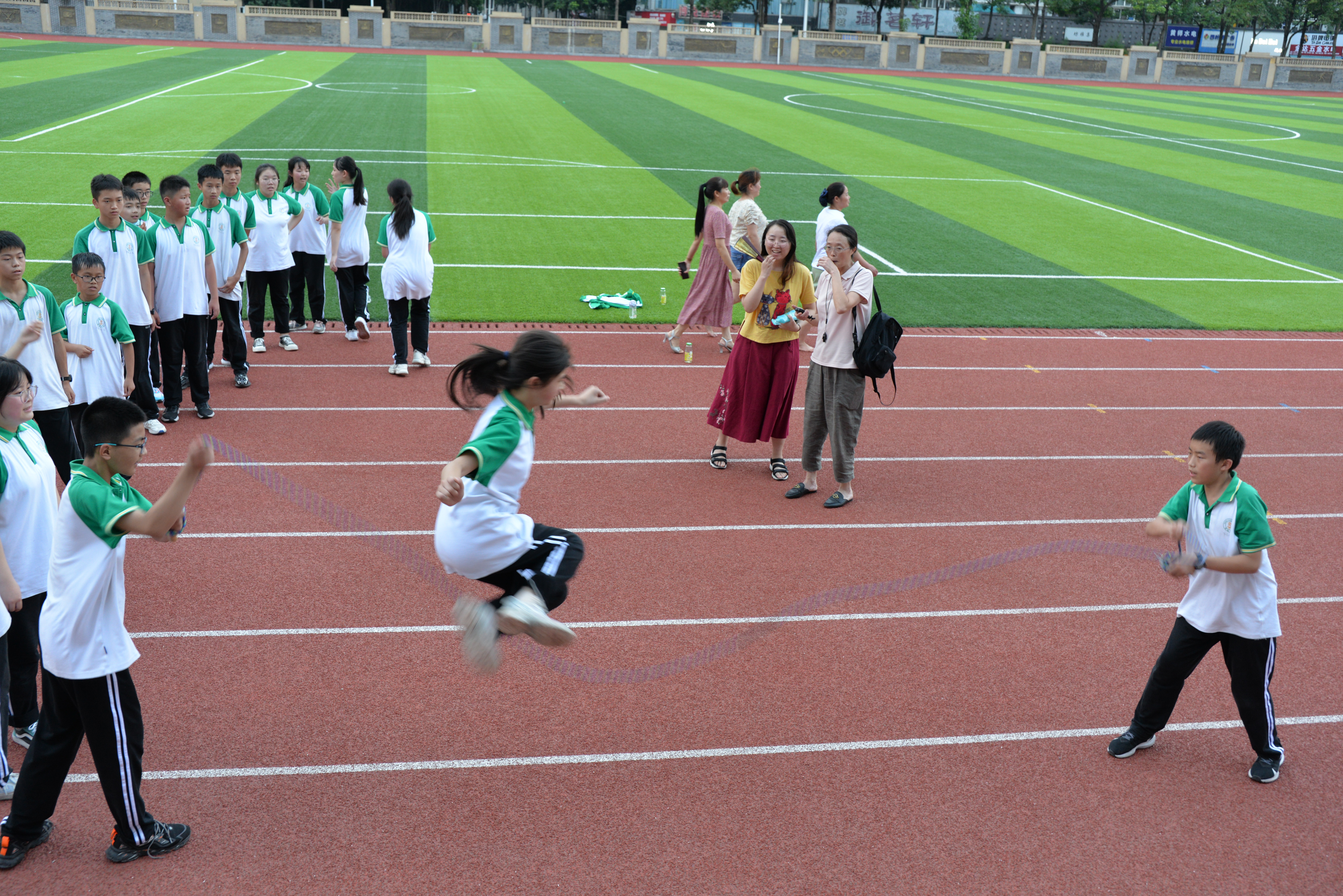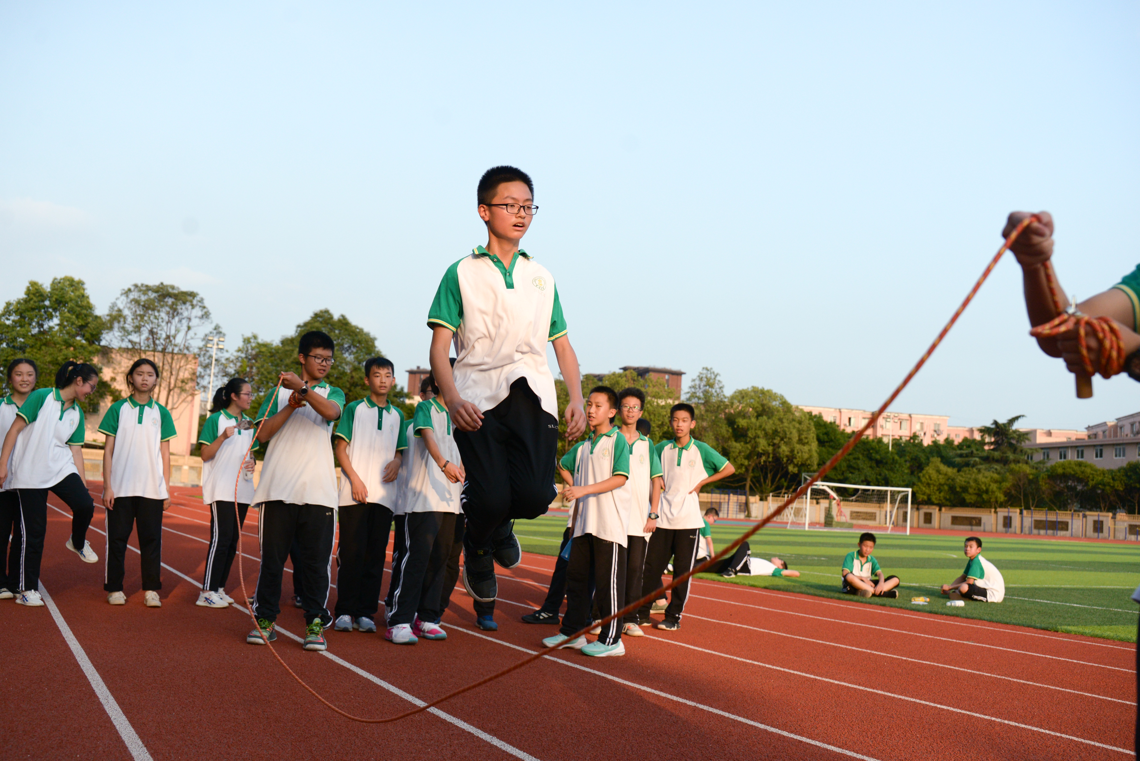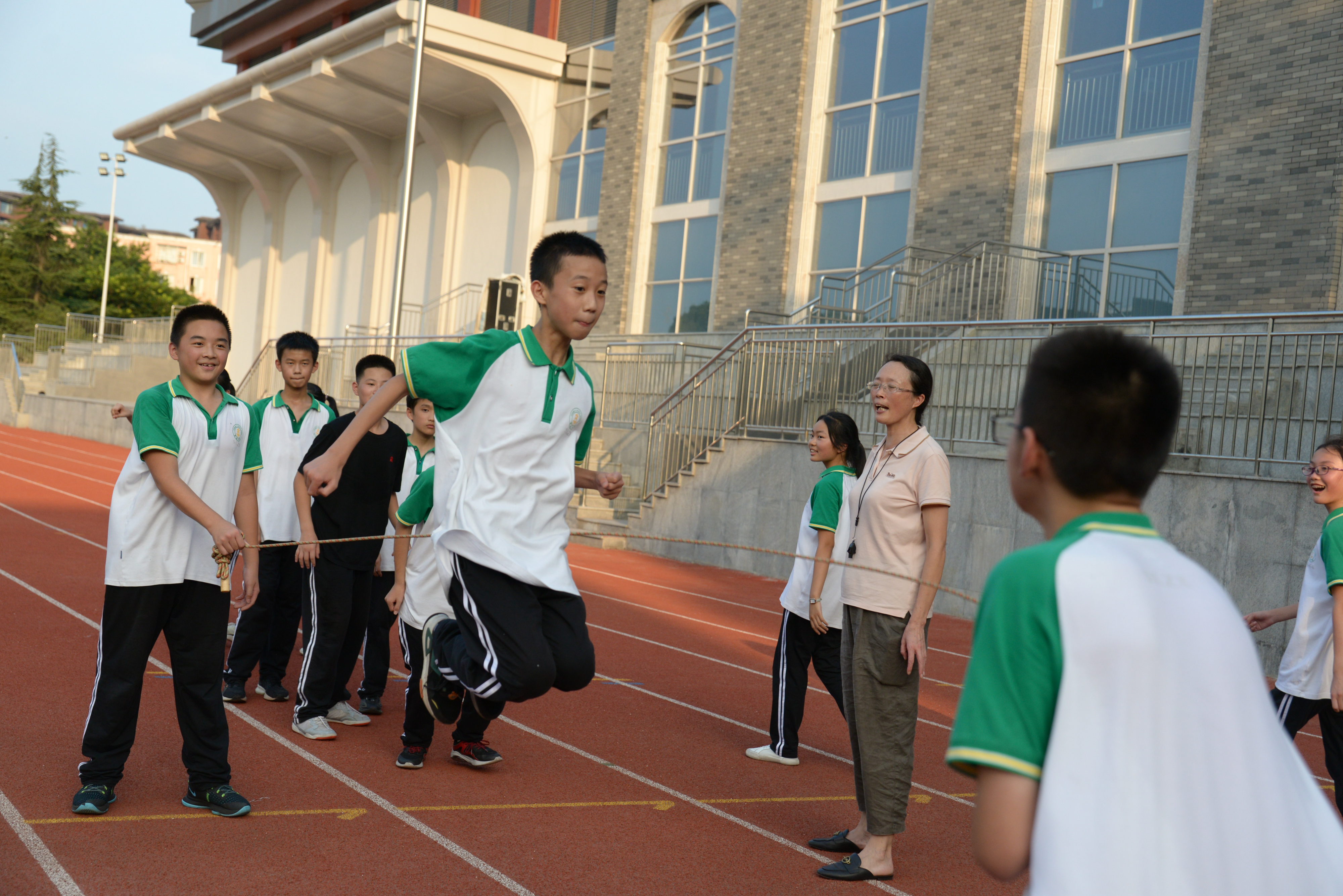 雙流中學(xué)初中組織開展了“跳動(dòng)青春,躍向未來”跳繩活動(dòng)