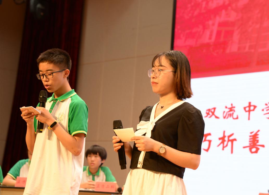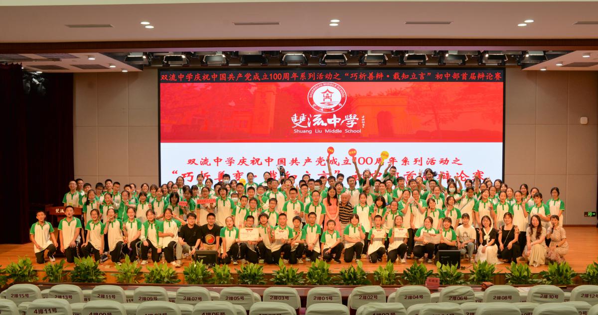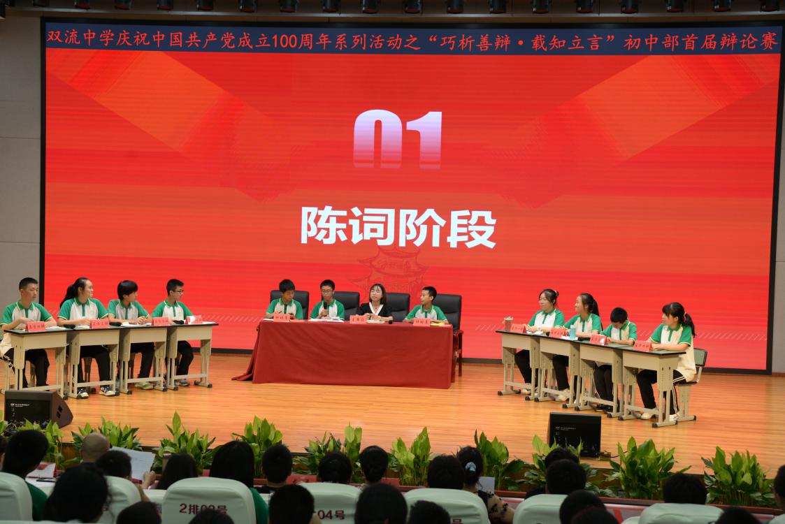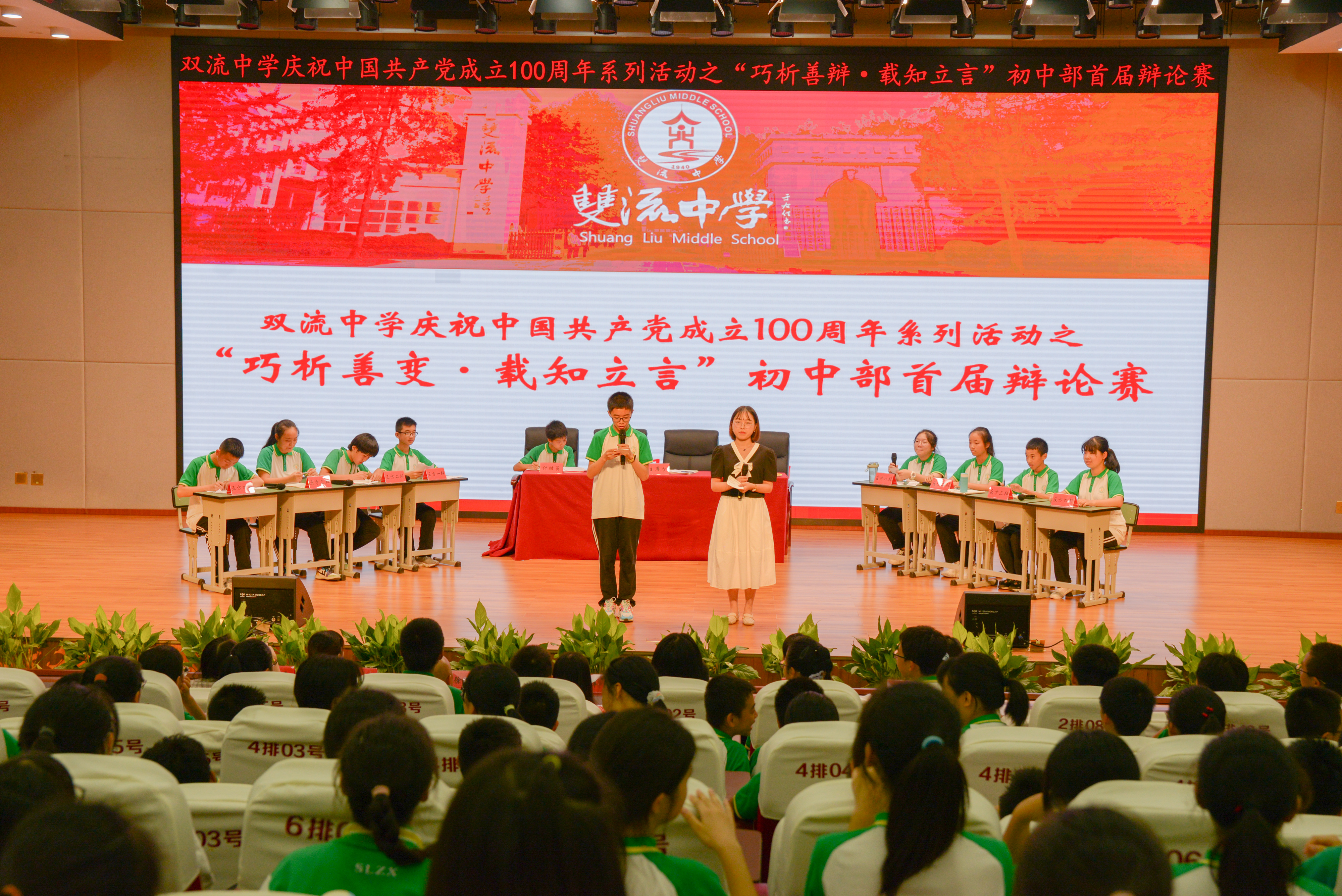 人間驕陽正好,風過林梢,此時我們正當年少。為熱烈慶祝中國共產(chǎn)黨成立100周年,推動黨史學習教育走深走實,激發(fā)中學生競爭進取精神,深度領(lǐng)悟思辨之美,2021年7月13日,“巧析善辯·載知立言”雙流中學初中部首屆辯論賽在玉蘭廳成功舉辦,活動由七年級政治老師代镕镕與學生搭檔主持,特邀雙流中學高中部徐文林、李萍兩位政治老師為點評嘉賓,初中部七年級全體師生廣泛參與。