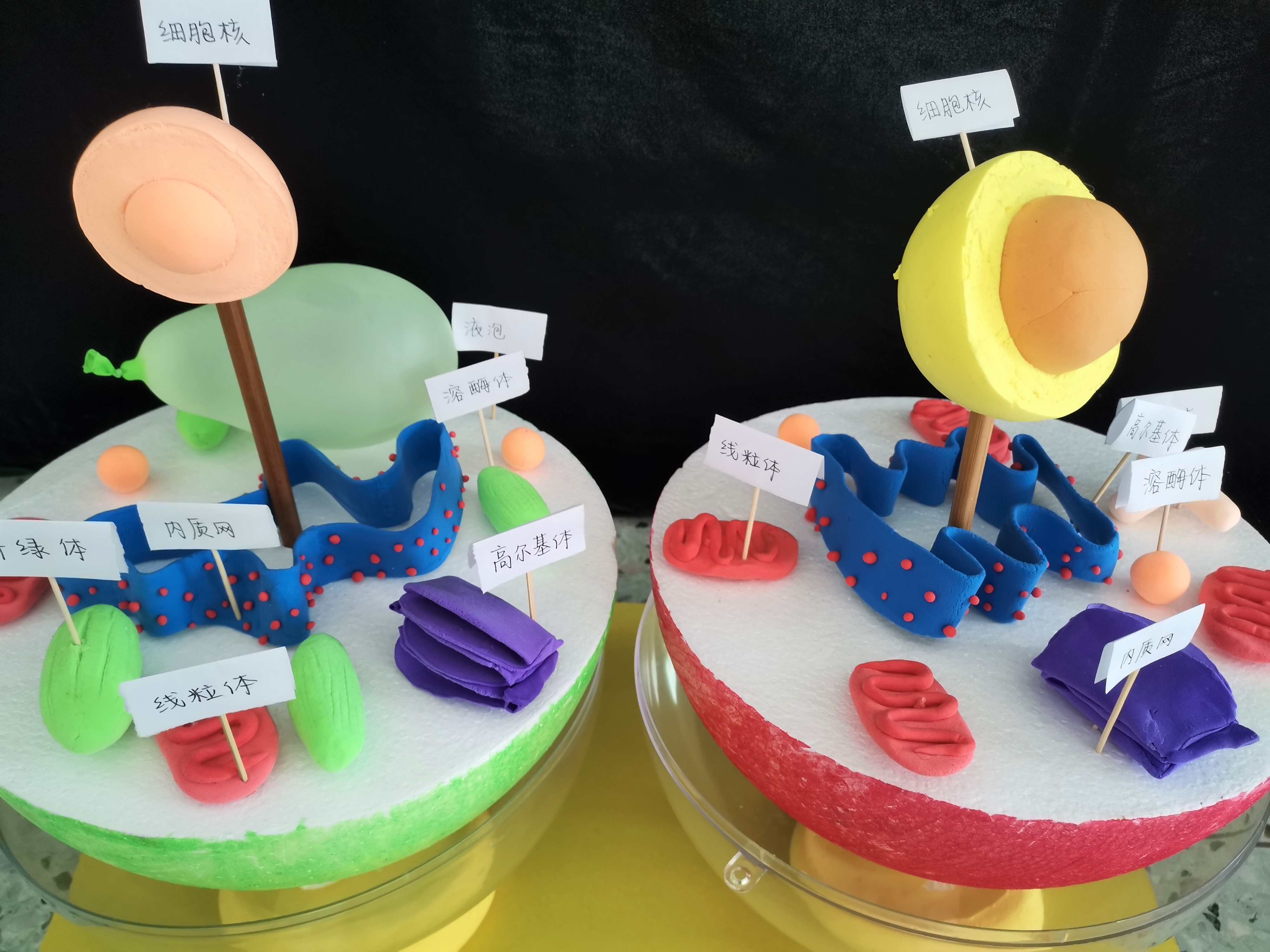 作品簡介:以紅色卡紙為細(xì)胞質(zhì)基質(zhì),小組成員制作不同的細(xì)胞器,以紙條注明各細(xì)胞器的功能,這就是一個完整的動物細(xì)胞亞顯微結(jié)構(gòu)圖,不過我們是3D的哦。