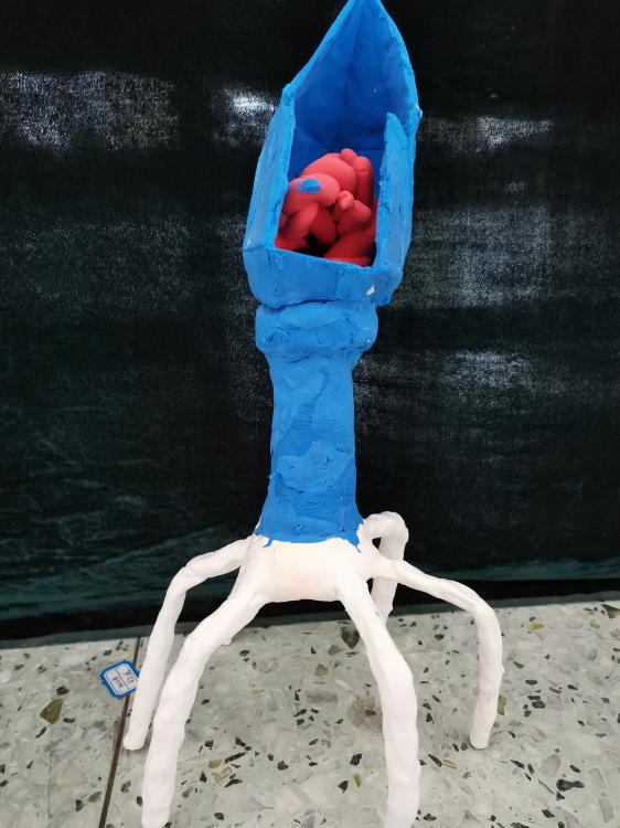 作品簡介:取紙張折成碗狀,將泥與水混合成流體增加厚度并制作細(xì)菌的突起與鞭毛,外表噴一層啞光油漆增加質(zhì)感。內(nèi)容物用塑料袋、紙屑填充,廢物利用,環(huán)保小衛(wèi)士就是我們啦。