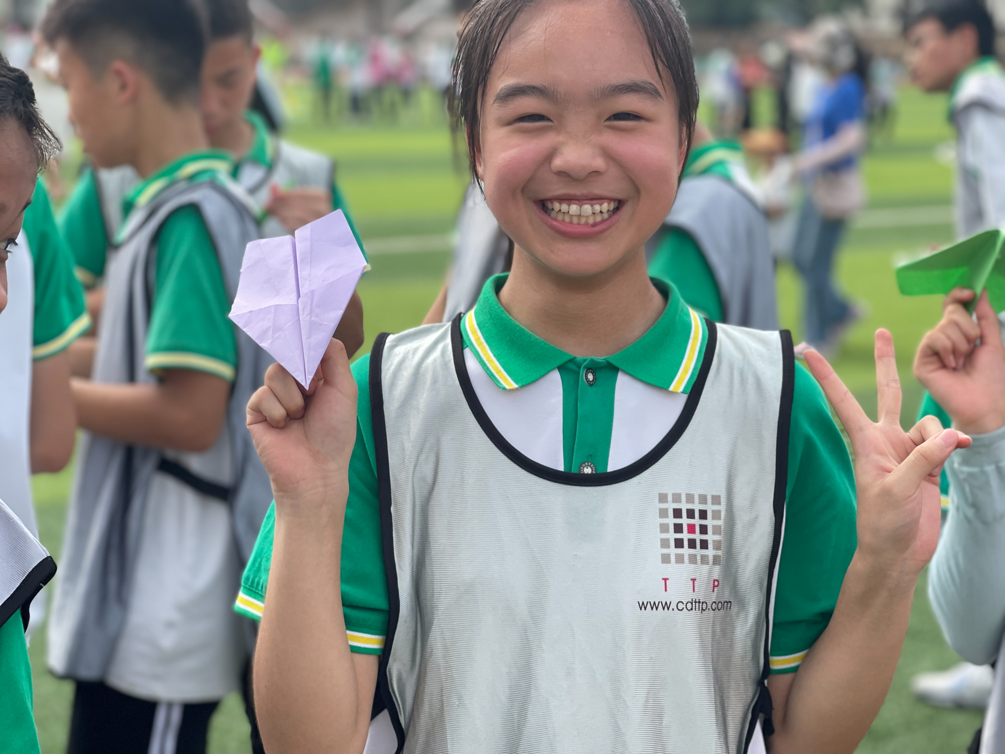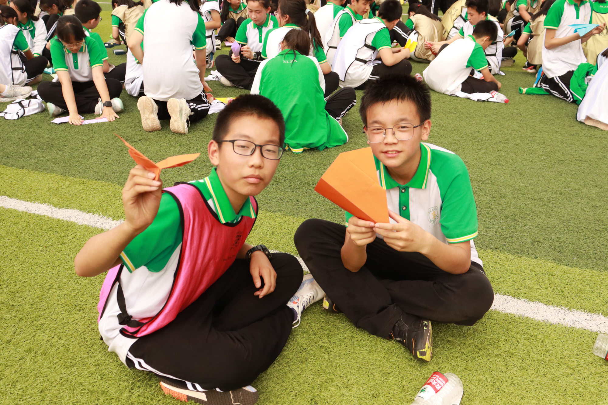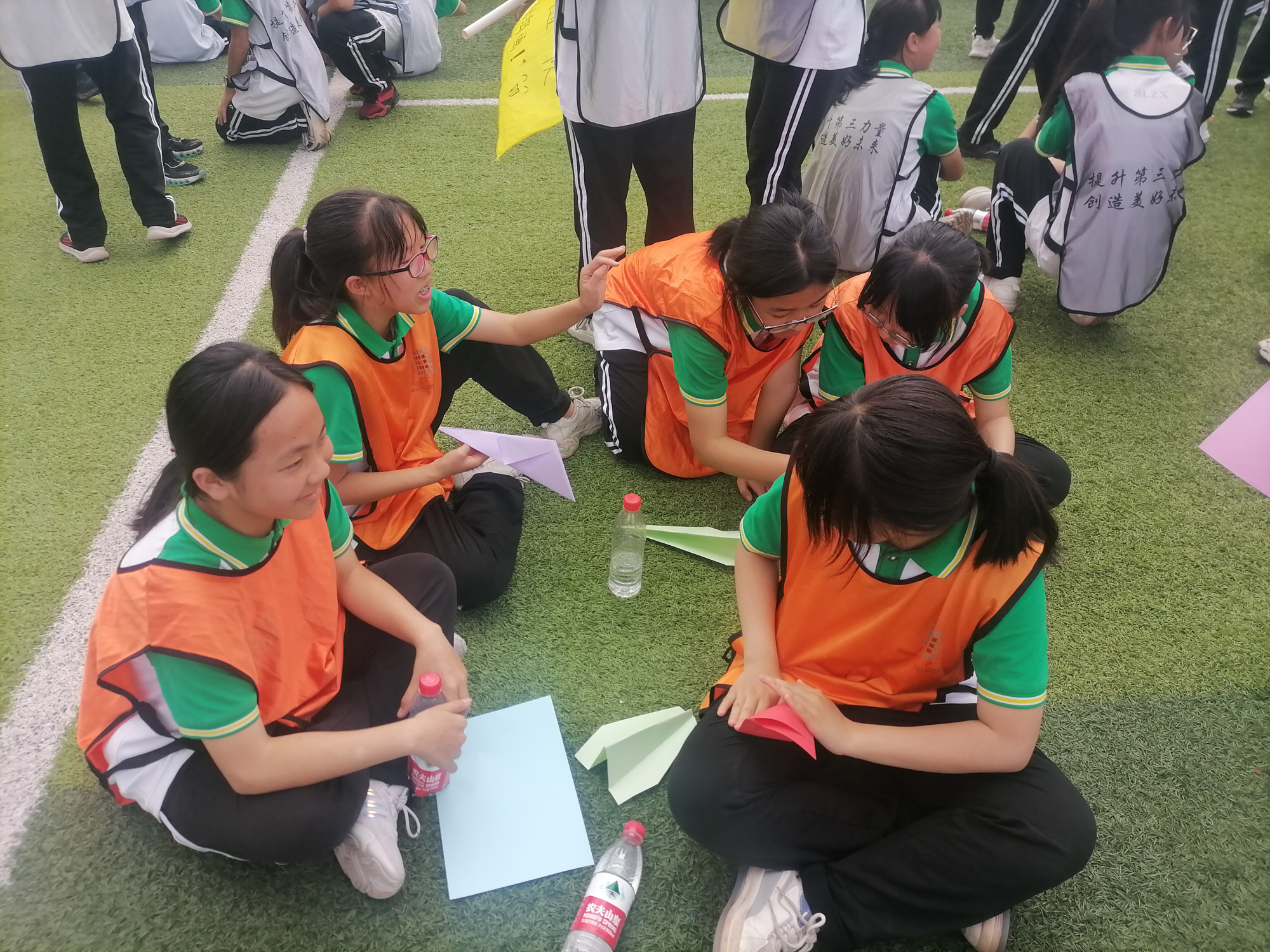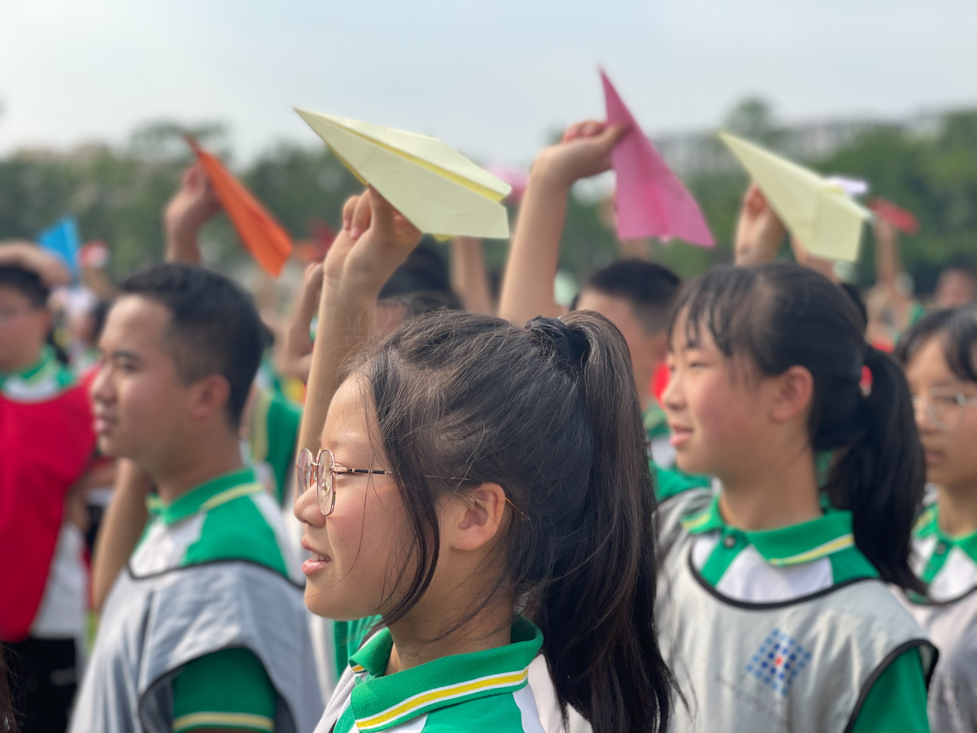 活動到了“放飛夢想”的環(huán)節(jié),所有同學在教練的指導下,把寫有夢想的紙張折成紙飛機,在教練的統(tǒng)一指揮和口令下,朝著同一個方向放飛夢想。