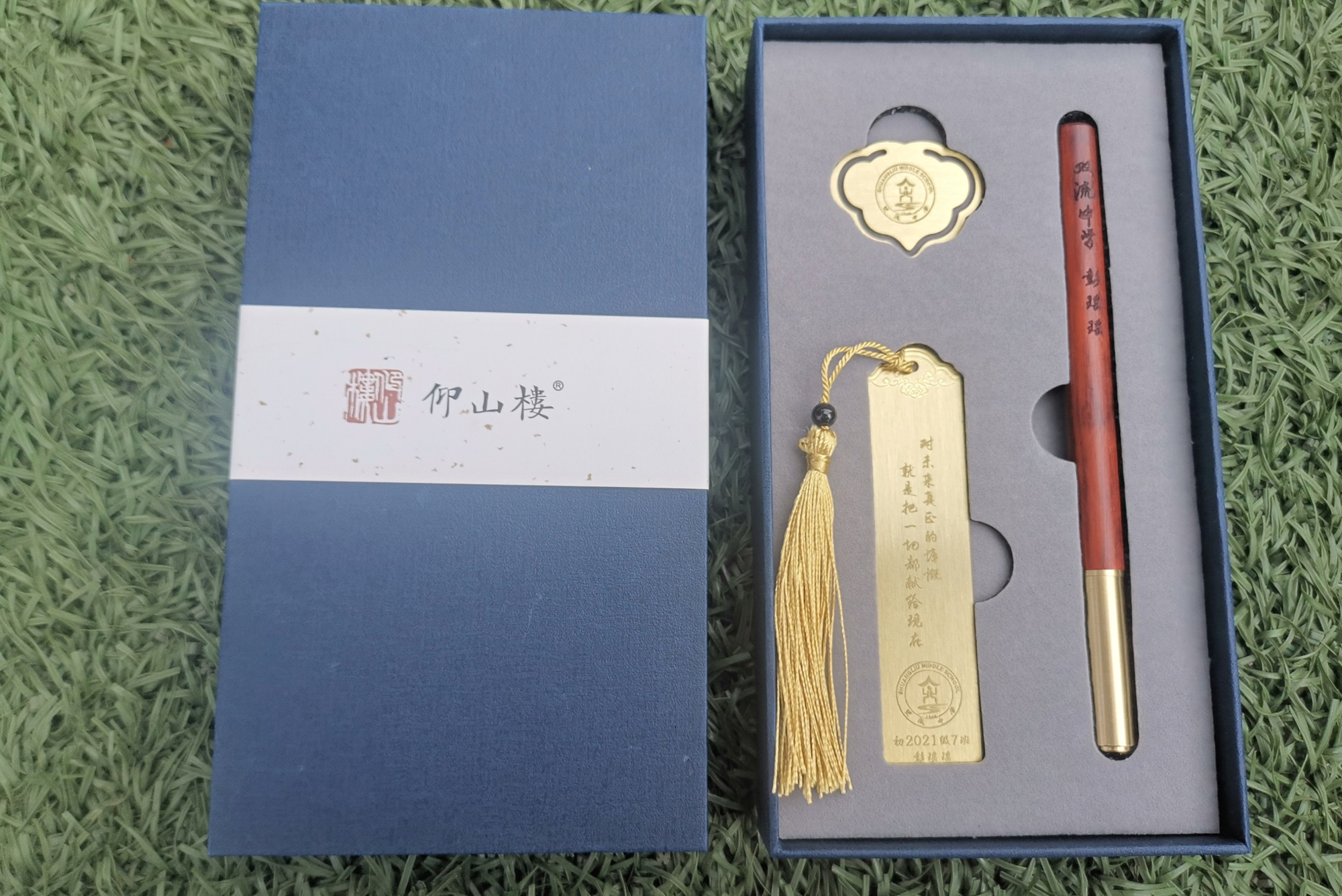 田主席和王主任現(xiàn)場給孩子們頒發(fā)了精心準備的紀念品,回到班級,各班班主任也對此次活動進行了深入總結,同時也給孩子們頒發(fā)了紀念品:刻有孩子們姓名的專屬鋼筆,云紋樣的?;?、刻有勸勉之言的專屬金屬書簽。