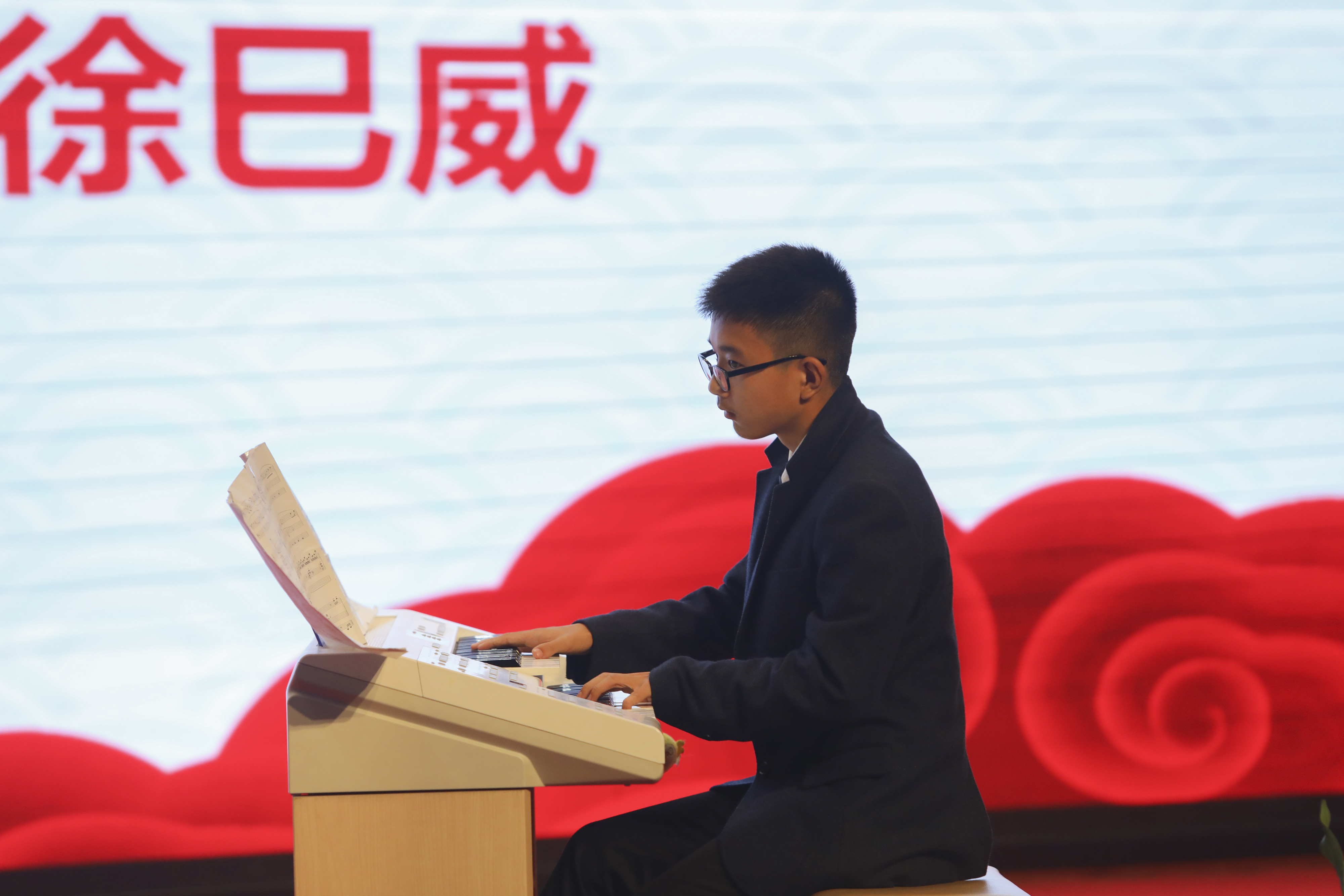 接下來上場的是來自初二1班的徐巳威同學(xué),他為大家?guī)砹俗屓硕恳恍碌臉菲鞅硌荨娮庸茱L(fēng)琴,曲調(diào)激昂,而徐巳威同學(xué)的表演更是讓大家看到了一個(gè)不一樣的他!