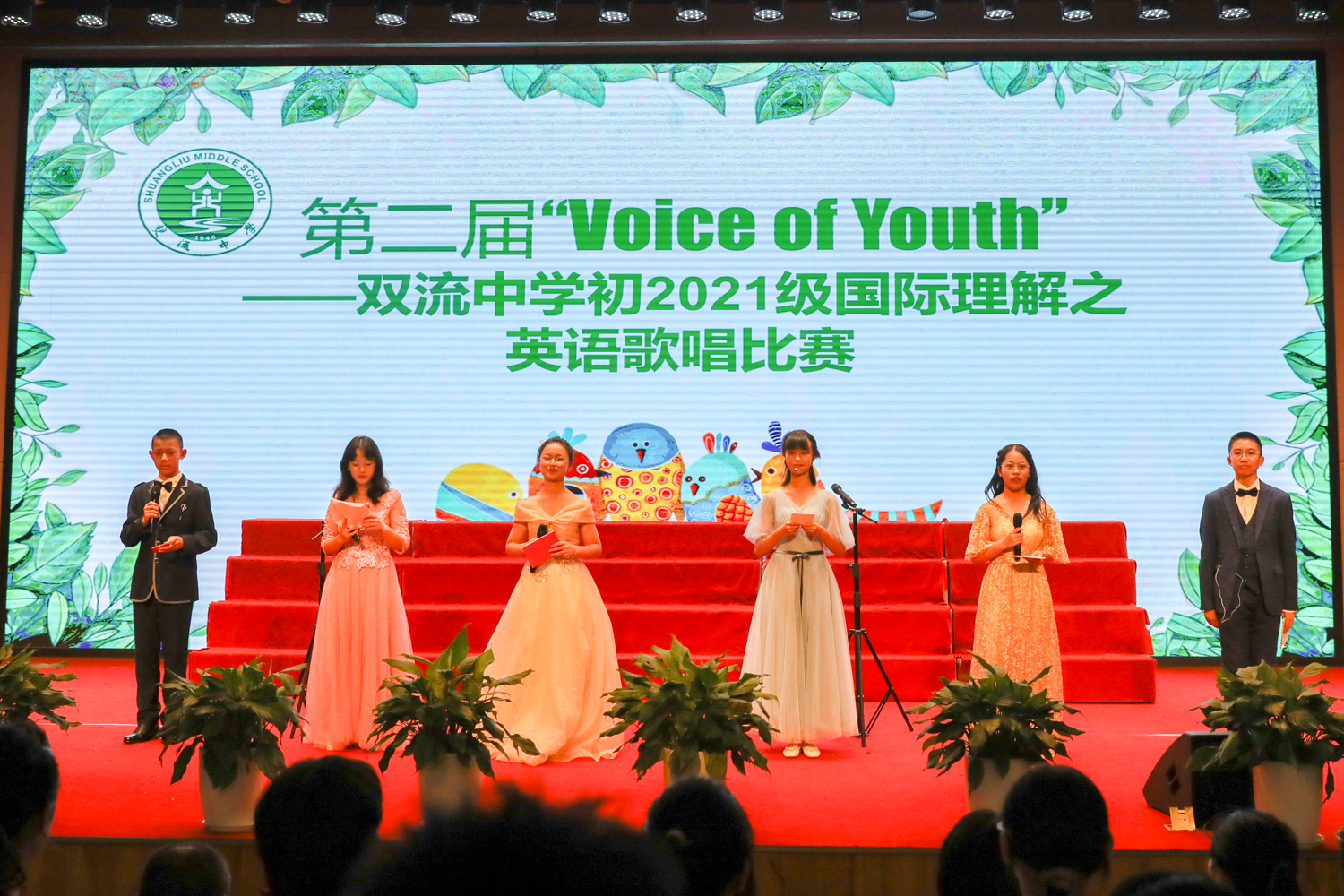 6月13日晚上,第二屆“Voice of Youth”國際理解之英語合唱比賽在玉蘭廳舉行。本次活動面向雙流中學(xué)初2021級全體師生,擔(dān)任本次活動評委的是:雙流中學(xué)總務(wù)處主任張巧菊,黨政辦副主任汪思杰,英語教研組組長余曉冬,高一年級英語備課組組長蔣玲,高中優(yōu)秀青年教師沈丹陽,初中部音樂教師覃嘉萱。同時,德育安全處副主任郝碧婭和研培處副主任王亞莉出席了此次活動。初中部全體教師也來欣賞了這場音樂盛宴。