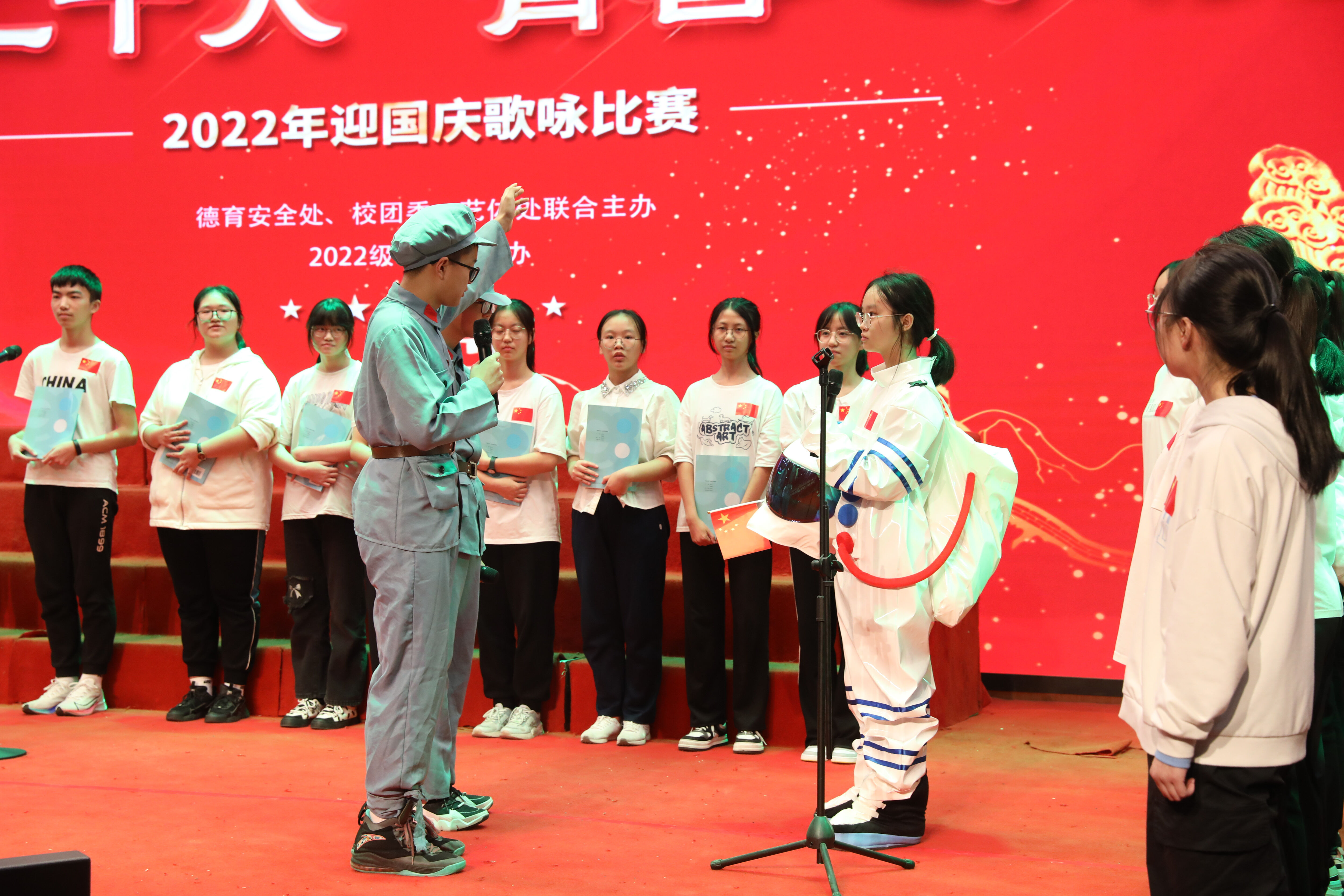 2022年9月29日,高一年級(jí)在玉蘭廳舉行合唱比賽。(圖為:合唱比賽主持人)