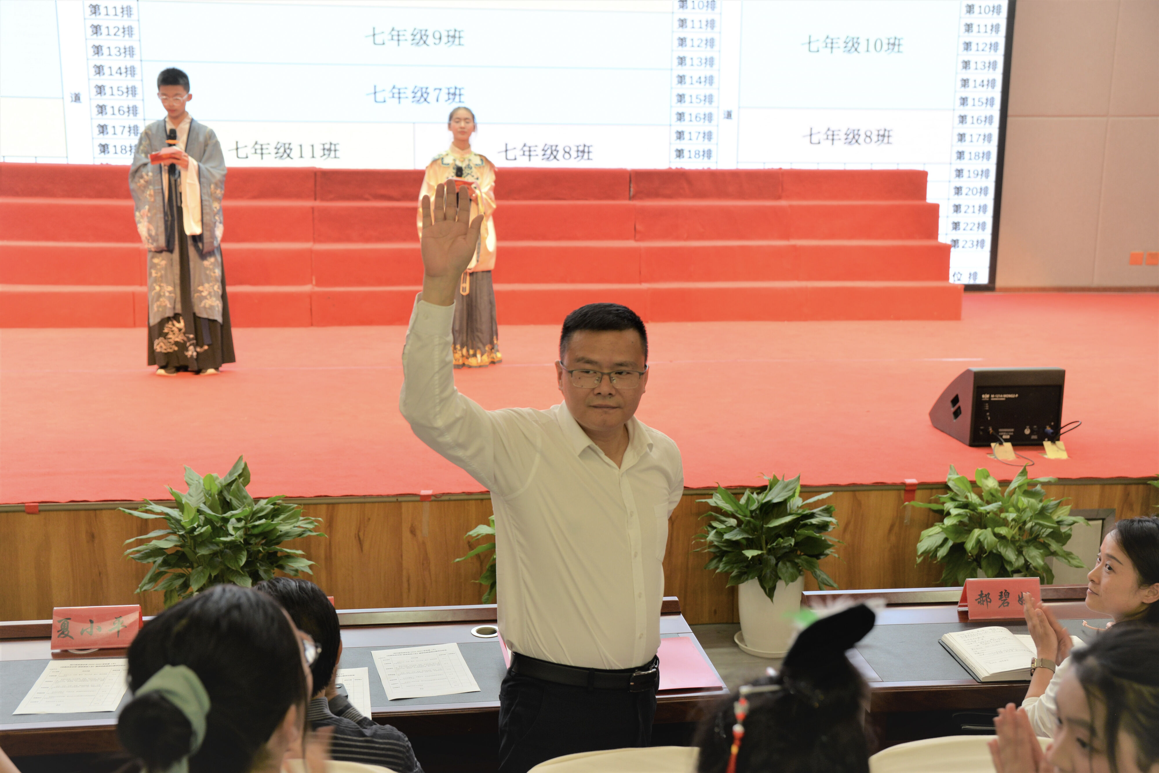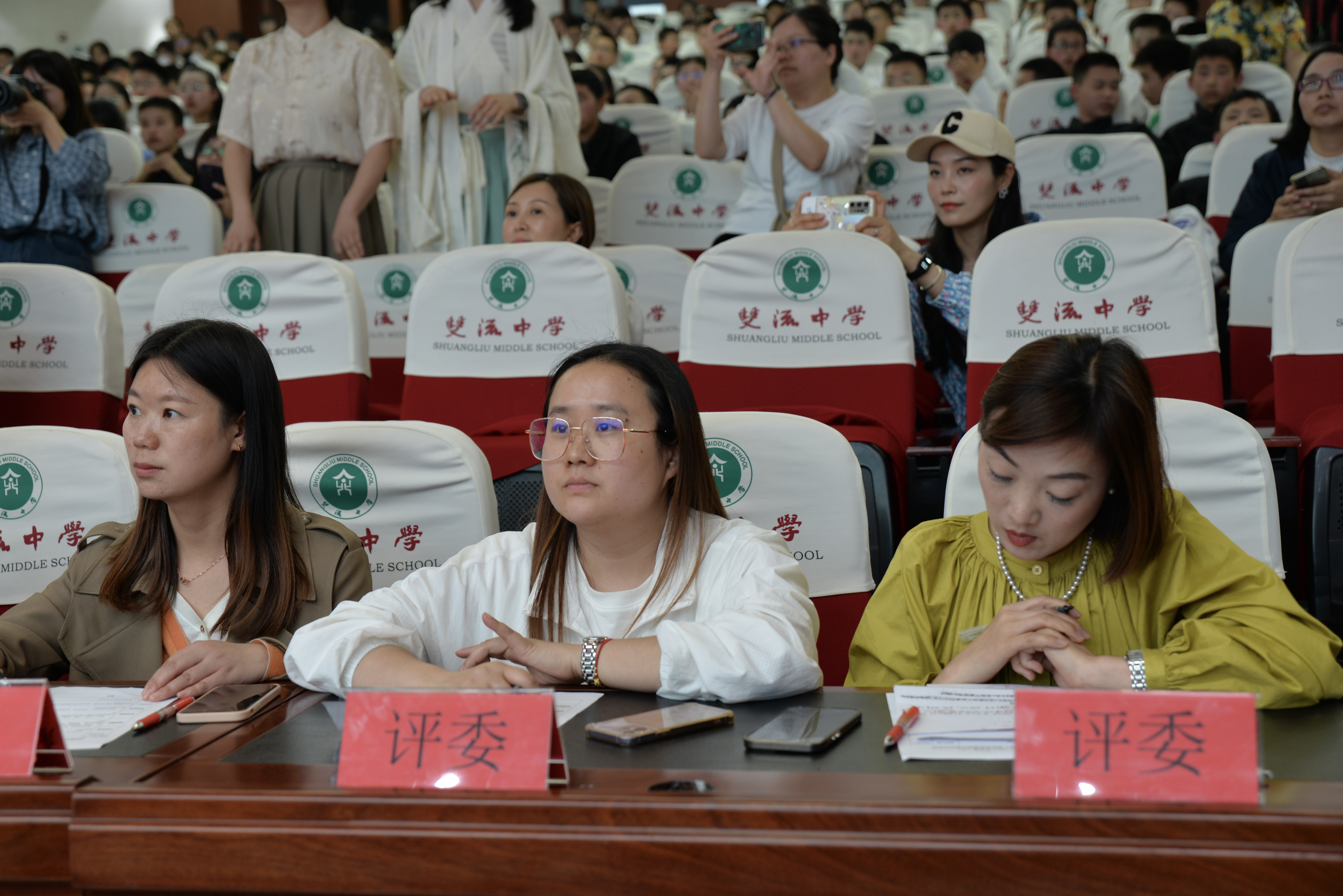 為落實立德樹人的根本任務(wù),實現(xiàn)人的全面發(fā)展,建設(shè)高質(zhì)量課程體系,2023年4月27日晚,雙流中學(xué)初中部七年級在玉蘭廳開展了以“誦讀傳承文明·經(jīng)典浸潤人生”為主題的國學(xué)經(jīng)典朗誦比賽。雙流中學(xué)黨委書記黃超、工會主席田明建、德育安全處主任郝碧婭、德育安全處副主任夏小平、團(tuán)委副書記白玲及評委老師出席本次活動。
