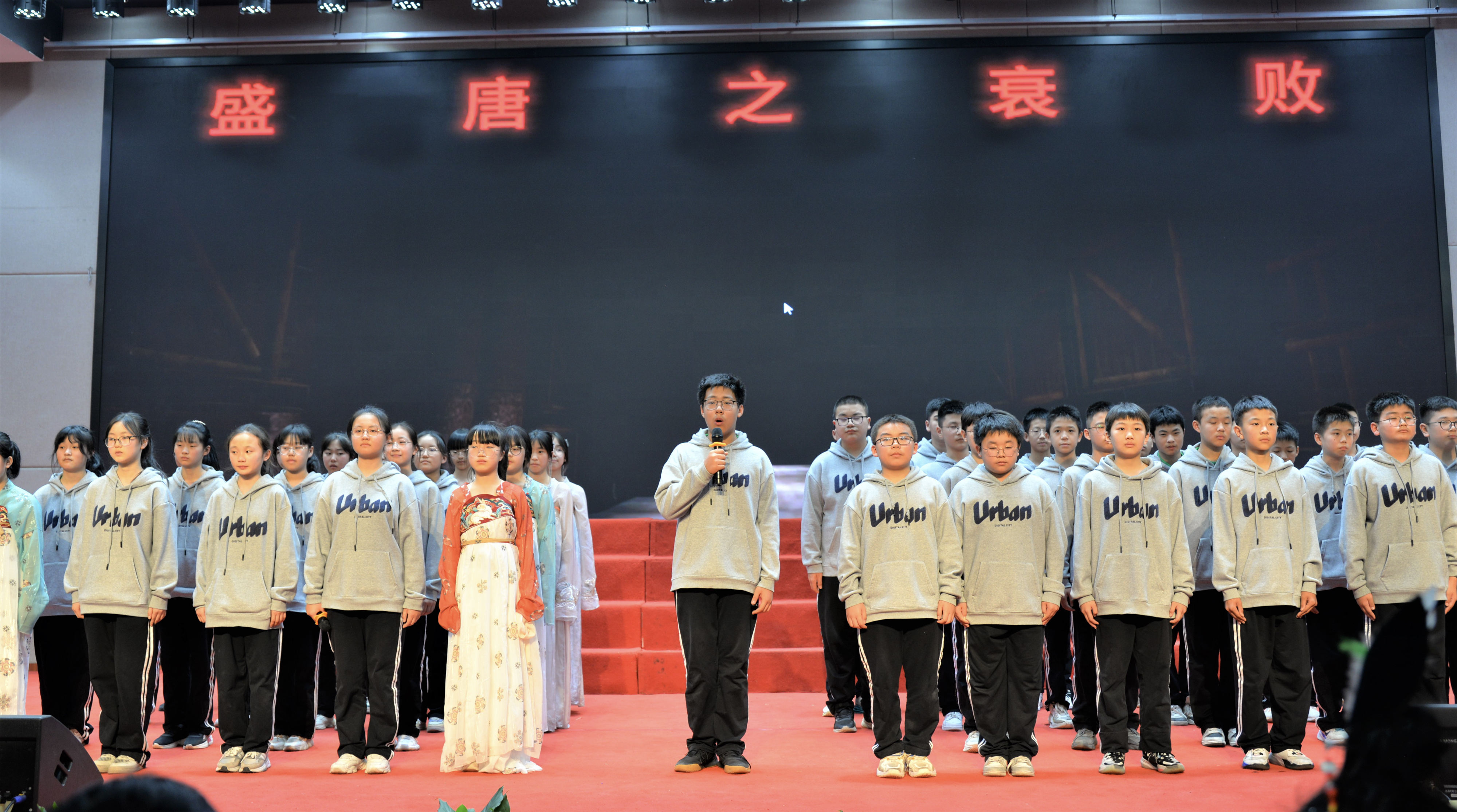 七年級8班串聯(lián)唐朝盛衰時期的詩歌,看天子雄才大略,叩長安大街小巷,喟嘆百姓的和樂安居轉(zhuǎn)為水深火熱,燈火笙歌化為兵燹戰(zhàn)火。