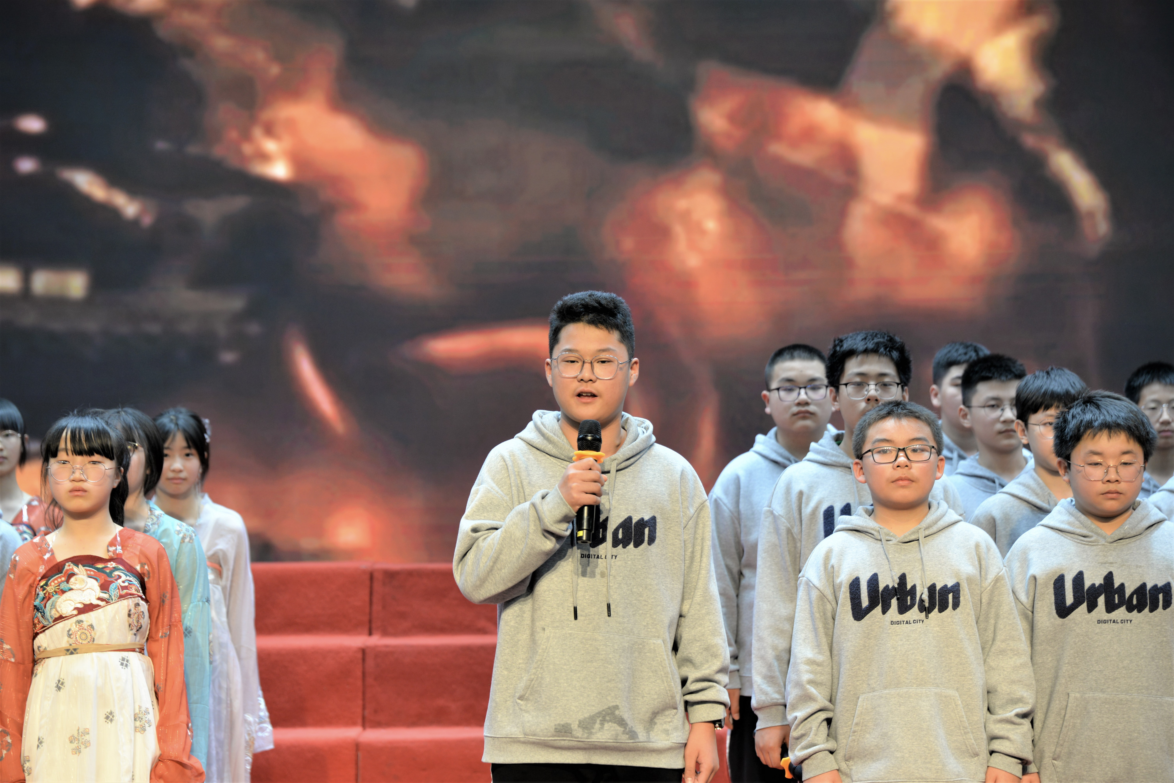 七年級7班以磅礴氣勢,吶喊出少年的凌云壯志,澎湃熱情?!渡倌曛袊f》的朗誦,將現(xiàn)場氣氛推至高潮。