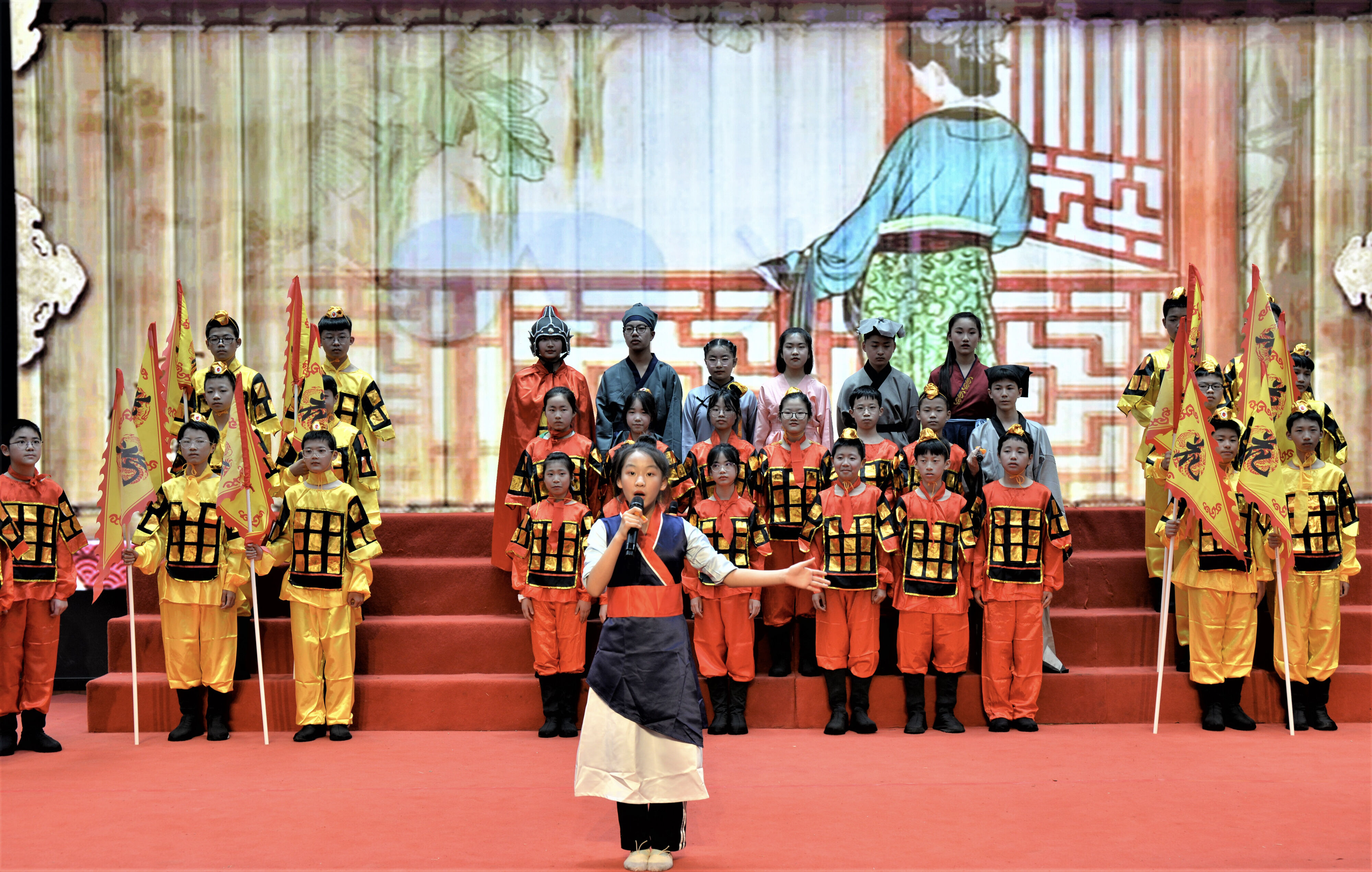 七年級5班滿腔熱血,致敬先輩,為我們帶來《木蘭詩》的朗誦與情景劇。豆蔻少女代父從軍,詮釋了中華民族的傳統(tǒng)美德。