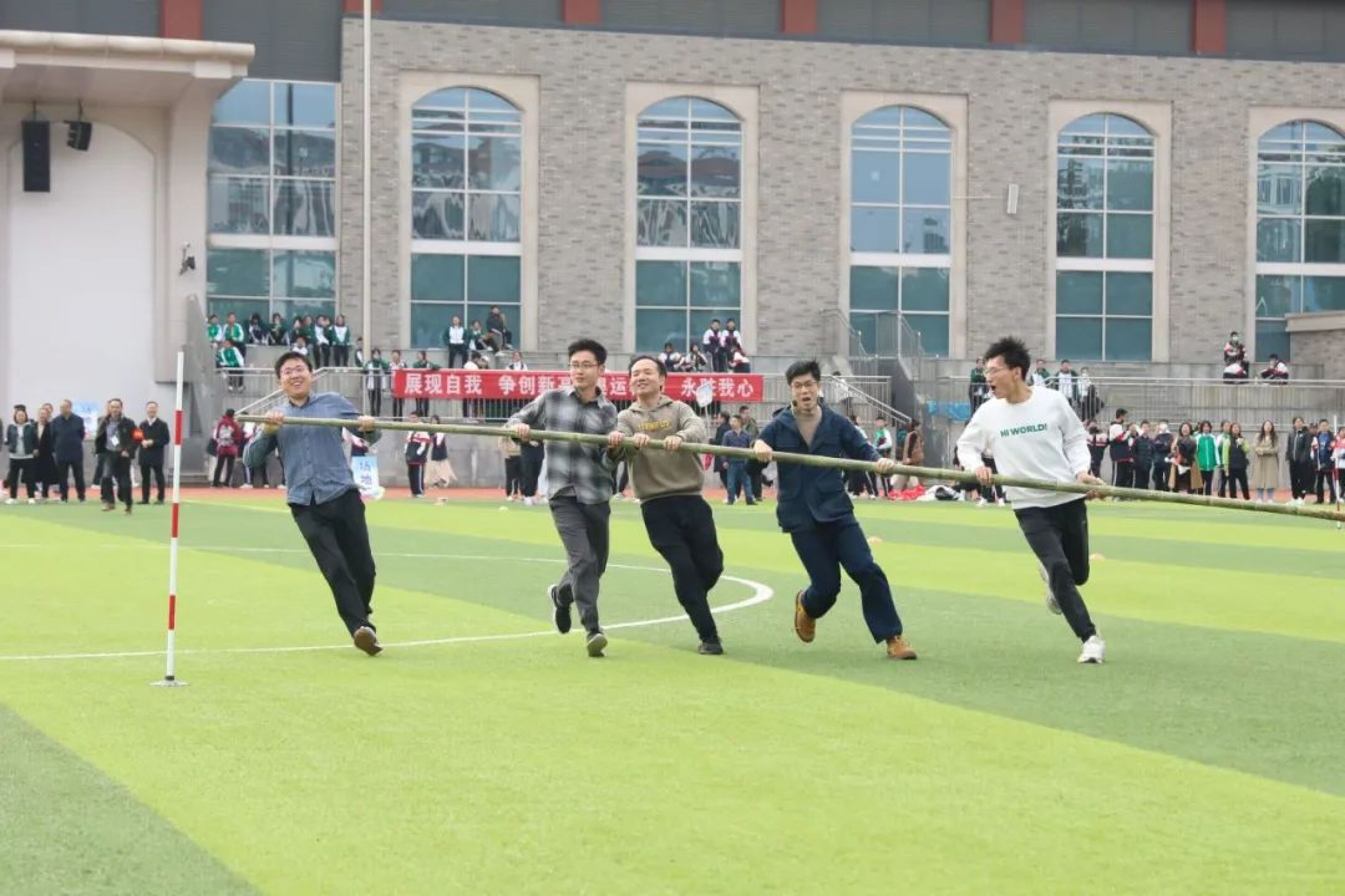 我們正年輕,讓青春飛揚在白色的跑道上,讓雄渾的吶喊回旋在廣闊的體育場上
