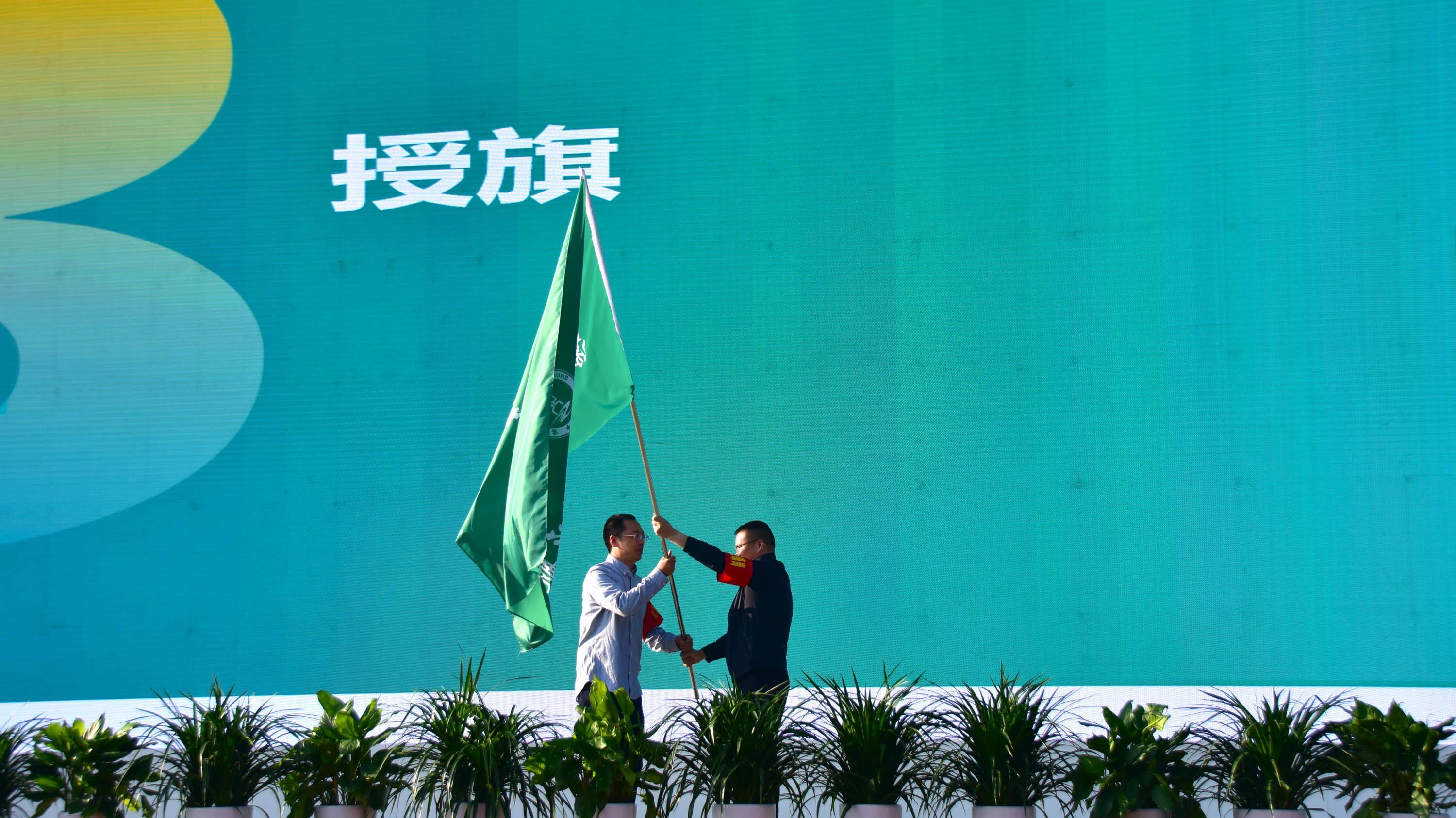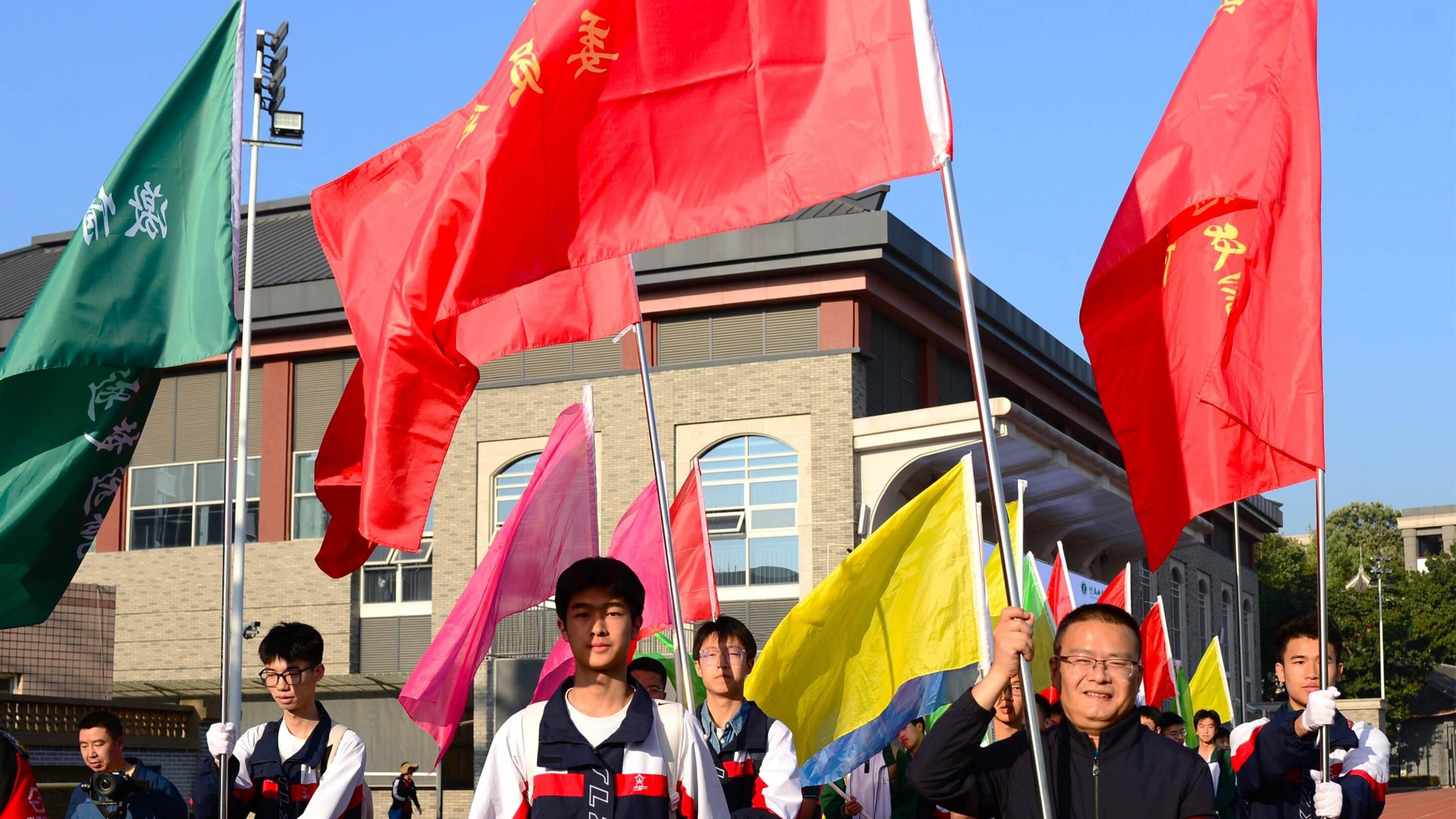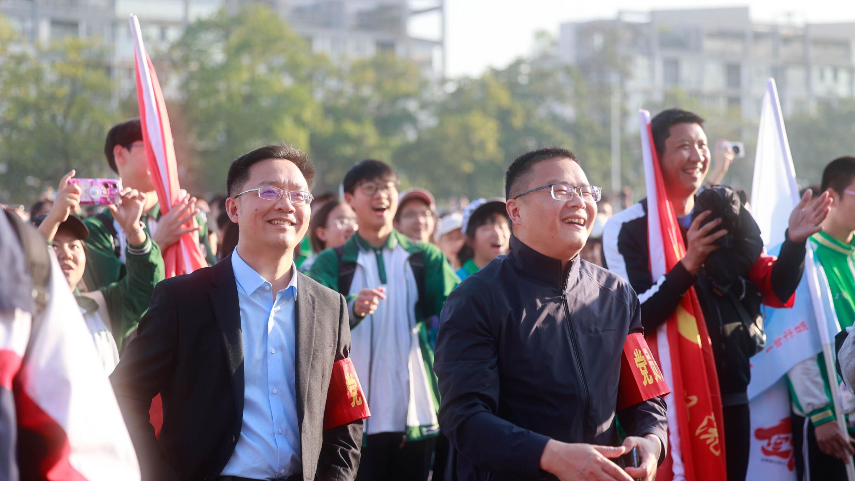圖5 黃超書記帶領(lǐng)彩旗隊出發(fā)