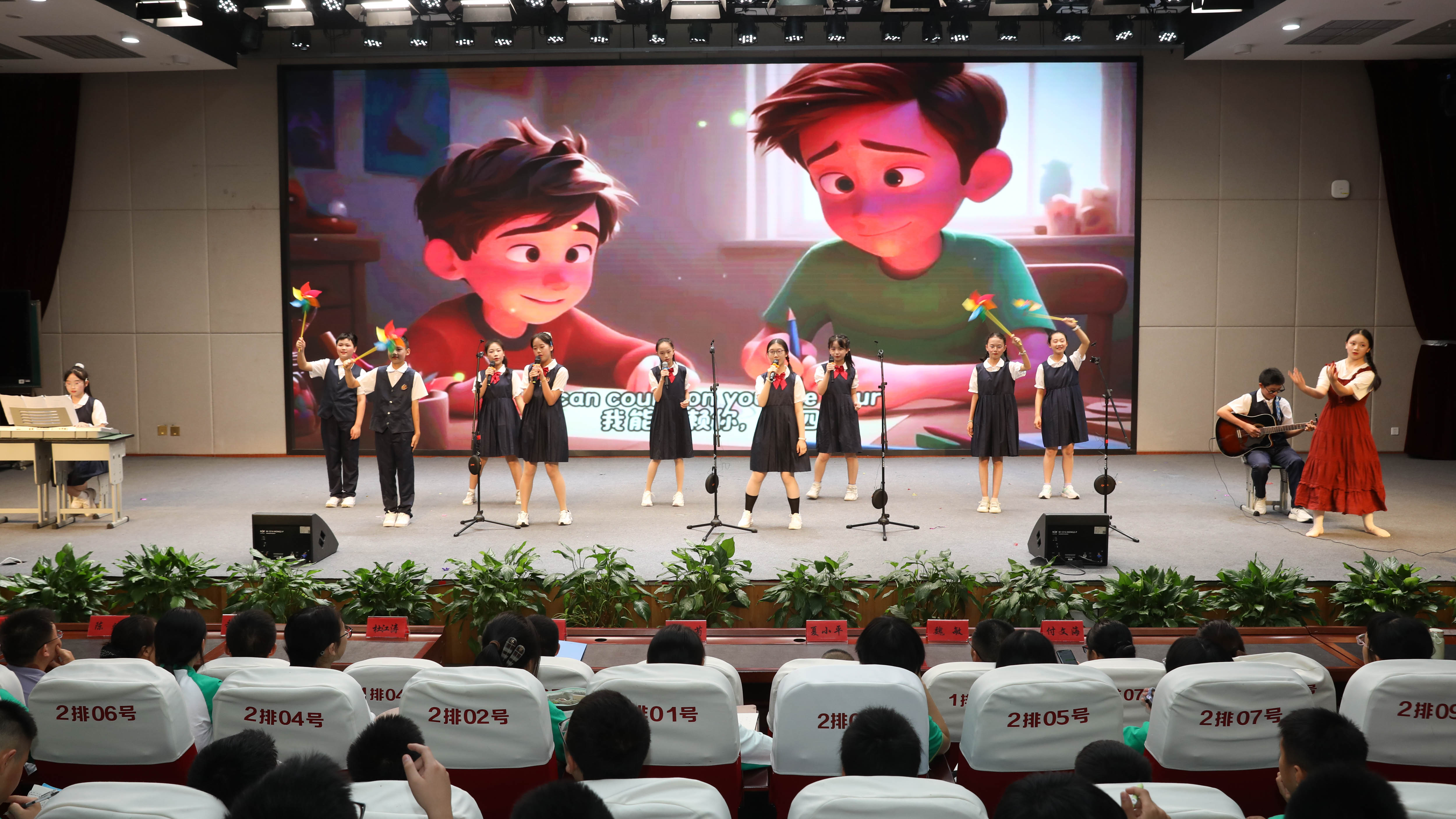 用歌聲點燃青春,用英語傳遞熱愛!初2024級“Voice of Youth,Melody of English”歌唱展演于2025年5月23日晚在玉蘭廳拉開帷幕!雙流中學黨委書記黃超,黨委副書記、副校長(主持行政工作)杜江濤,副校長張巧菊,德育安全處主任郝碧婭,德育安全處副主任何健、夏小平,黨政辦副主任付文海,藝體處副主任魏敏以及八年級評委老師出席本次活動。