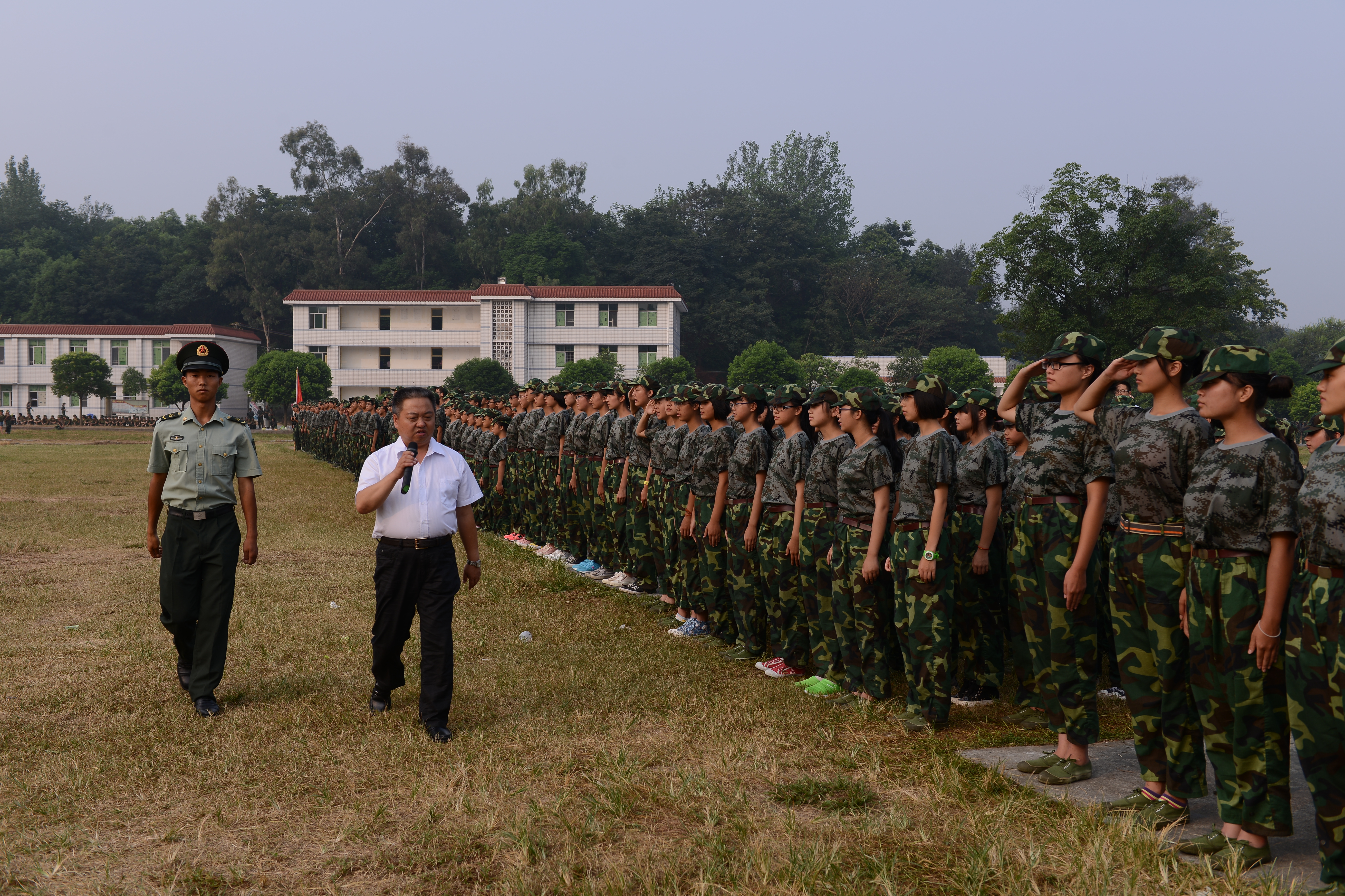 2013年8月22日上午8點(diǎn)30分,陽(yáng)光燦爛、彩旗招展,雙流中學(xué)高2016屆新生軍訓(xùn)匯報(bào)表演暨總結(jié)表彰大會(huì)在德陽(yáng)軍訓(xùn)基地隆重舉行。雙流中學(xué)黨總支書(shū)記、校長(zhǎng)熊偉出席大會(huì),黨總支副書(shū)記、工會(huì)主席向發(fā)友作軍訓(xùn)總結(jié)講話。有近900余名身著迷彩服、英姿颯爽的高2016屆新生接受了學(xué)校領(lǐng)導(dǎo)和老師的檢閱。