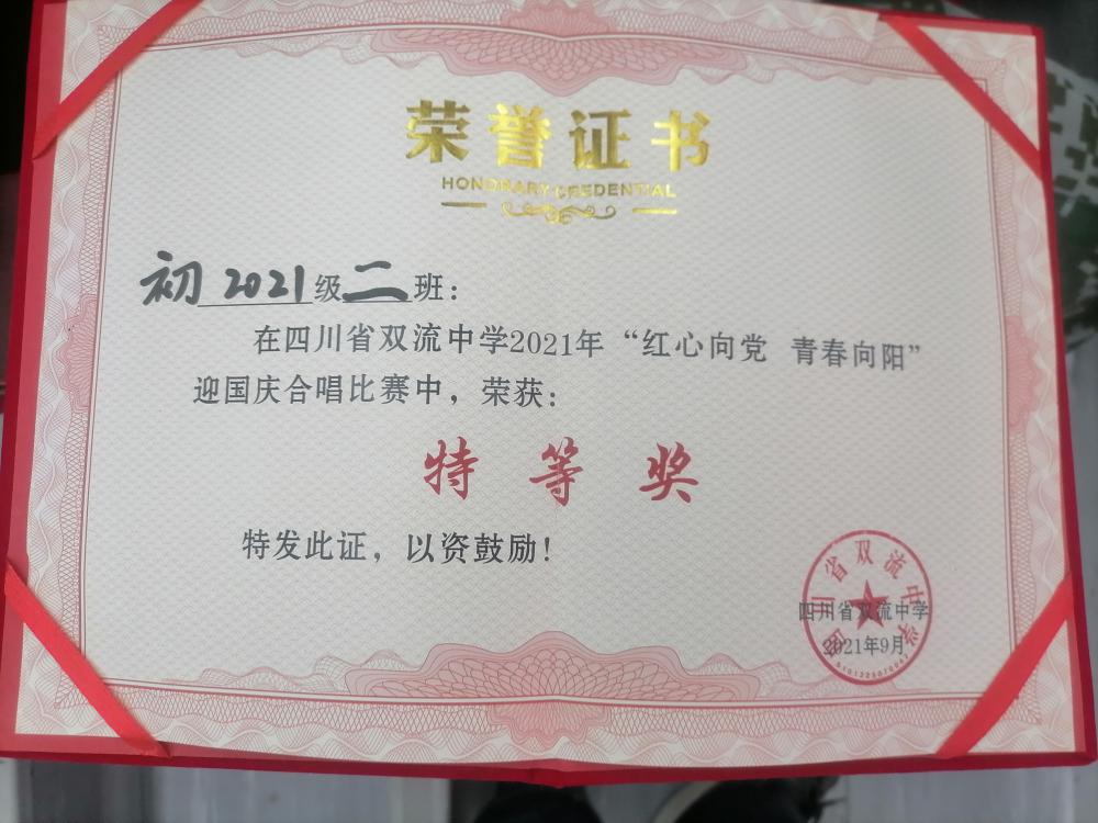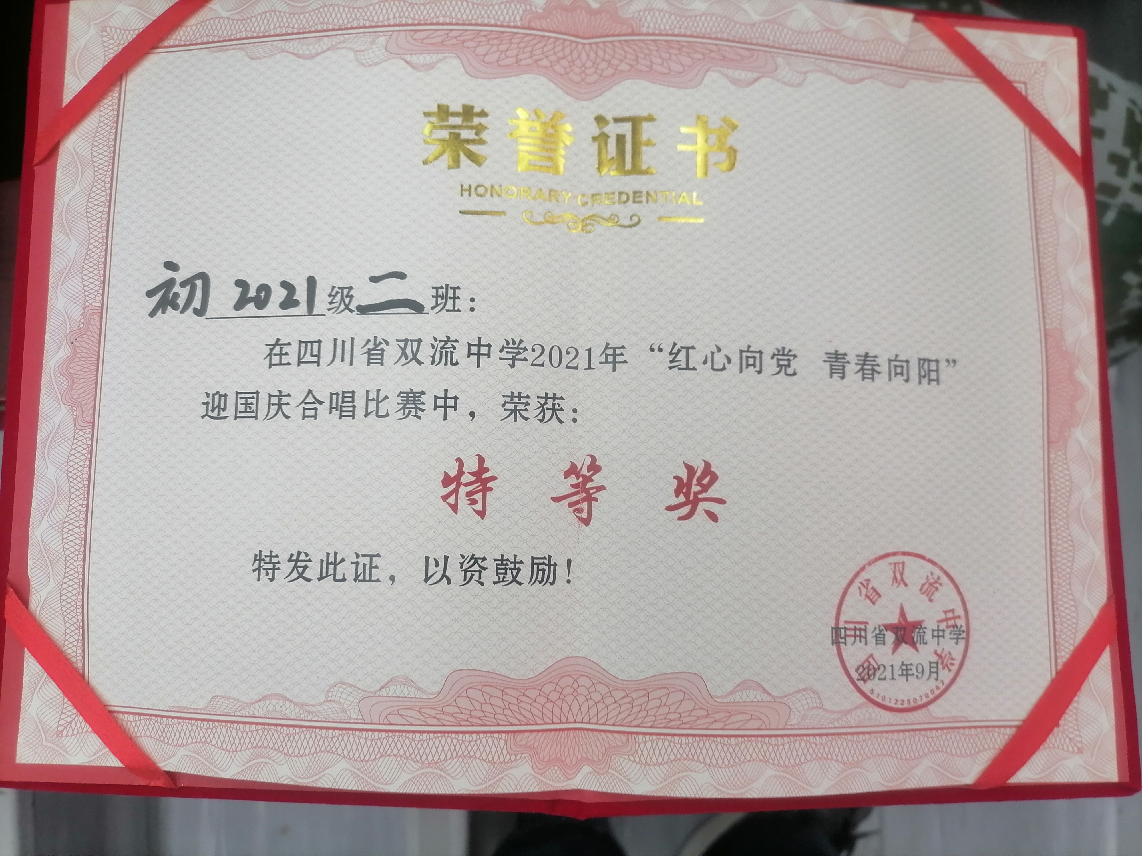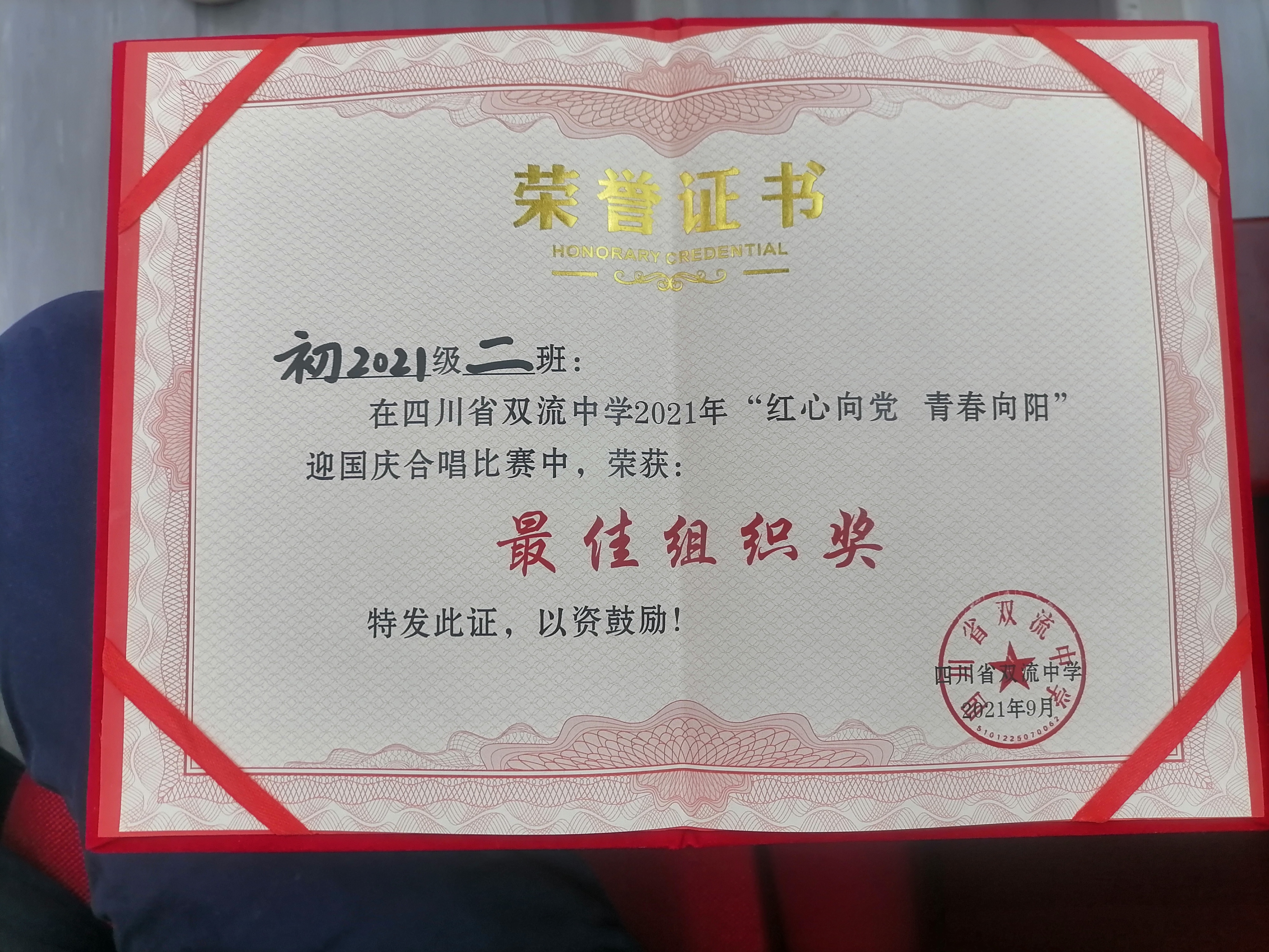 在激烈的角逐后,初2021級2班以優(yōu)異的成績脫穎而出,榮獲此次慶國慶合唱比賽的特等獎(jiǎng)和最佳組織獎(jiǎng)。孩子們激動(dòng)地發(fā)出陣陣歡呼聲。“臺上一分鐘,臺下十年功”,幾天的辛苦訓(xùn)練,所有揮灑過的汗水,在這一刻都得到收獲。