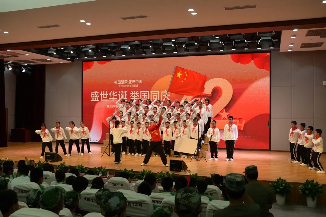 新生入學(xué),都需要經(jīng)歷一個(gè)階段——綜合素質(zhì)拓展,這是為了培養(yǎng)學(xué)生強(qiáng)烈的集體意識(shí)、愛國(guó)意識(shí)和不懼艱難困苦努力學(xué)習(xí)的精神。而今年的軍訓(xùn)和國(guó)慶的距離是那么的接近,為了表達(dá)全校師生對(duì)祖國(guó)母親生日的祝福,學(xué)校準(zhǔn)備組織全校性的合唱比賽。我們這個(gè)新組建的家庭,也順利地報(bào)名參加了。