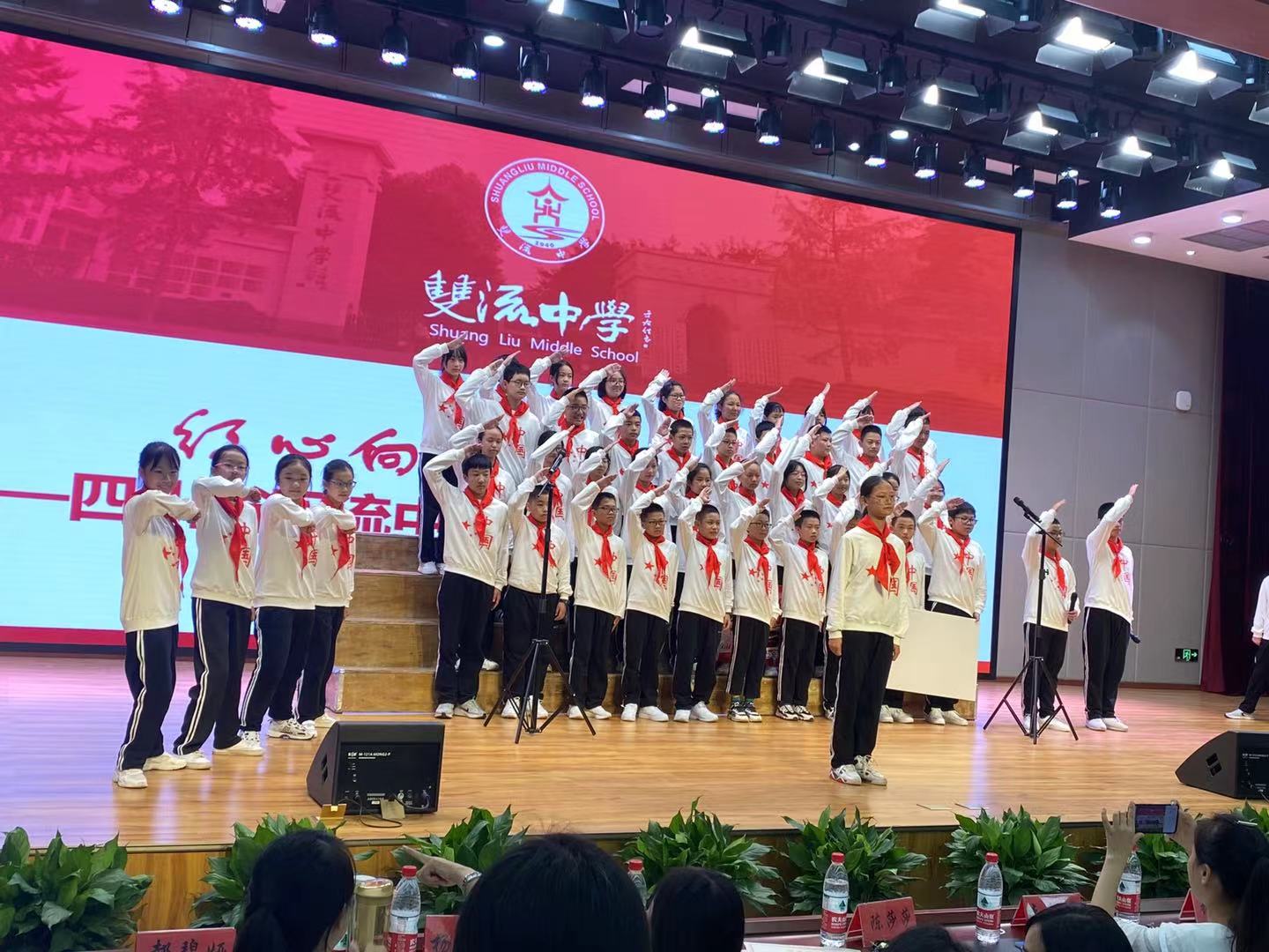 正是懷著這樣的自信,我們登上了舞臺(tái)。燈光的照耀下,每一個(gè)孩子都是閃耀的明星。我們一起努力,隨著節(jié)奏唱出了我們準(zhǔn)備已久的歌曲。孩子們表現(xiàn)得是那么的自青春自信!昂揚(yáng)的歌聲表達(dá)出孩子們對(duì)祖國(guó)母親的敬愛和祝福。