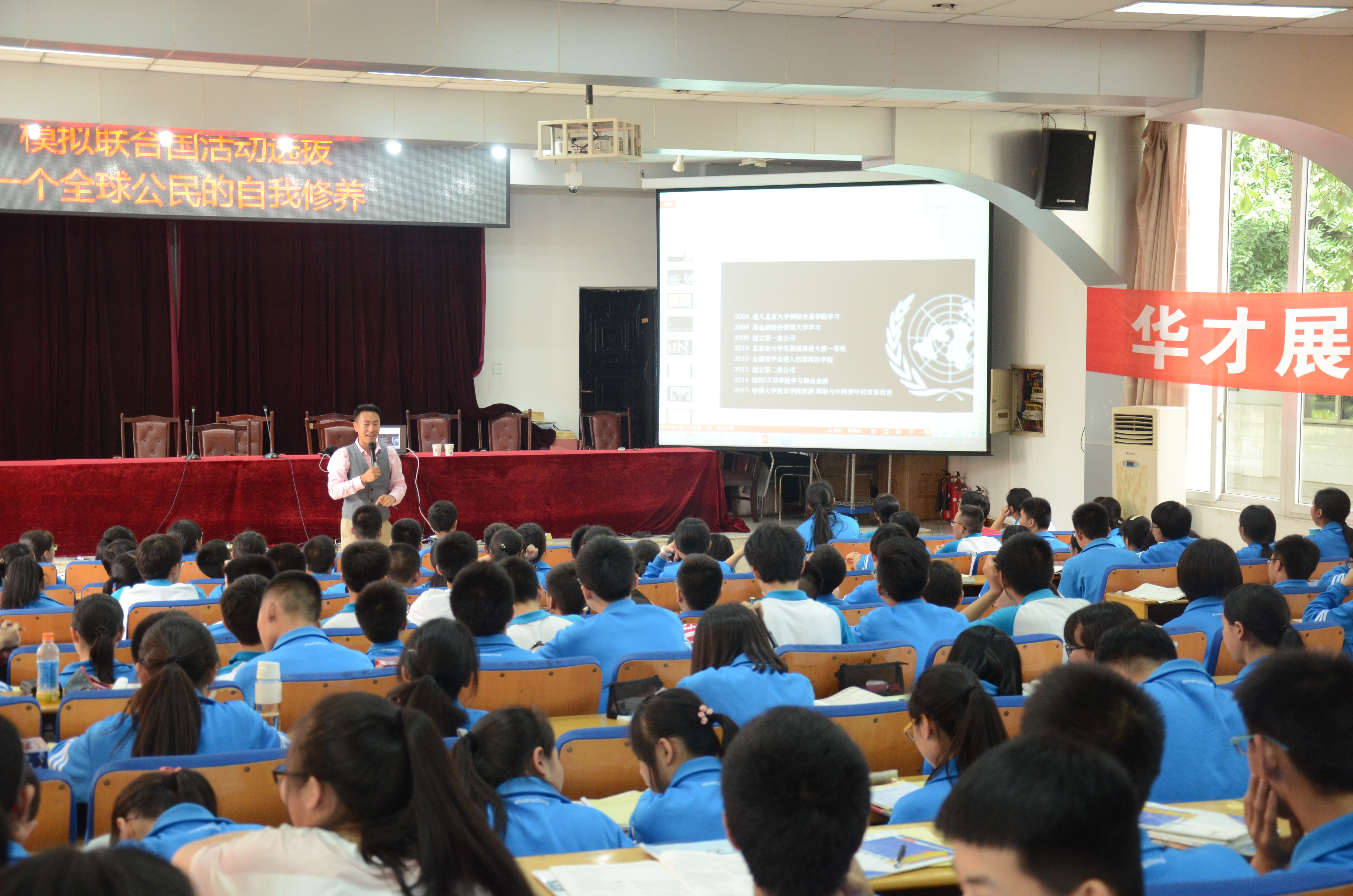 此次講座特邀請了模聯(lián)教育專家奇特老師主講,齊老師先是給同學(xué)們分享了自己北大的學(xué)習(xí)經(jīng)歷,再從“什么是一個全球公民的自身修養(yǎng)”,“如何建立良好的自我修養(yǎng)”等方面進行闡述,并帶動同學(xué)們對國際熱點話題進行了探討、互動。齊老師語言風(fēng)趣幽默,不斷調(diào)動了現(xiàn)場的氣氛,得到同學(xué)們的好評。