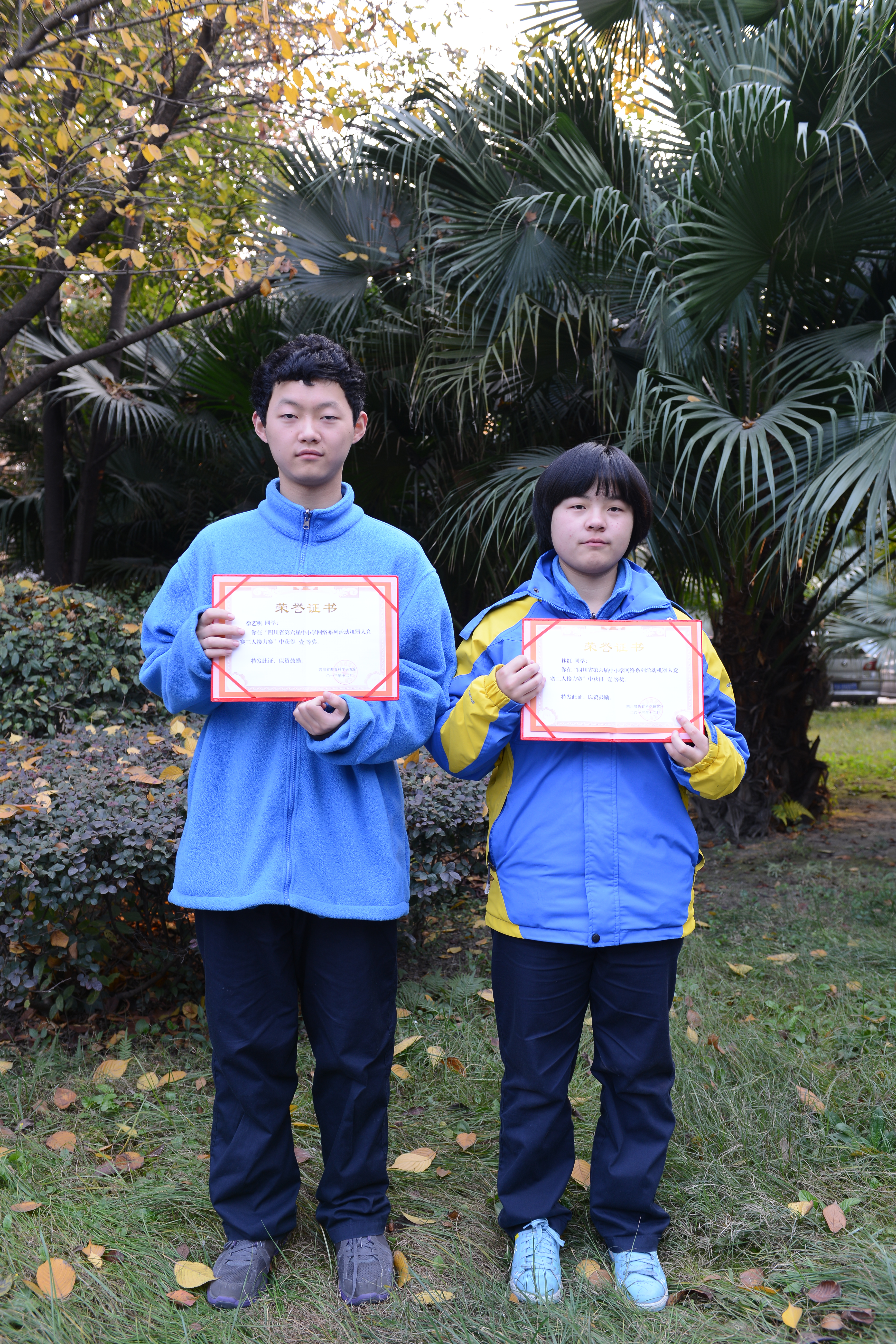 獲得機器人二人接力賽省一等獎的徐藝帆、林紅組合獲得機器人二人接力賽省一等獎的徐藝帆、林紅組合