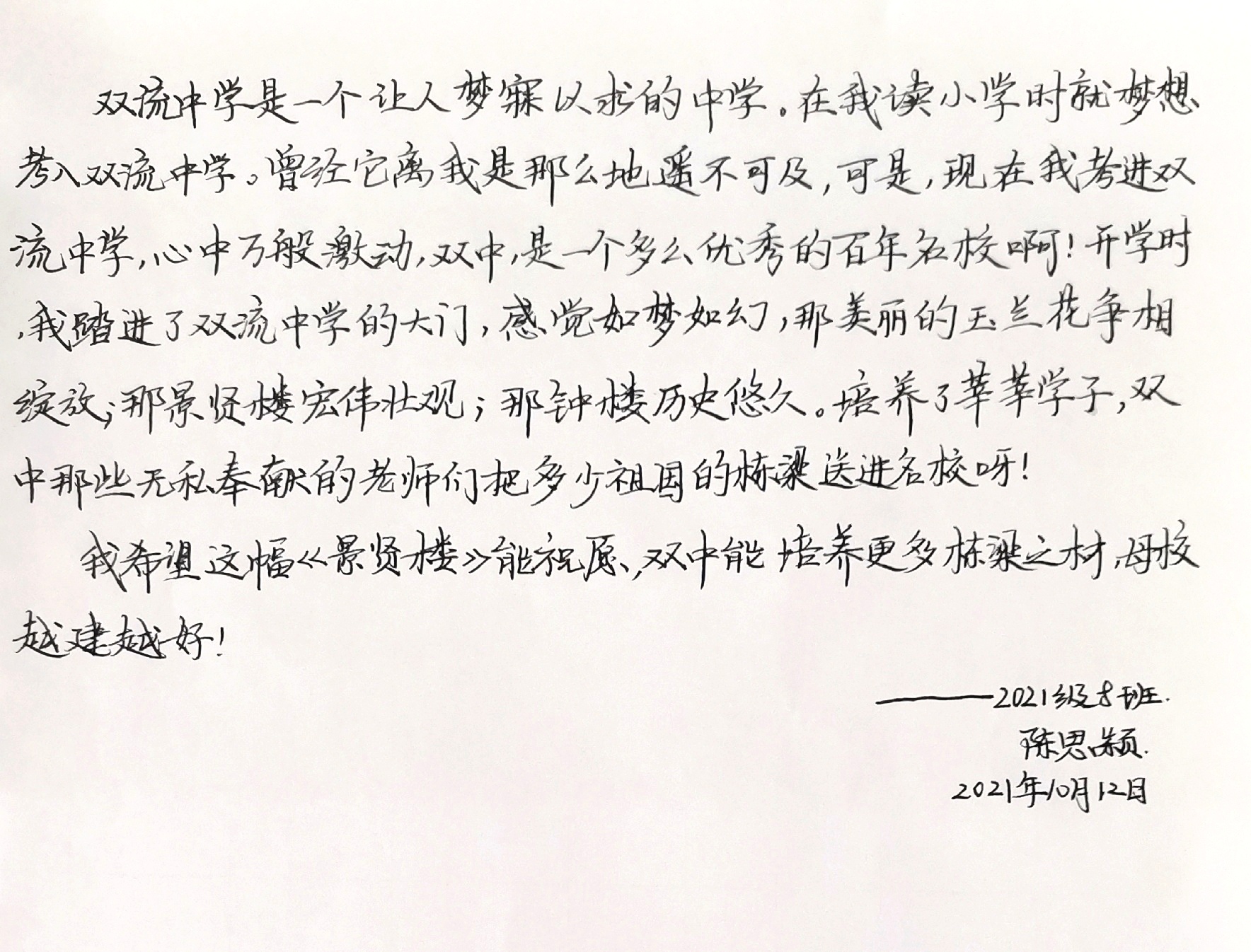 赫赫雙流中學(xué),庠序流長(zhǎng)。