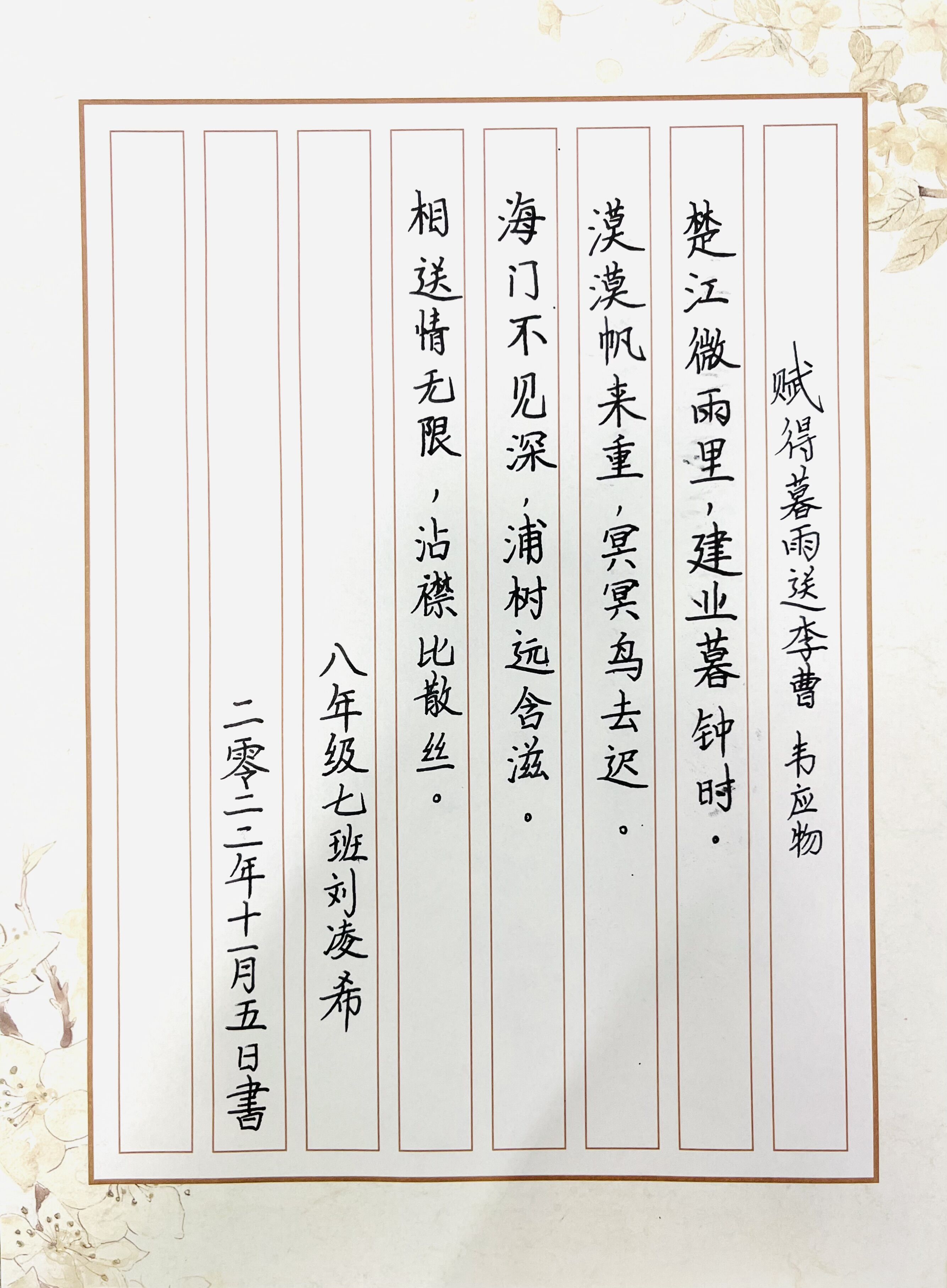 硬筆書法一等獎作品(八年級7班 劉凌希)