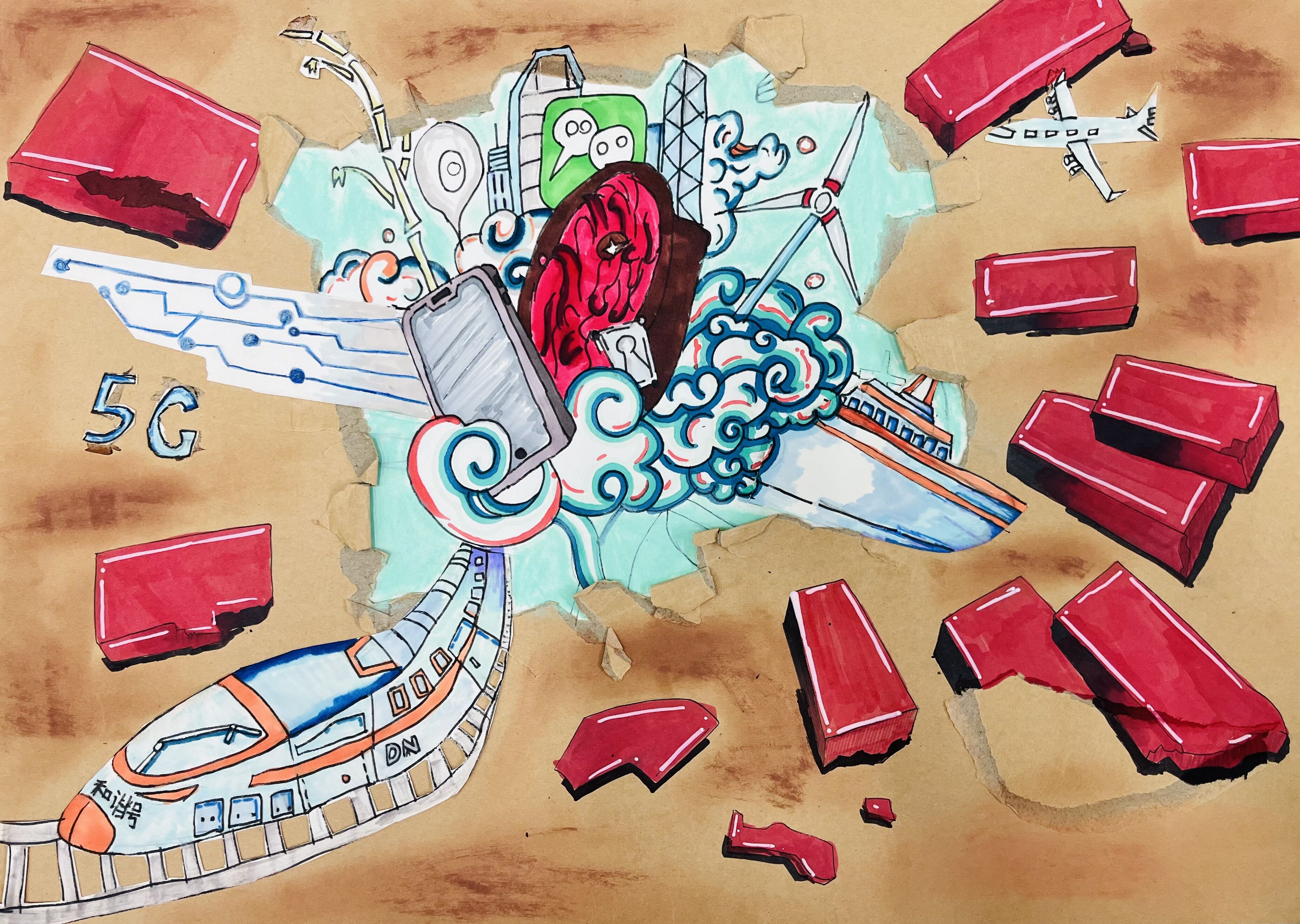 繪畫一等獎:八年級6班 朱楗豪 作品
