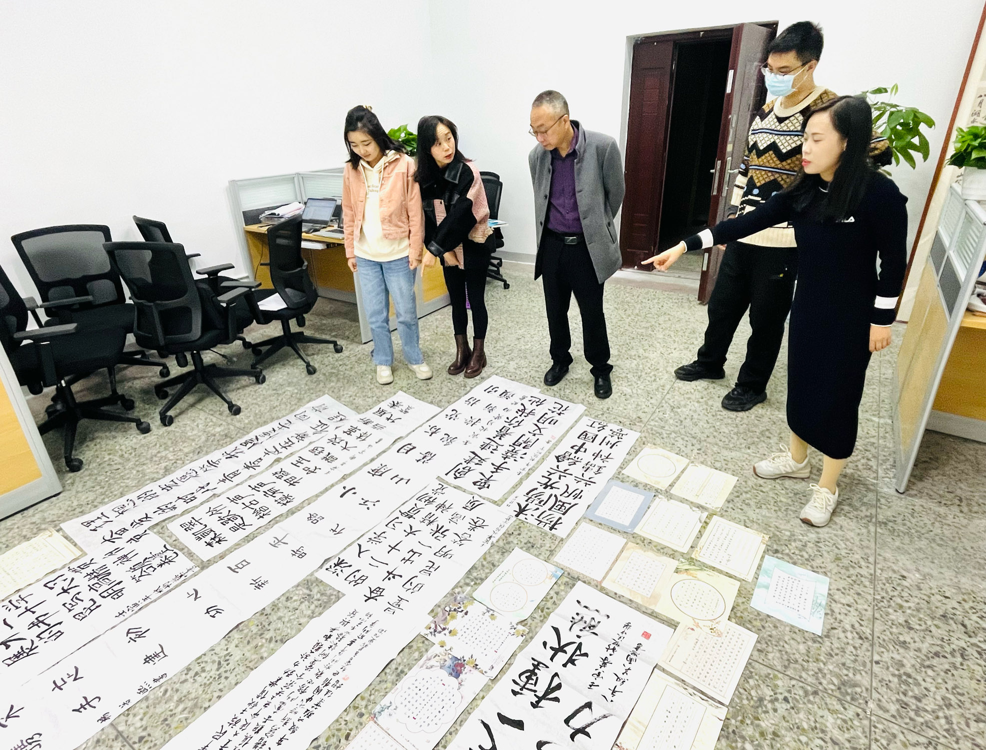 德育安全處主任郝碧婭、藝體處副主任譚書華和音美教師評選現(xiàn)場