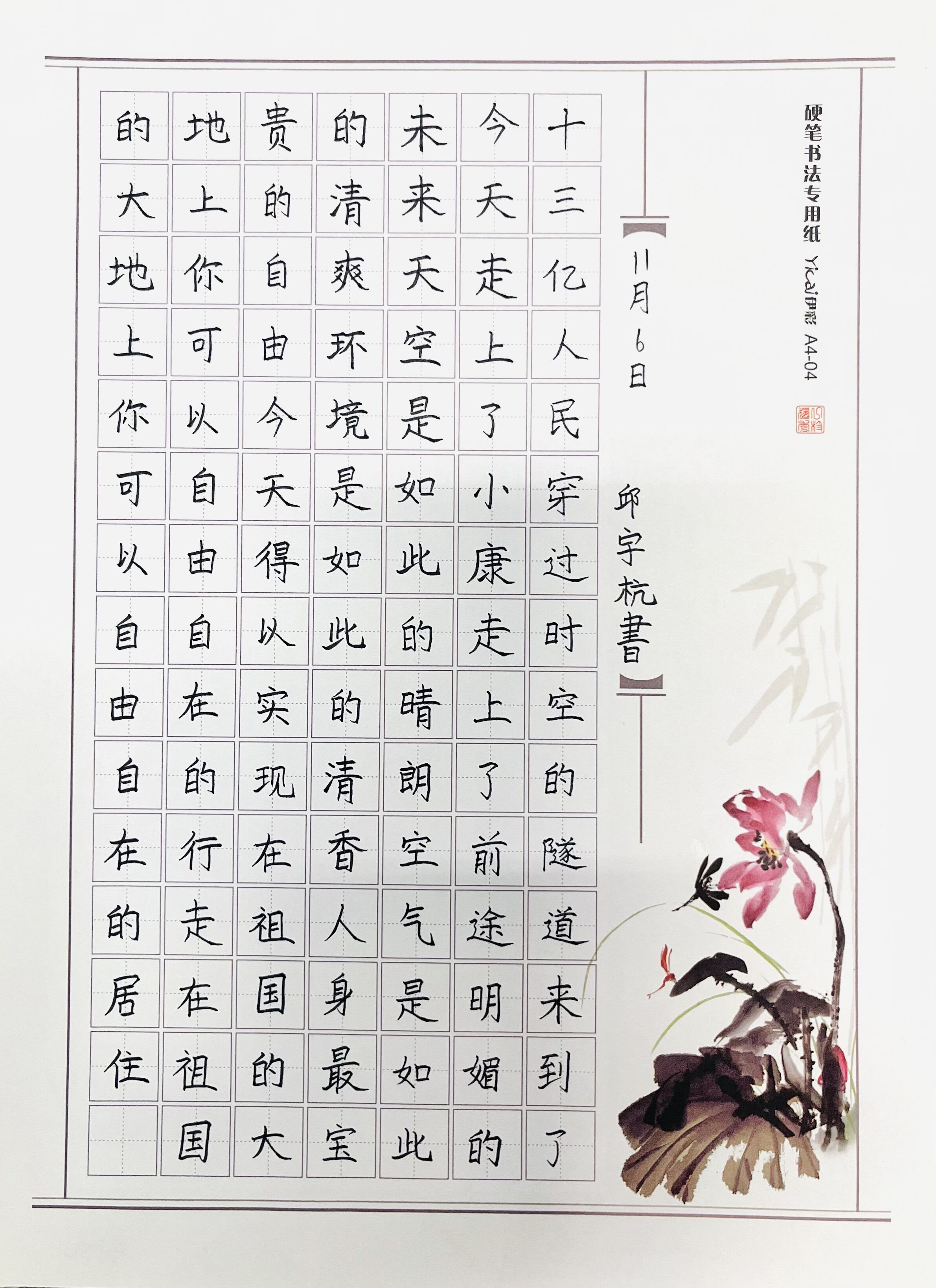硬筆書法一等獎作品(七年級10班 邱宇杭)