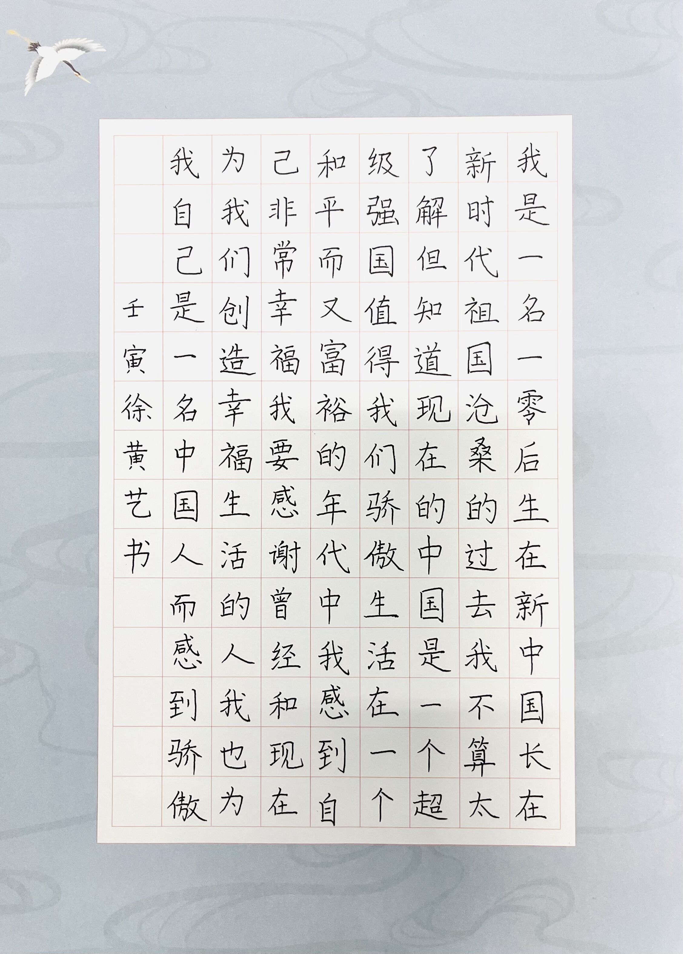 硬筆書法一等獎作品(七年級10班 徐黃藝)