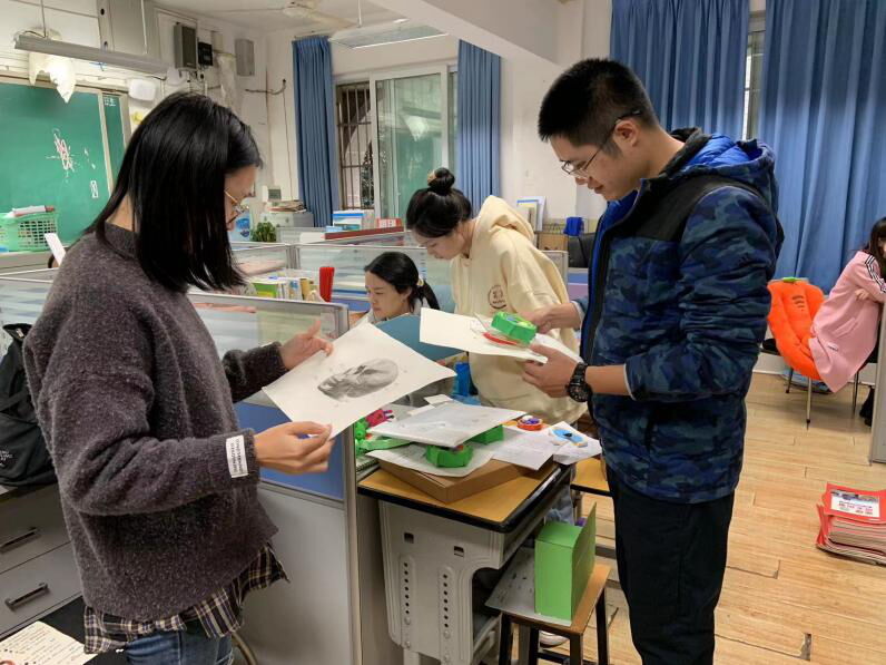 圖片1 老師對(duì)學(xué)生制作的模型進(jìn)行評(píng)選