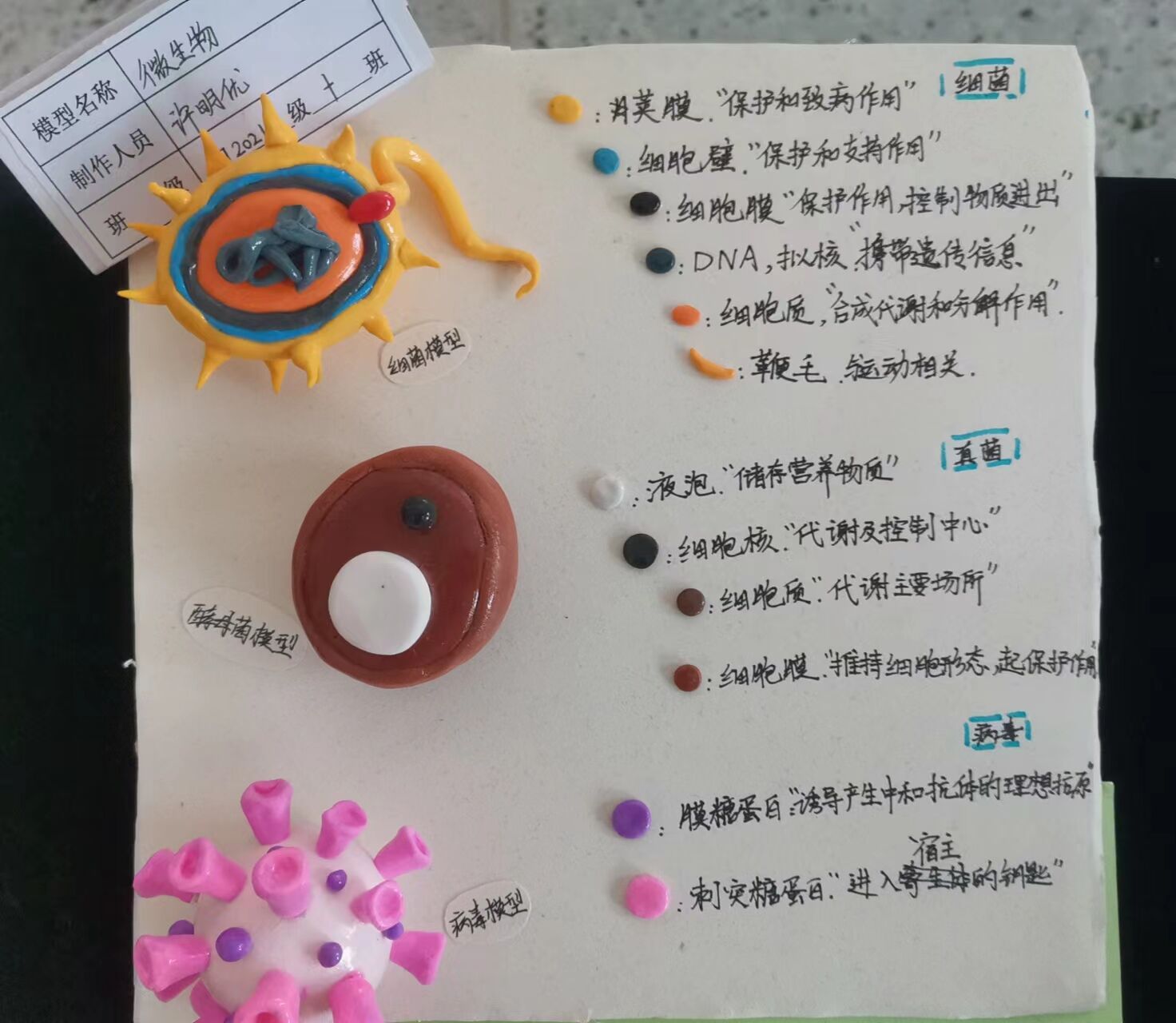 同學(xué)們的創(chuàng)造力很強(qiáng),選用了橡皮泥、超輕粘土、丙烯顏料、紙板等材料制作模型,有做動(dòng)植物細(xì)胞結(jié)構(gòu)的、有做關(guān)節(jié)結(jié)構(gòu)的、也有做病毒結(jié)構(gòu)的……讓我們一起來欣賞這些精美的作品吧!
