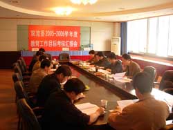 9月27日上午,雙流中學(xué)2005--2006學(xué)年度工作責(zé)任目標(biāo)考核匯報會議在雙流中學(xué)會議室舉行。以縣教育局中教科科長石東華為副組長的考核組成員一行四人來到雙流中學(xué),在先后聽取了任鳴鐘校長和胡德明校長對上期工作的總結(jié)匯報發(fā)言后,教育局考核小組參照雙流縣政府教育督導(dǎo)室制定的考核評分標(biāo)準(zhǔn)對雙流中學(xué)準(zhǔn)備的各種匯報材料進行了仔細(xì)的檢查和核對.經(jīng)過一個多小時認(rèn)真仔細(xì)的核查,考核小組對雙流中學(xué)2005---2006年的工作表示了充分肯定,認(rèn)為雙流中學(xué)在過去的一學(xué)年里高質(zhì)量的完成了工作責(zé)任目標(biāo)考核任務(wù),并取得了輝煌的成績.另外,縣教育局將會在近期內(nèi)公布雙流中學(xué)工作責(zé)任目標(biāo)考核的最終得分。